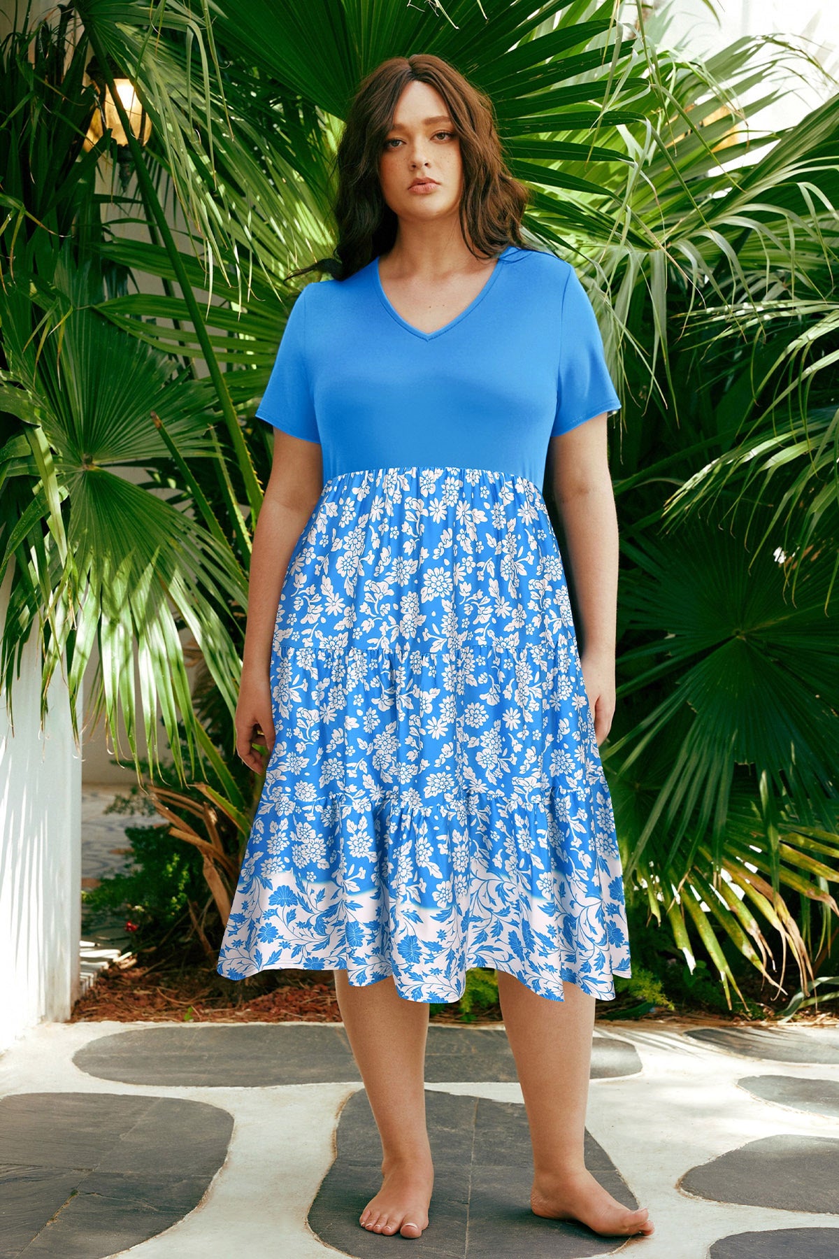 The flowy and breezy design of this plus - size maxi dress makes it perfect for warm summer days. The navy blue base color paired with the delicate white floral print gives it a fresh and feminine look. Whether you're strolling along the beach or just enjoying a lazy afternoon at home, this dress combines comfort and style, making you feel confident and beautiful in your own skin.