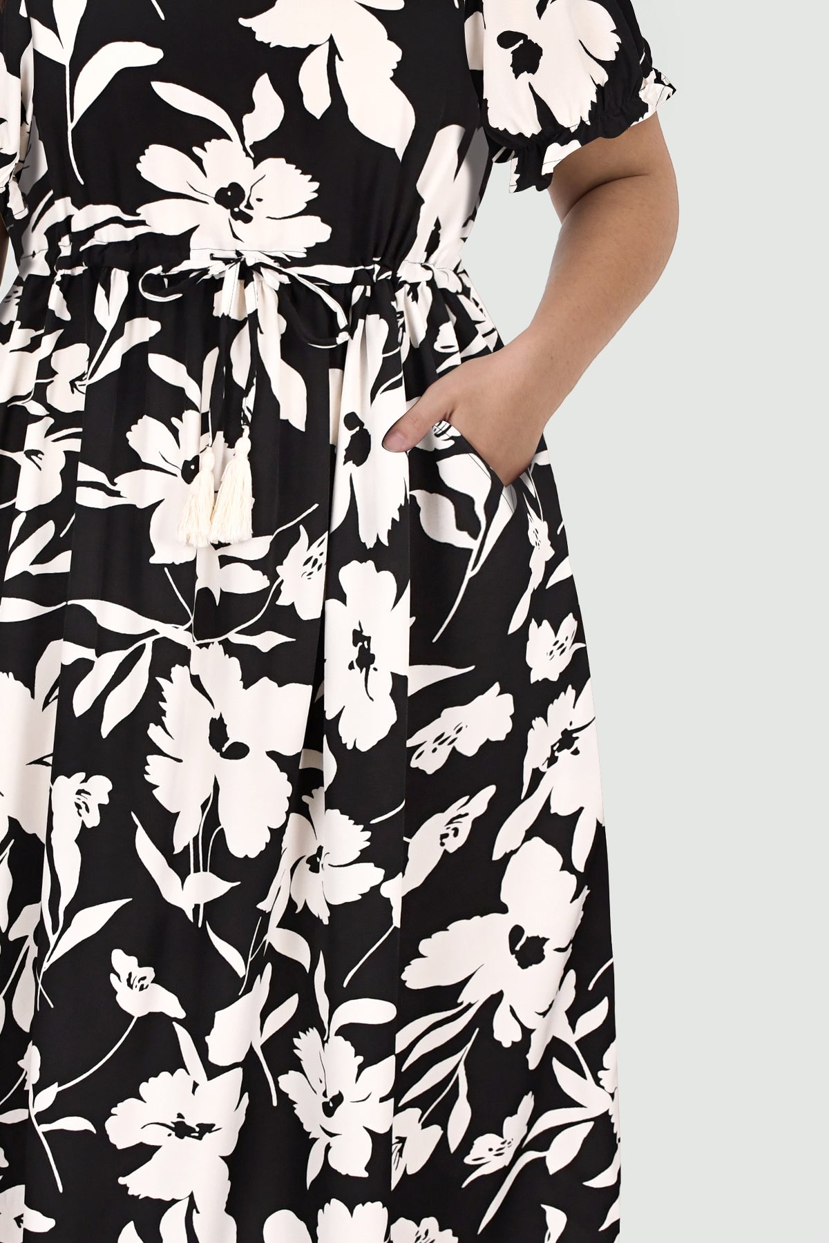 The summer elegance with our boho floral maxi dress, crafted in a timeless black and white floral print, the V-neck, short-sleeve dress features an elastic waist for a flattering silhouette. The loose, flowy fit ensures comfort all day long. Ideal for beach vacations, garden parties, or casual outings, it’s made with lightweight, breathable fabric to keep you cool.