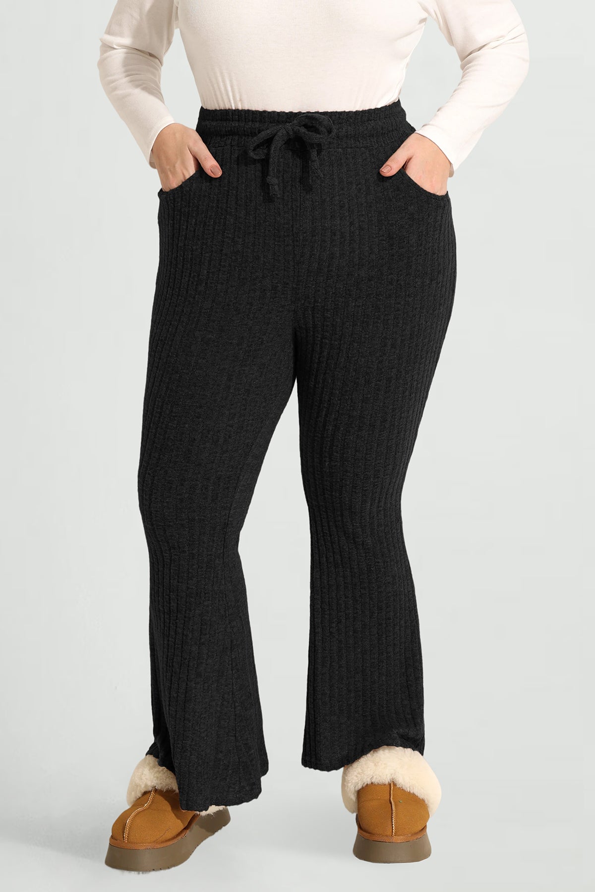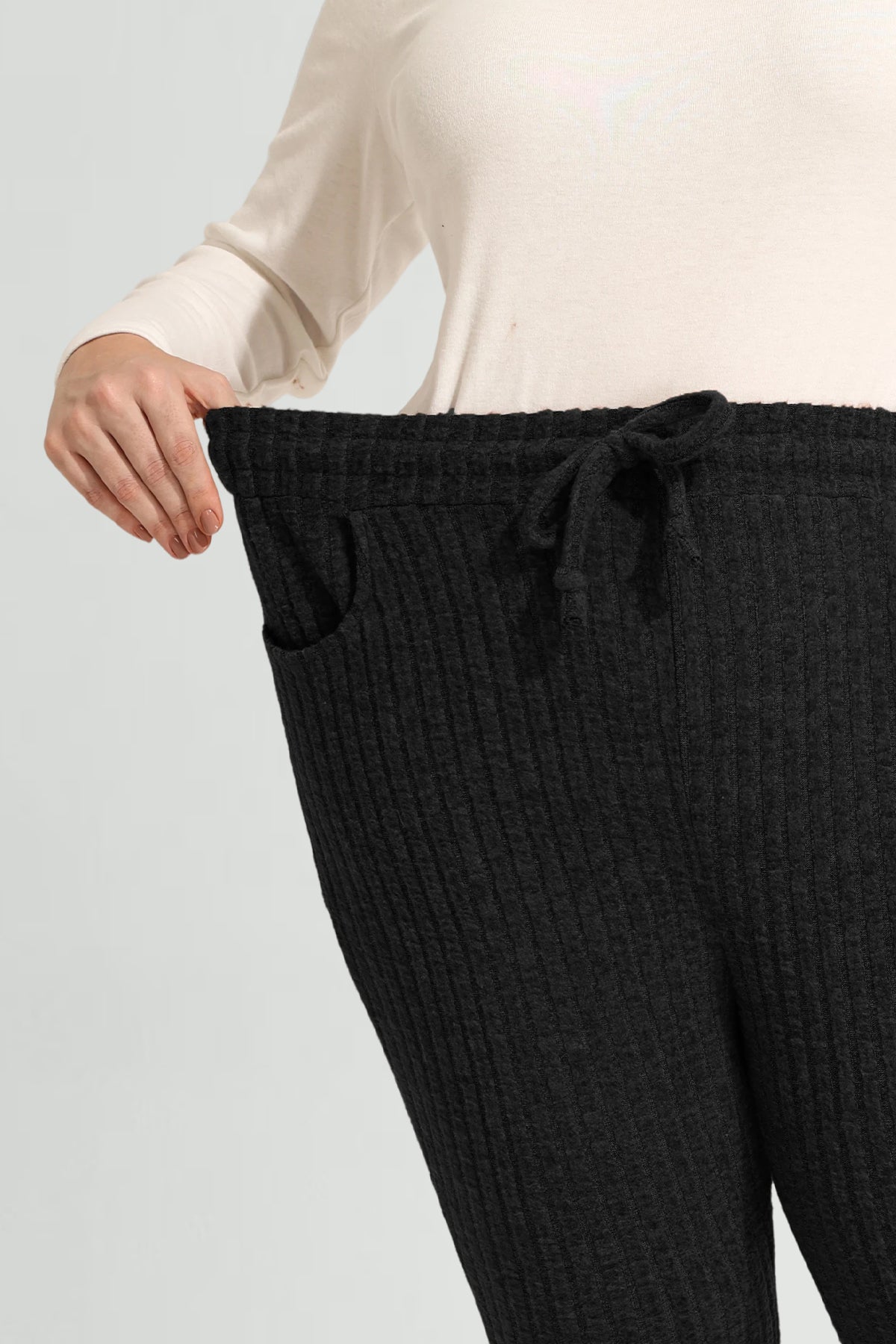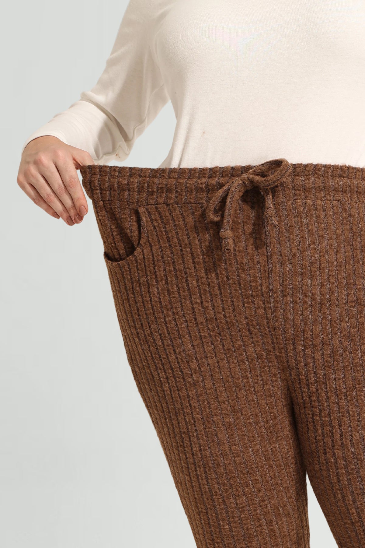 Texture Velvet Drawstring Elastic Waist Pocket Pants