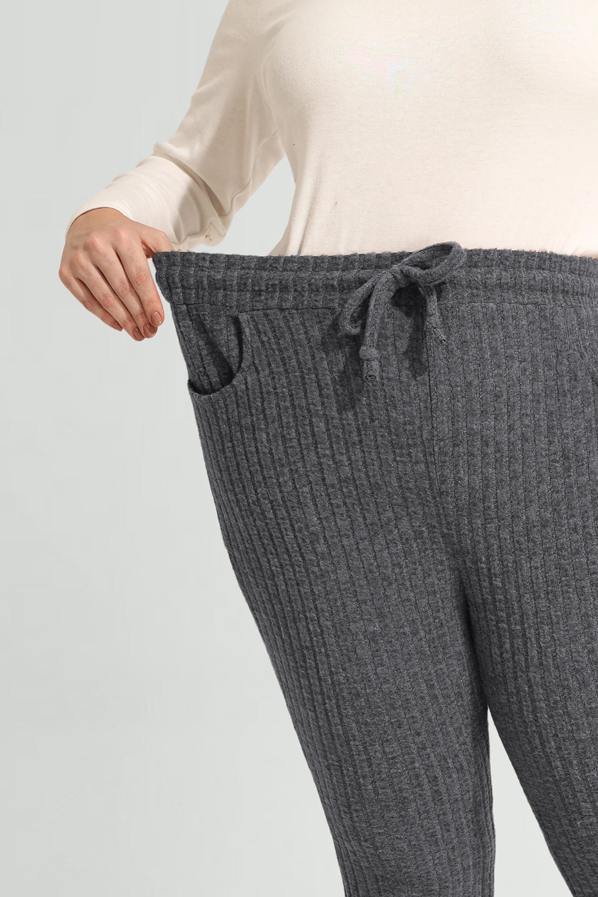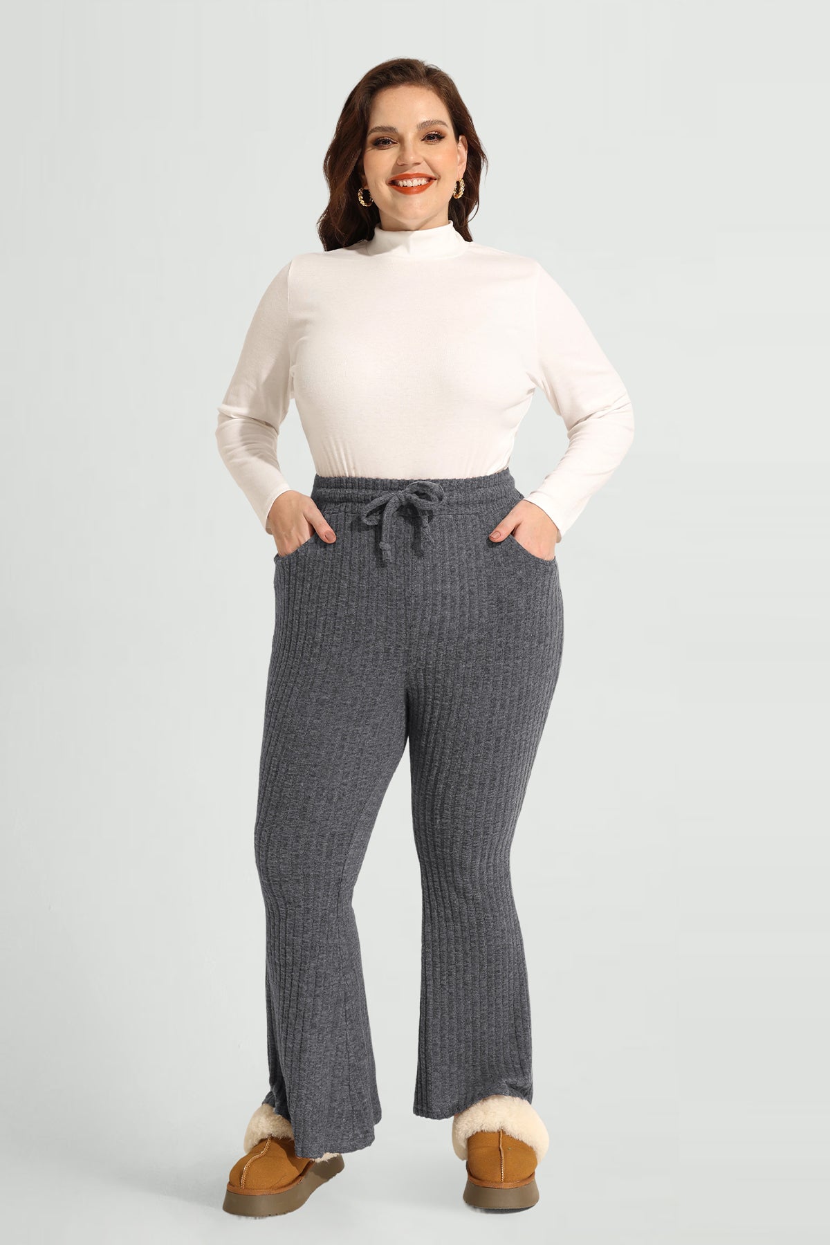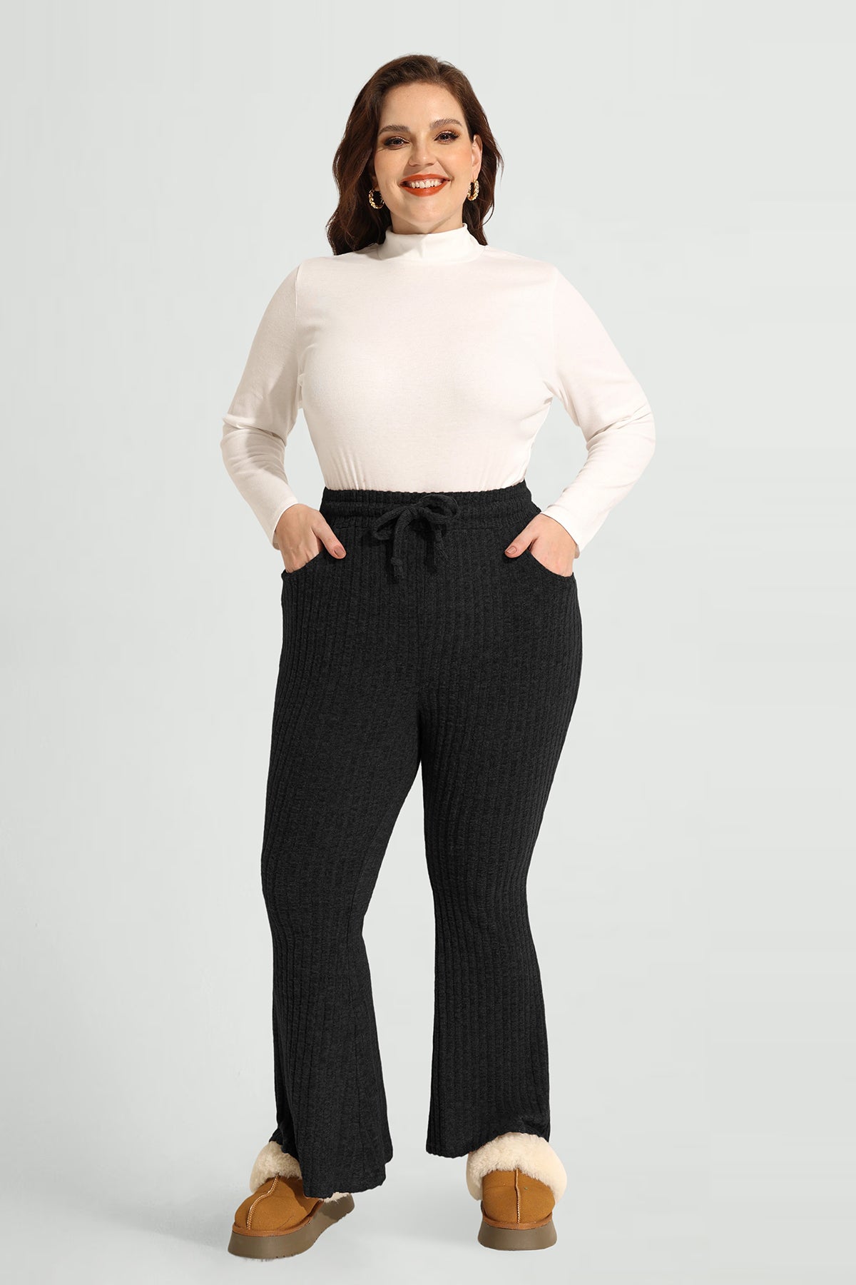 Texture Velvet Drawstring Elastic Waist Pocket Pants