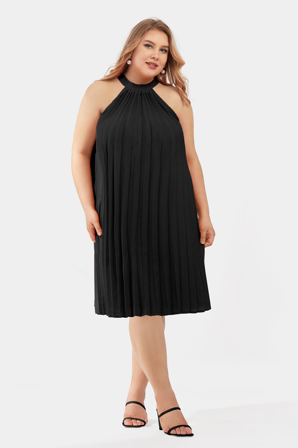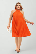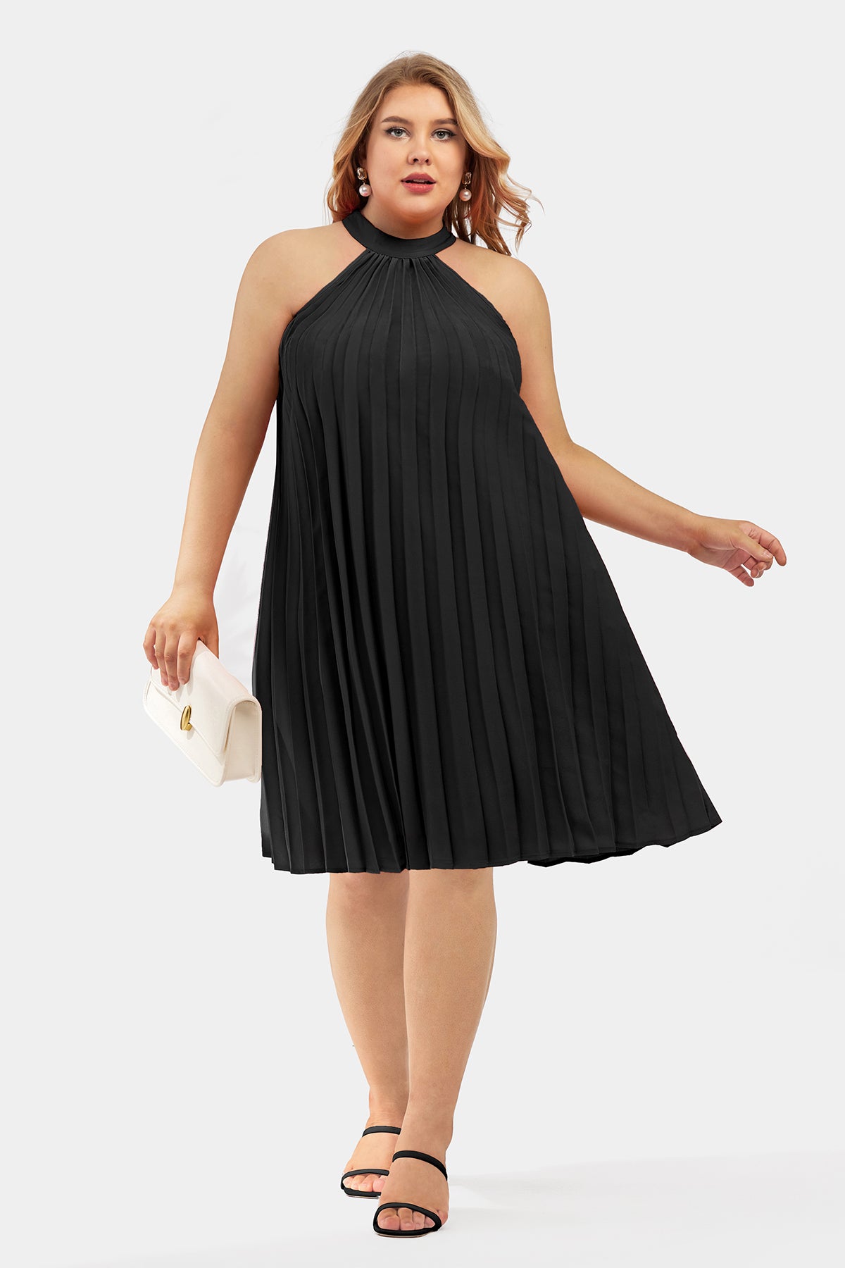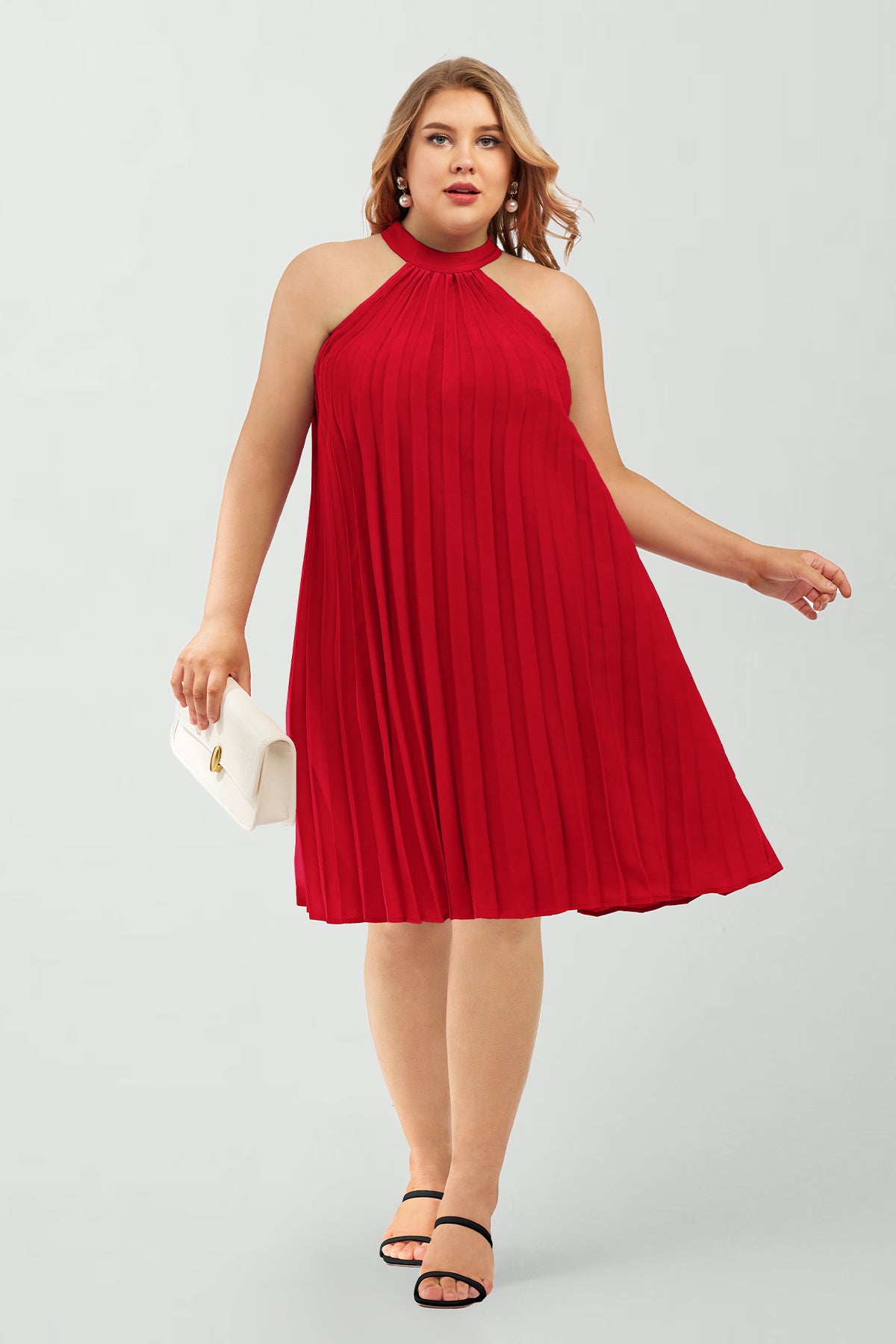 Plain Halter Neck Pleated Flowy Shift Mini Dress