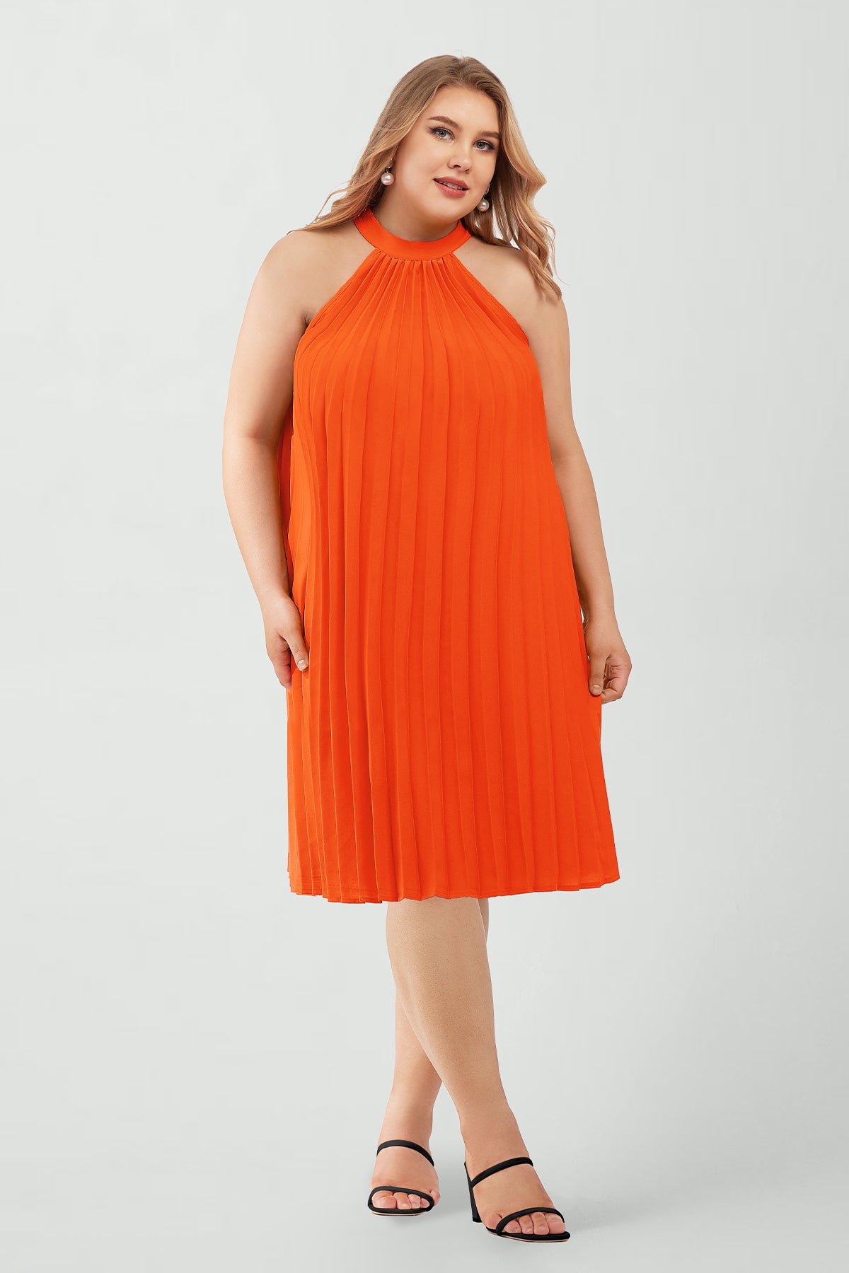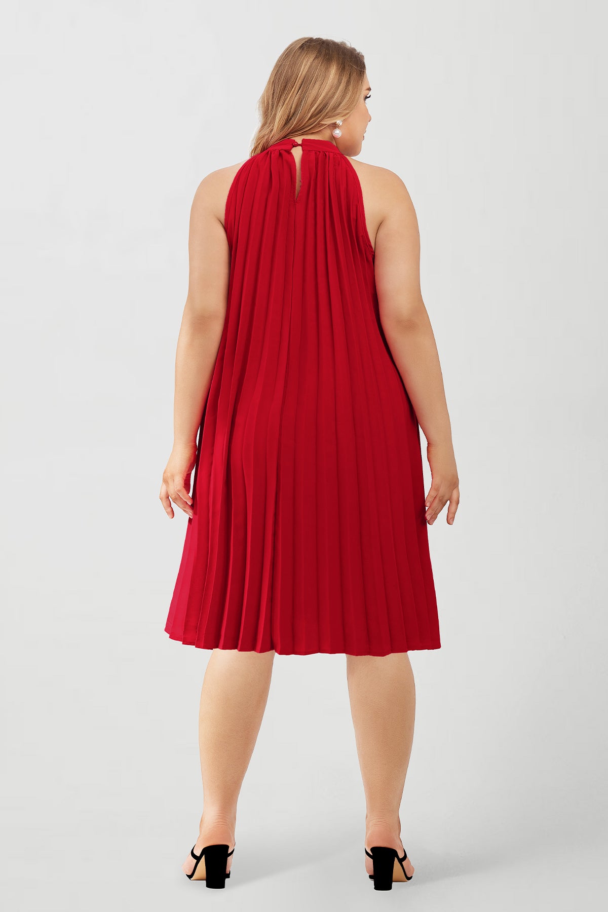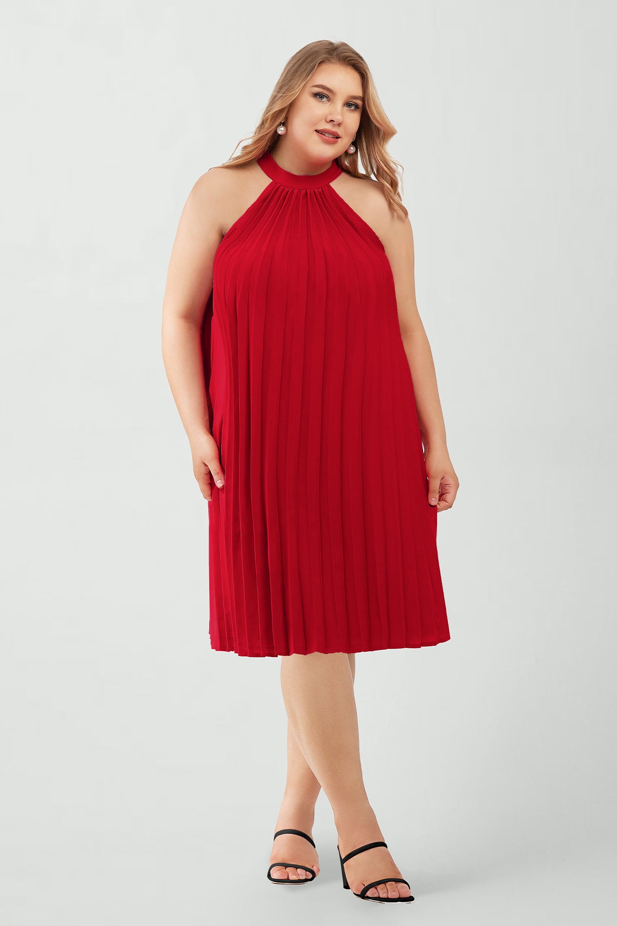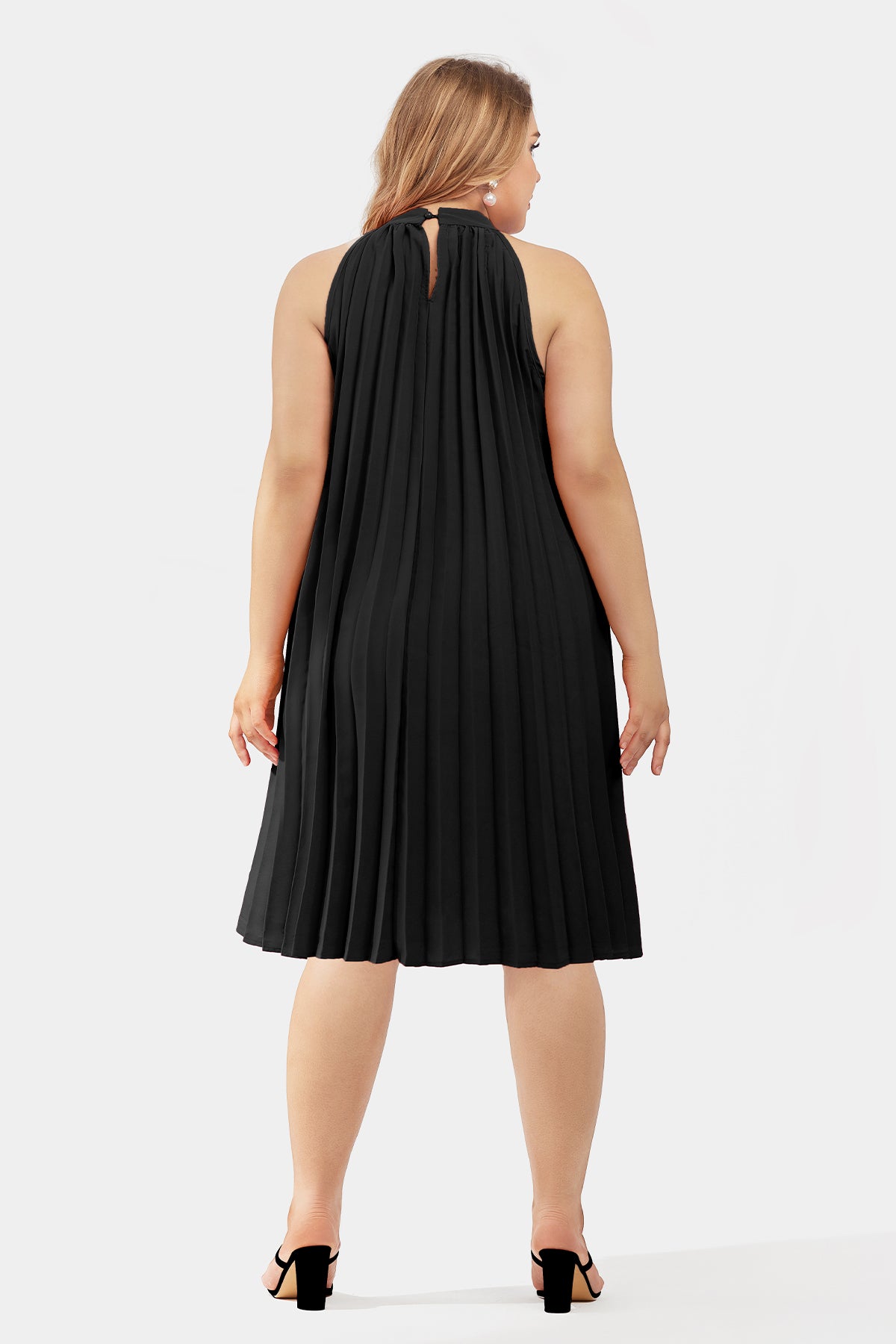 Plain Halter Neck Pleated Flowy Shift Mini Dress