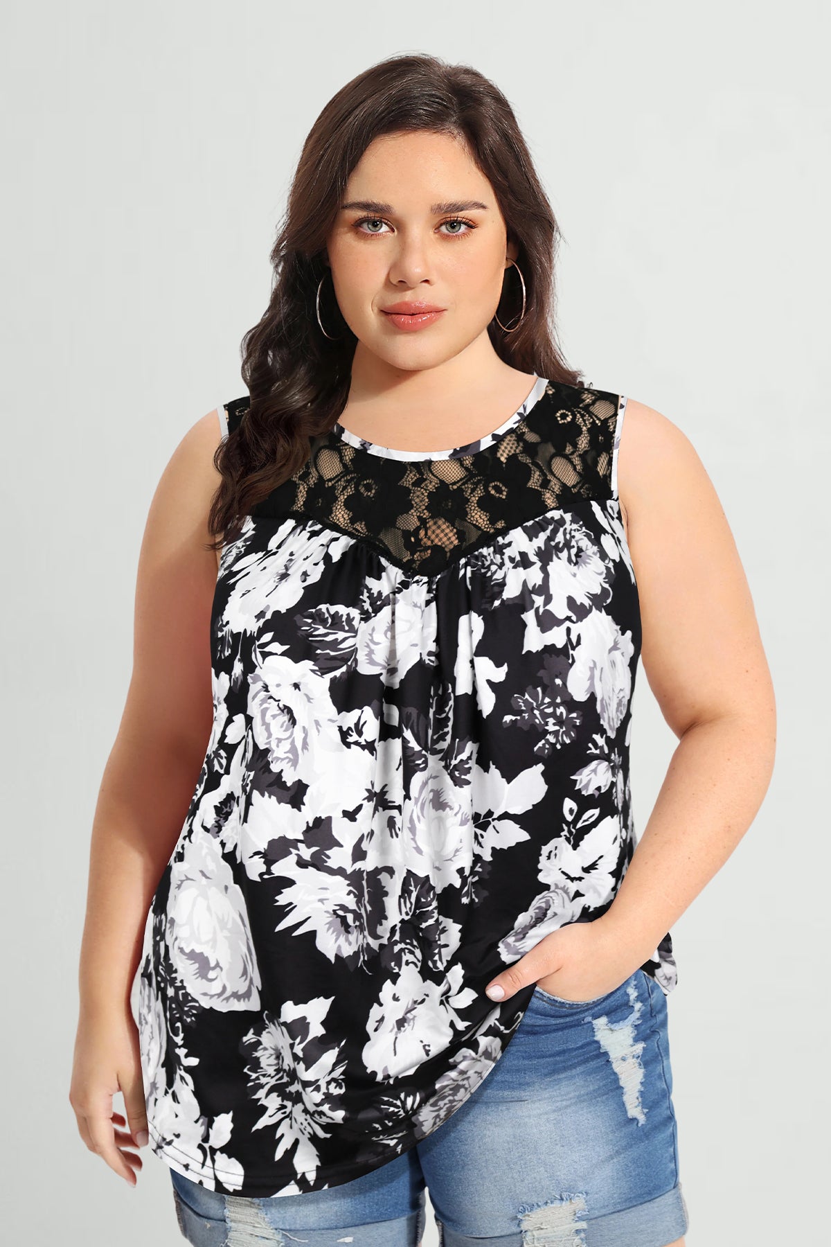 Supersoft Floral Resort Outfit Sexy Lace Crewneck Tank