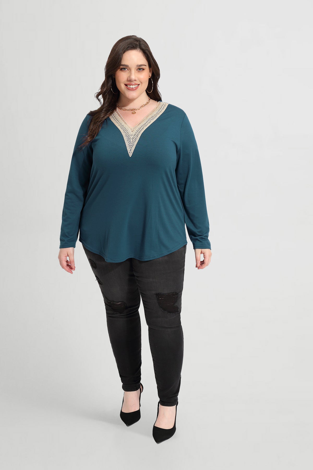 Details: Lace V Neckline