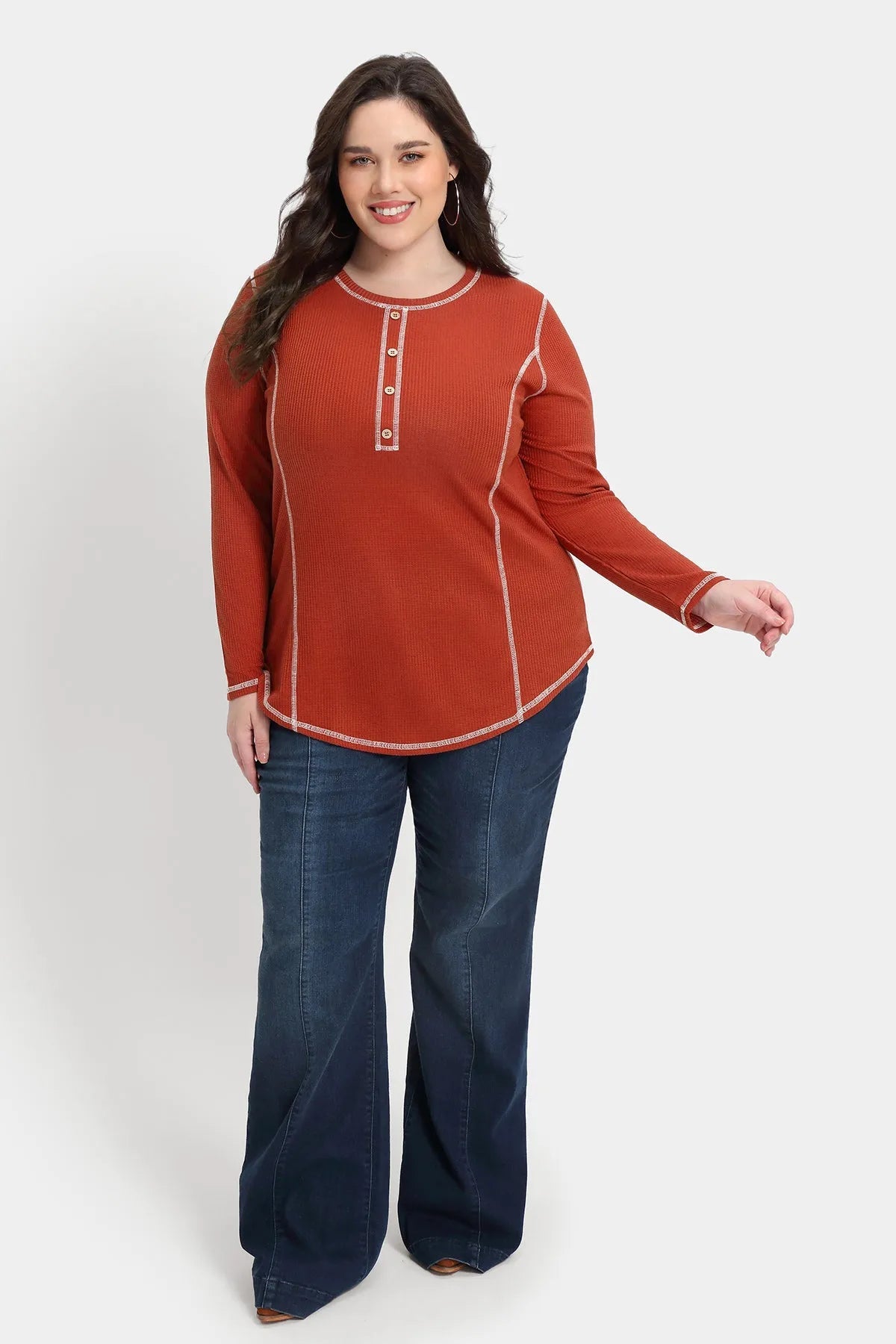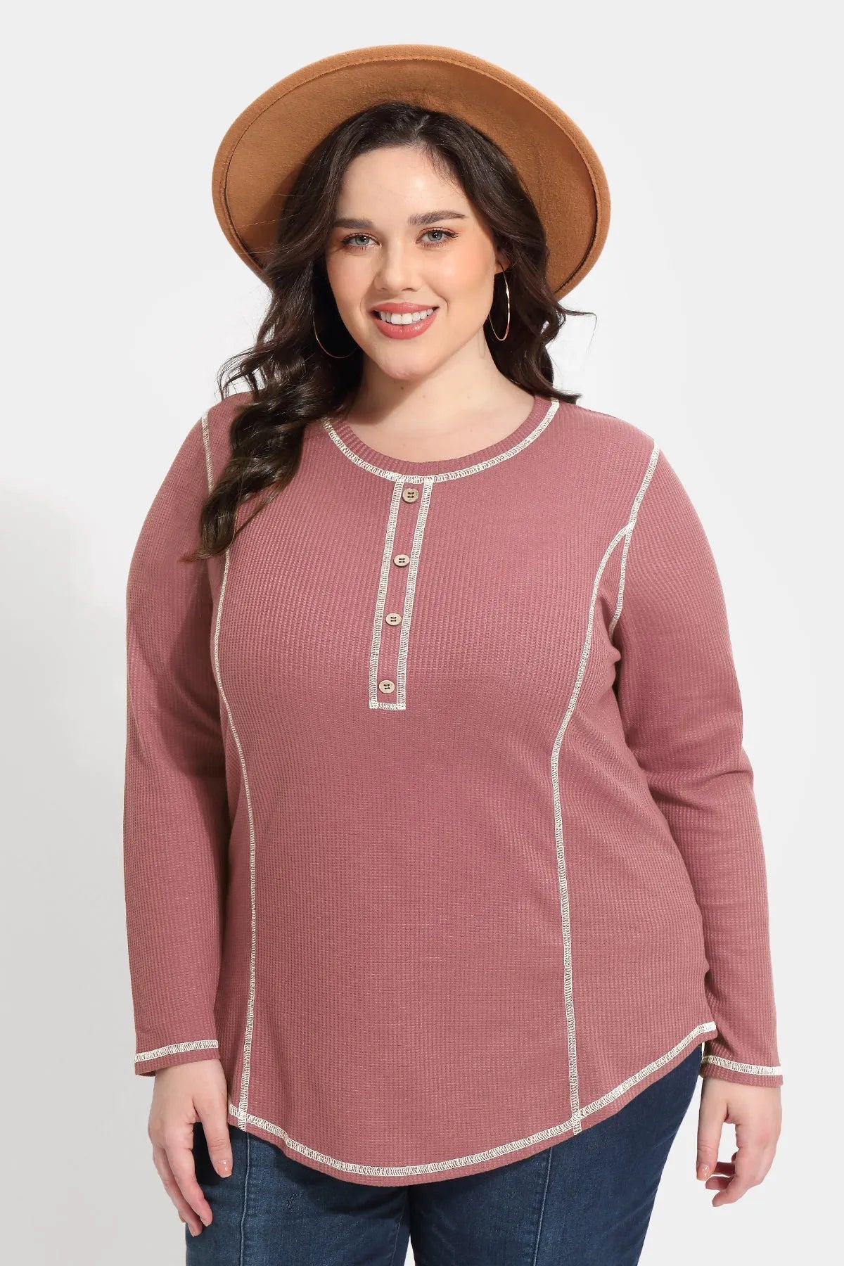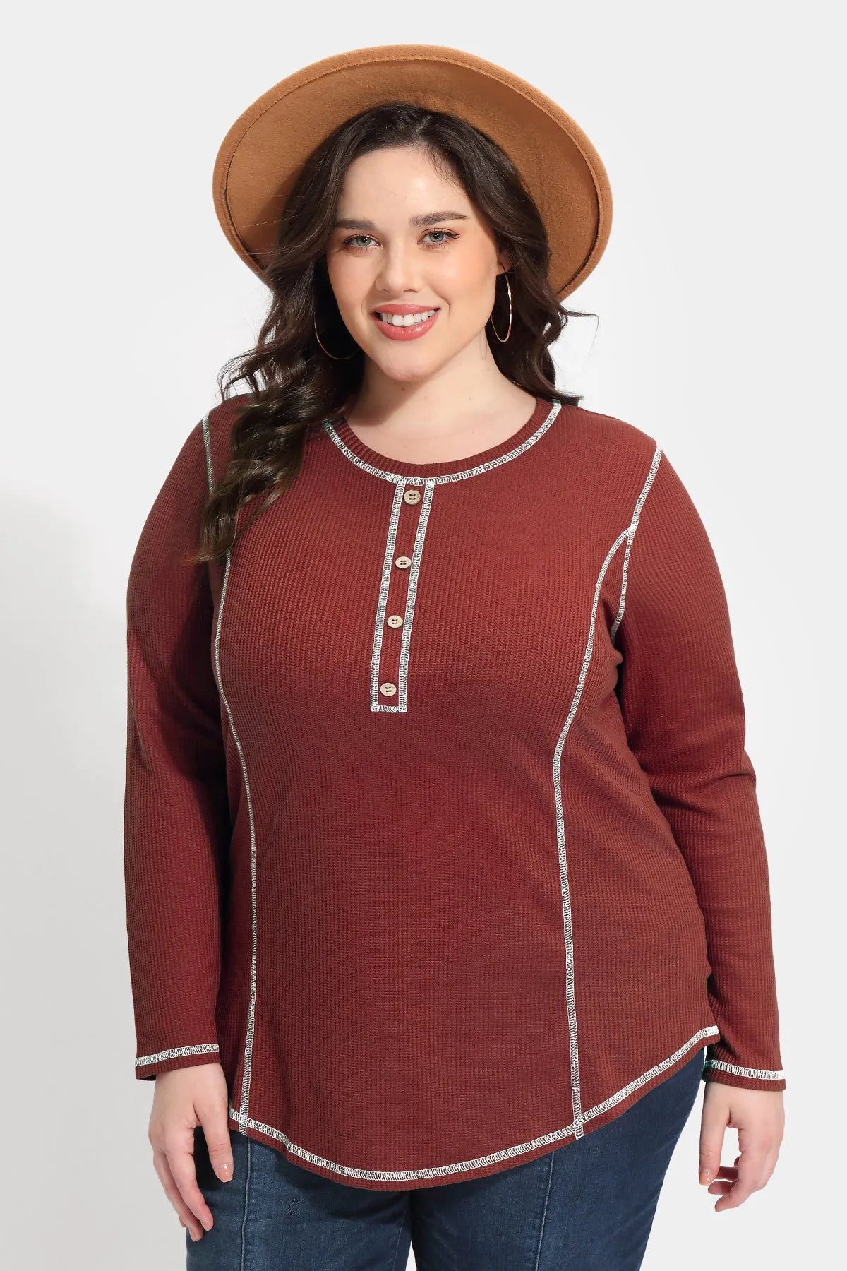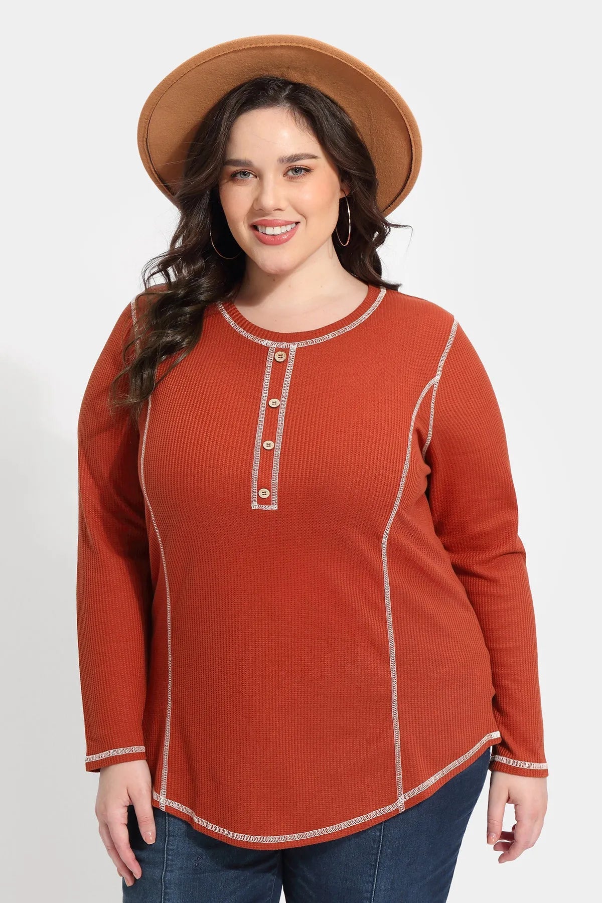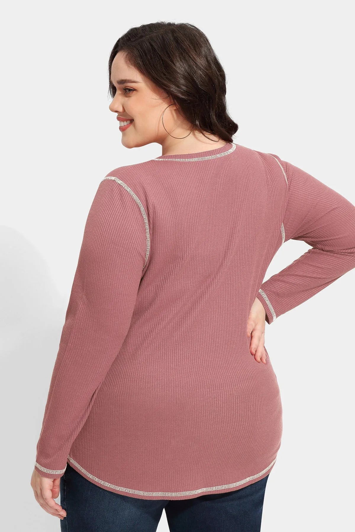 Solid Button Up Detail Crewneck Waffle T-Shirt
