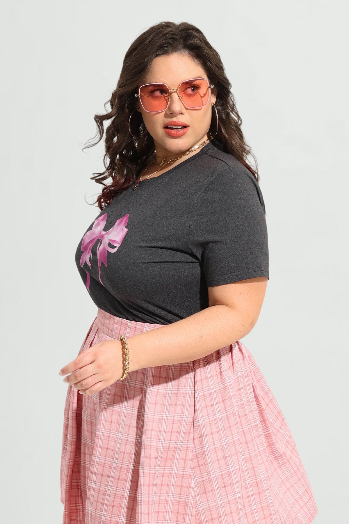 Ritera Bowknot Printing Crewneck Short Sleeve T-Shirt