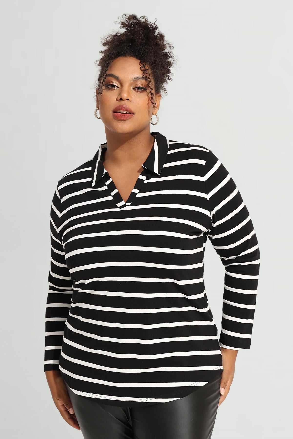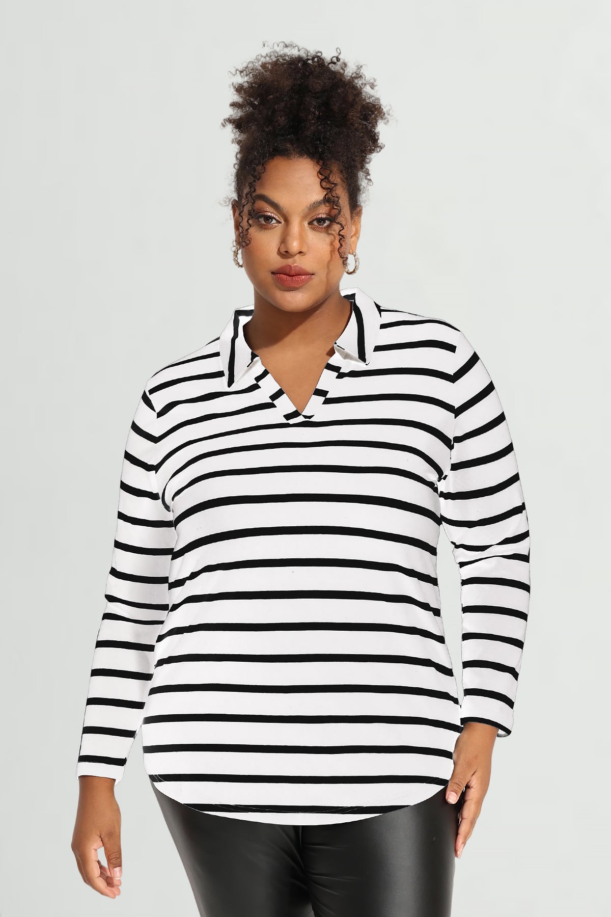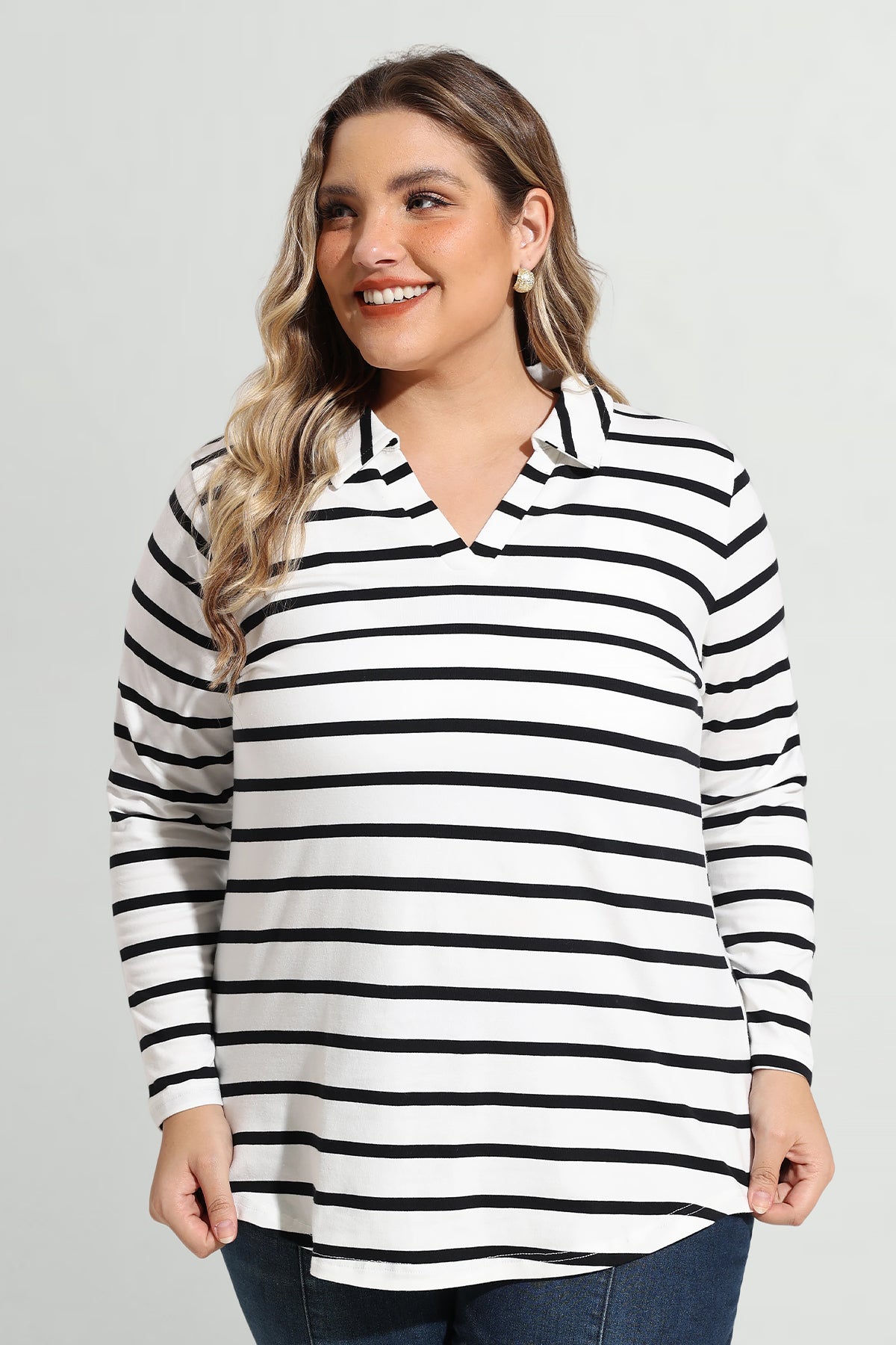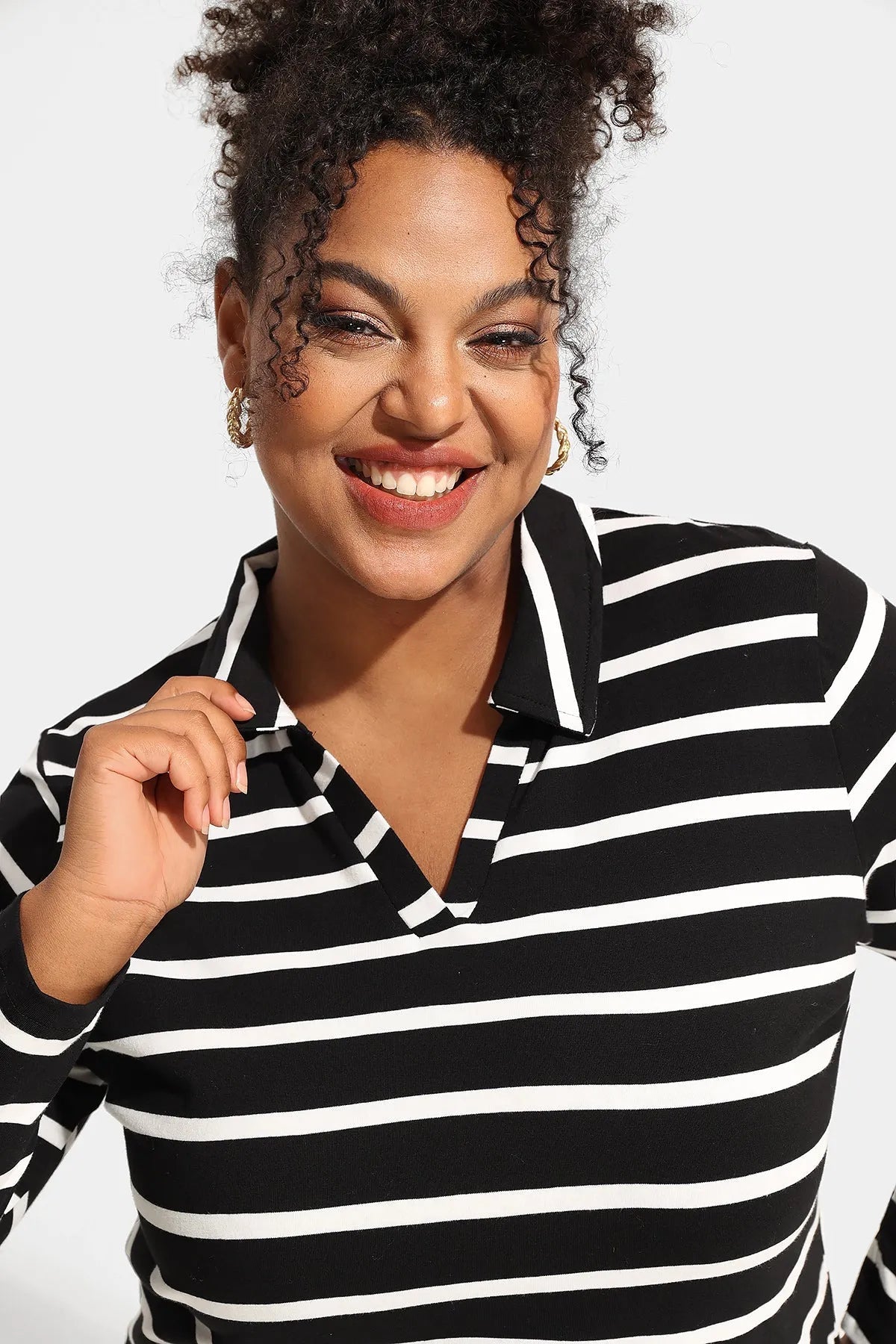 Ritera Striped Polo V Neck Long Sleeve T-Shirt
