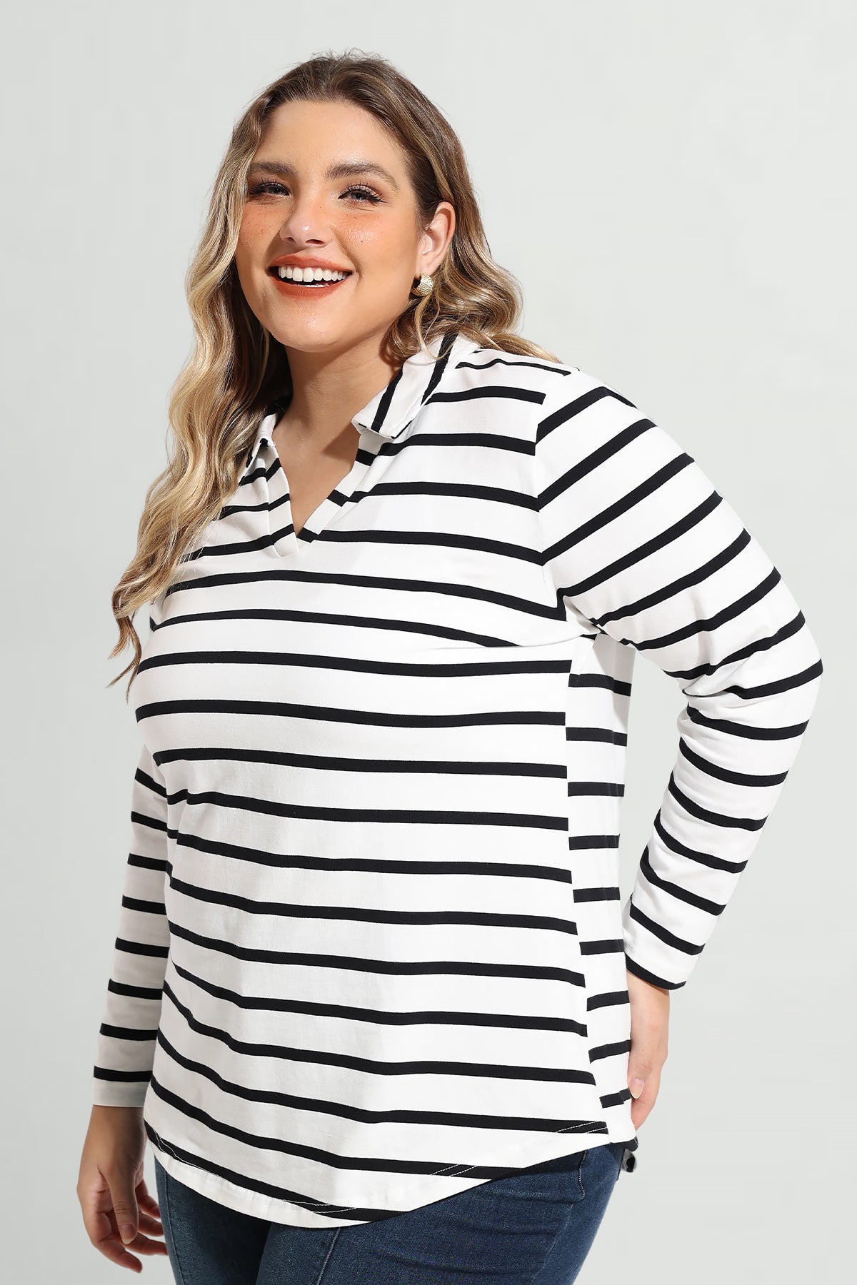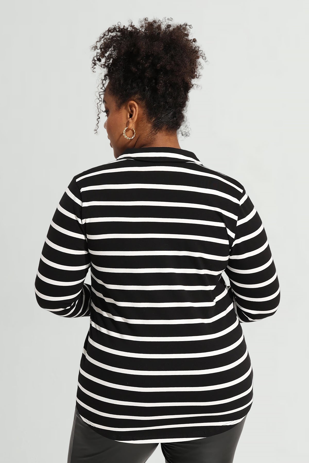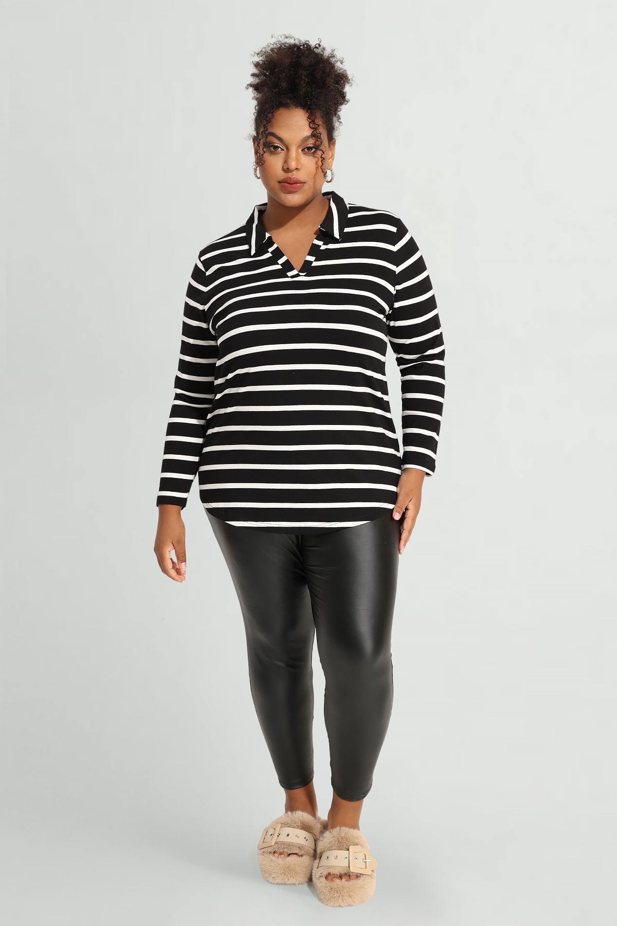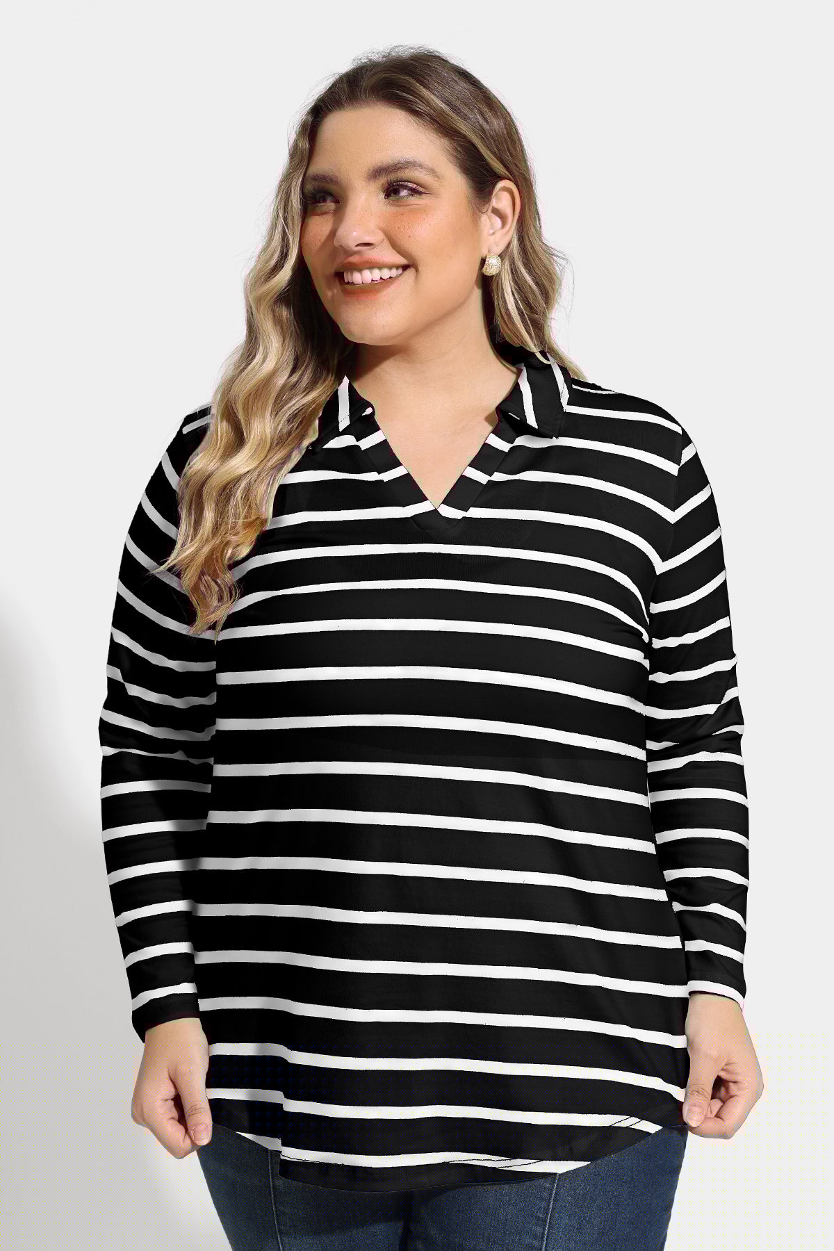 Ritera Striped Polo V Neck Long Sleeve T-Shirt