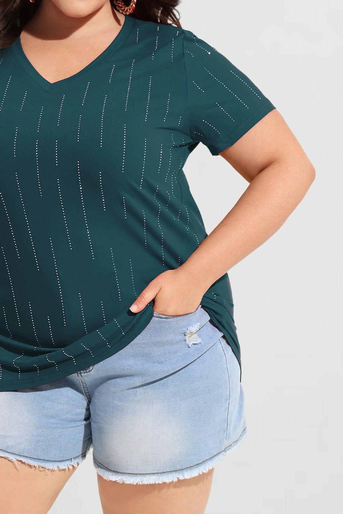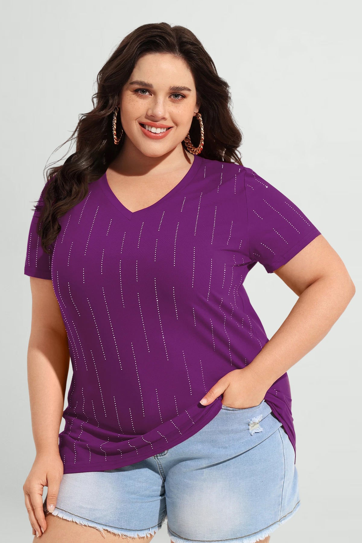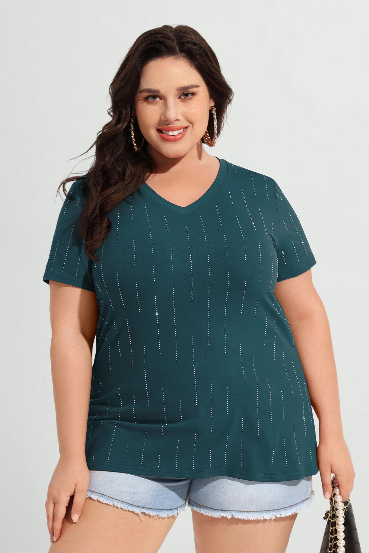 Ritera Sparkle Sequin Glitter Solid V Neck T-Shirt