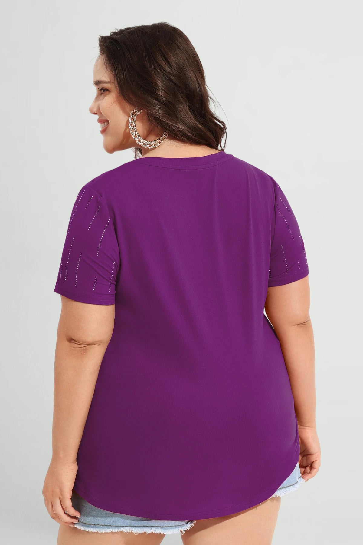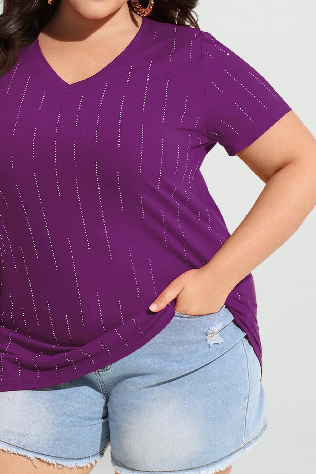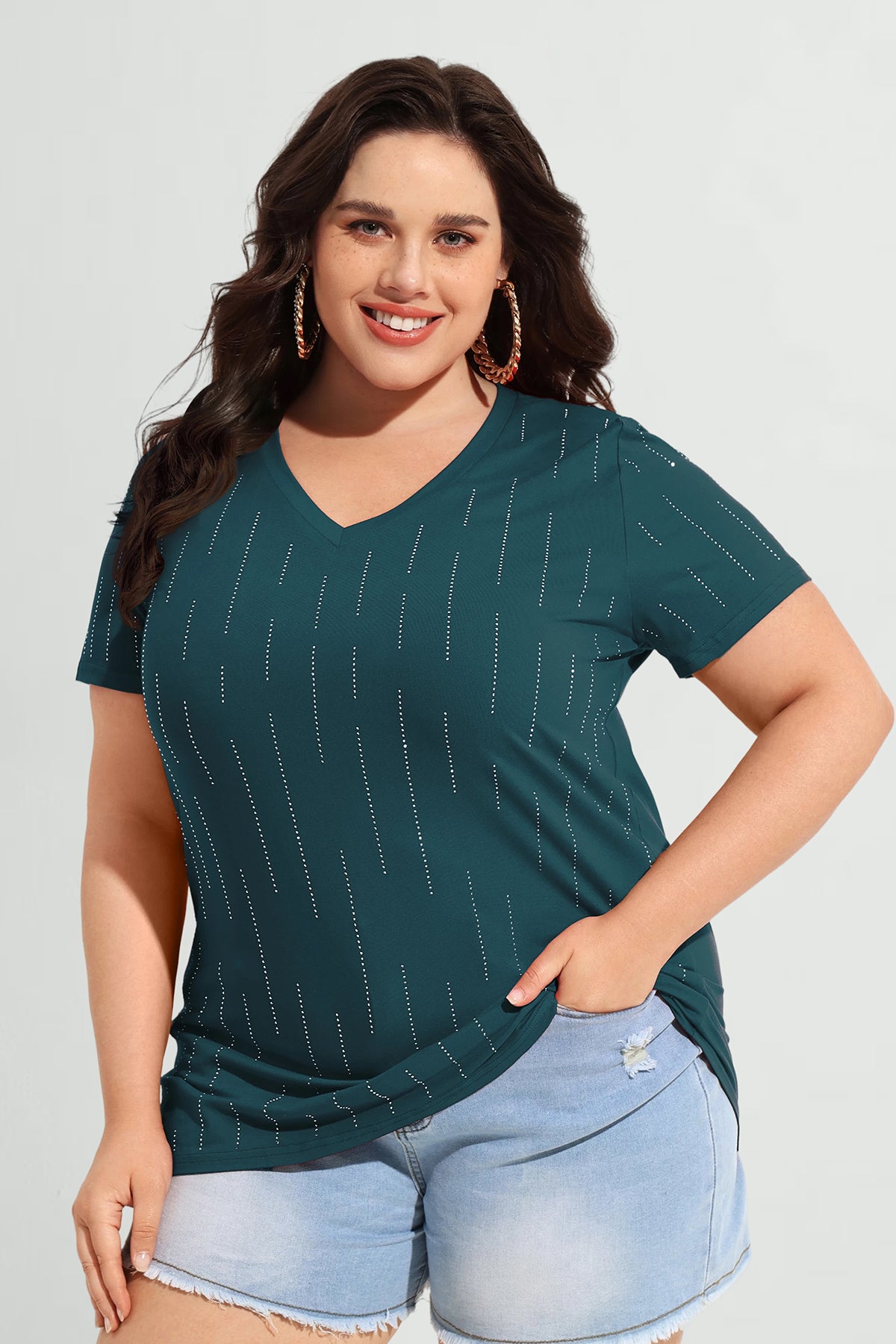 Ritera Sparkle Sequin Glitter Solid V Neck T-Shirt