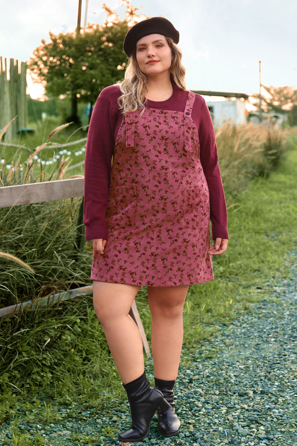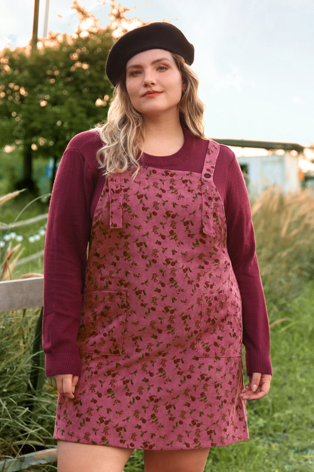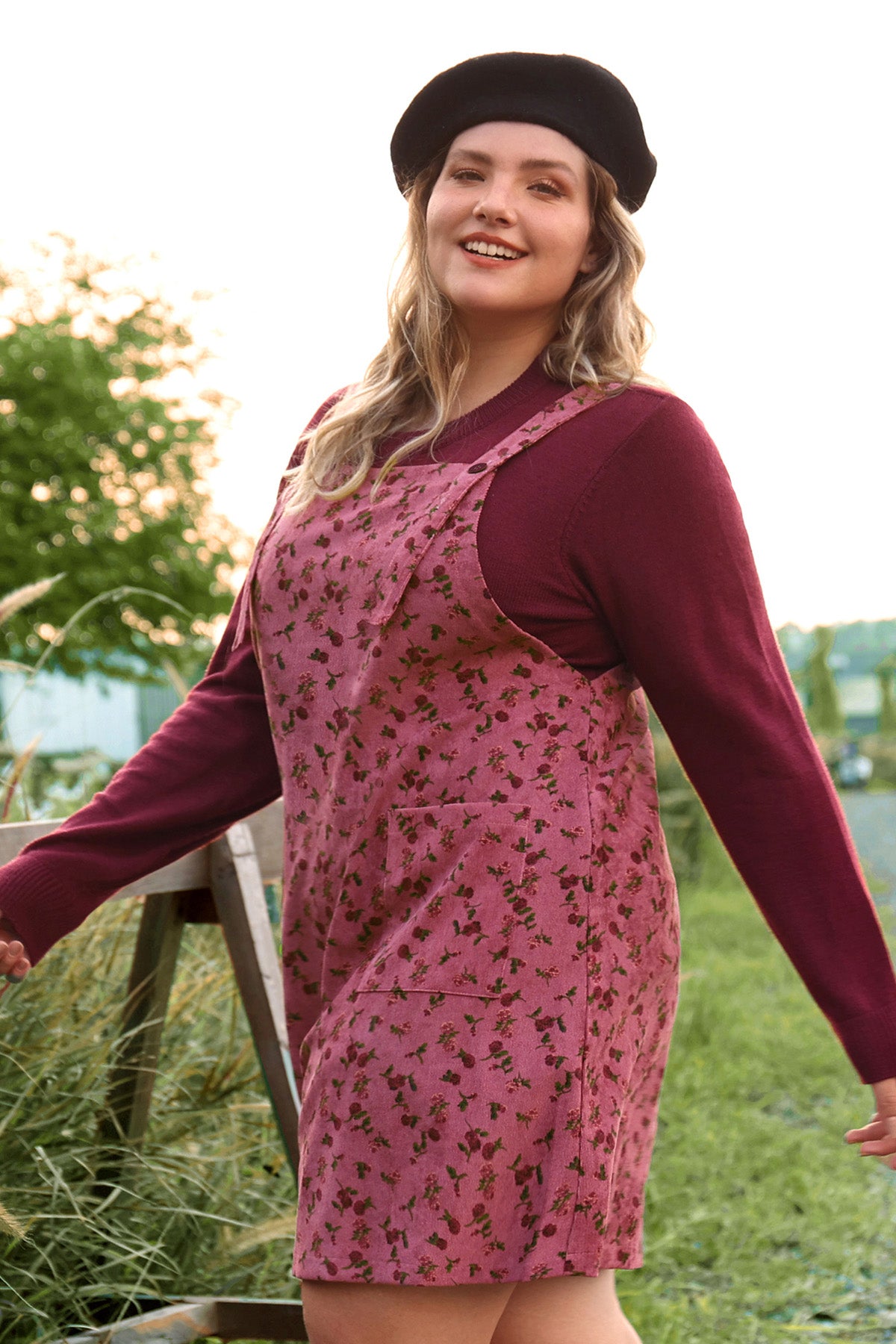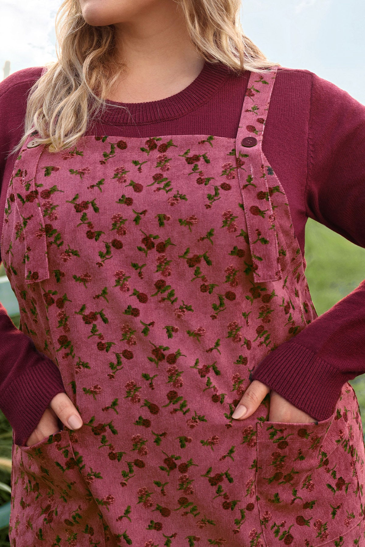 Pocket Floral Print Straps Overall Dress