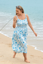 • Details: Smocked bodice, Spaghetti straps, Flowy full skirt