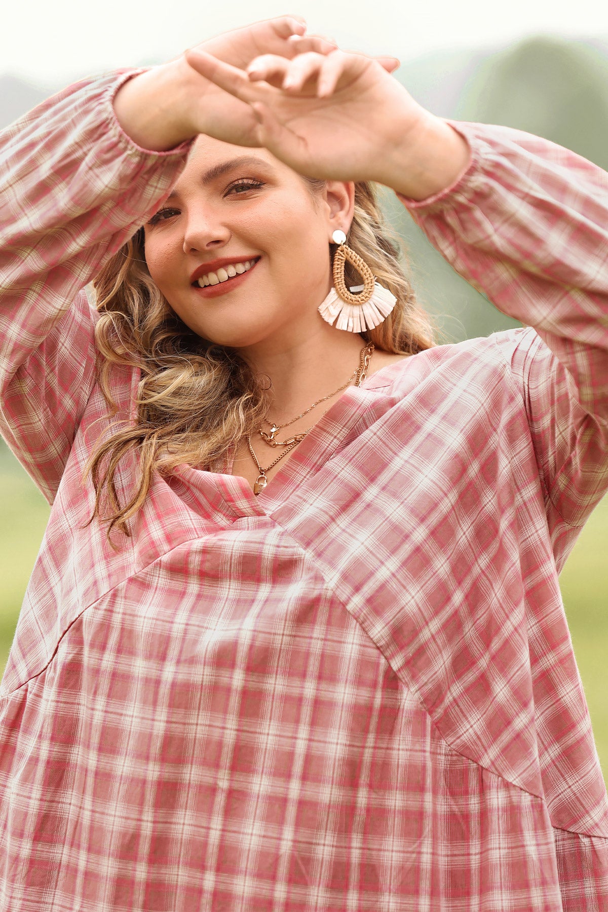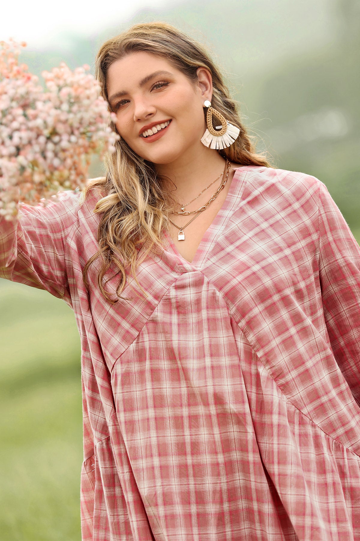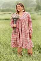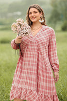 Ritera Pocket Plaid V Neck Pleated Midi Dress