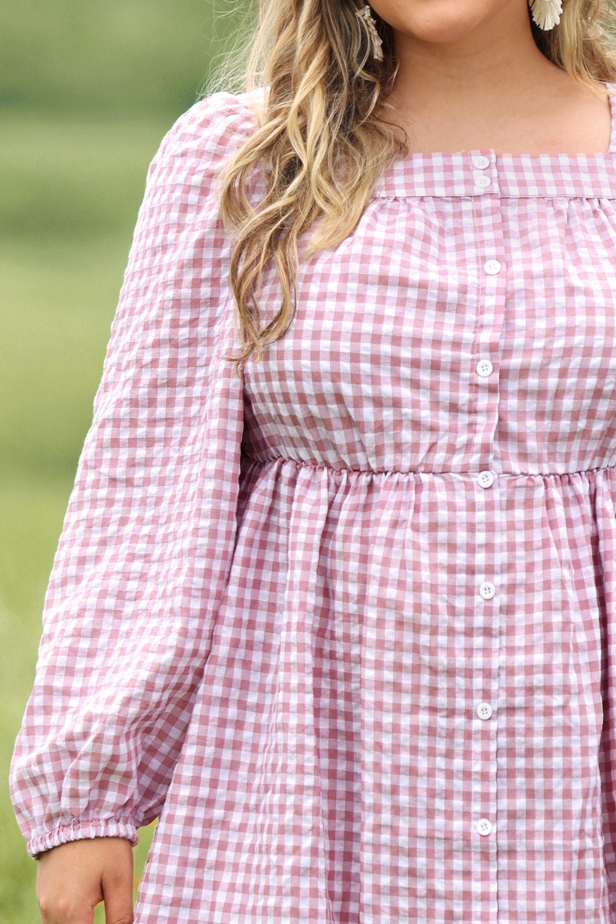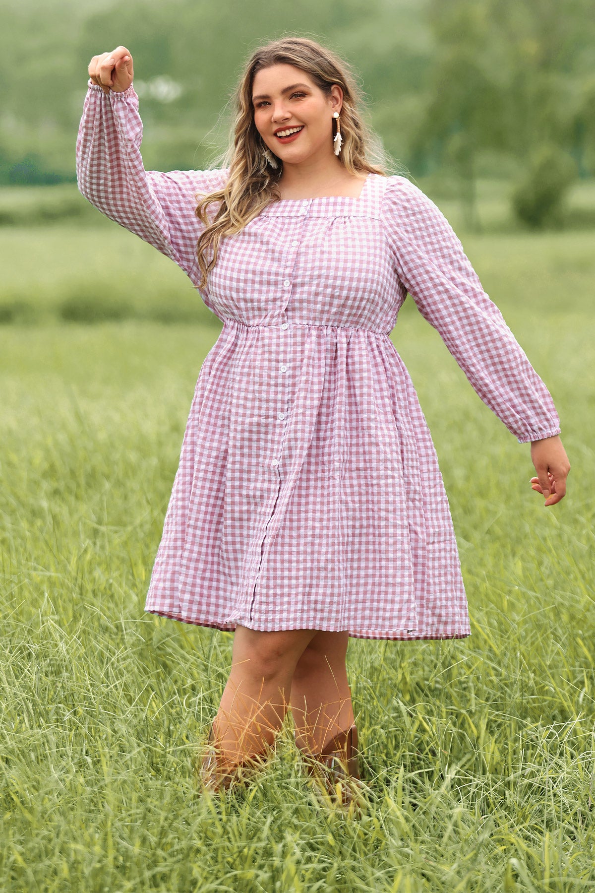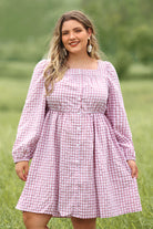 Plaid Button Down Square Neck Pleated Mini Dress
