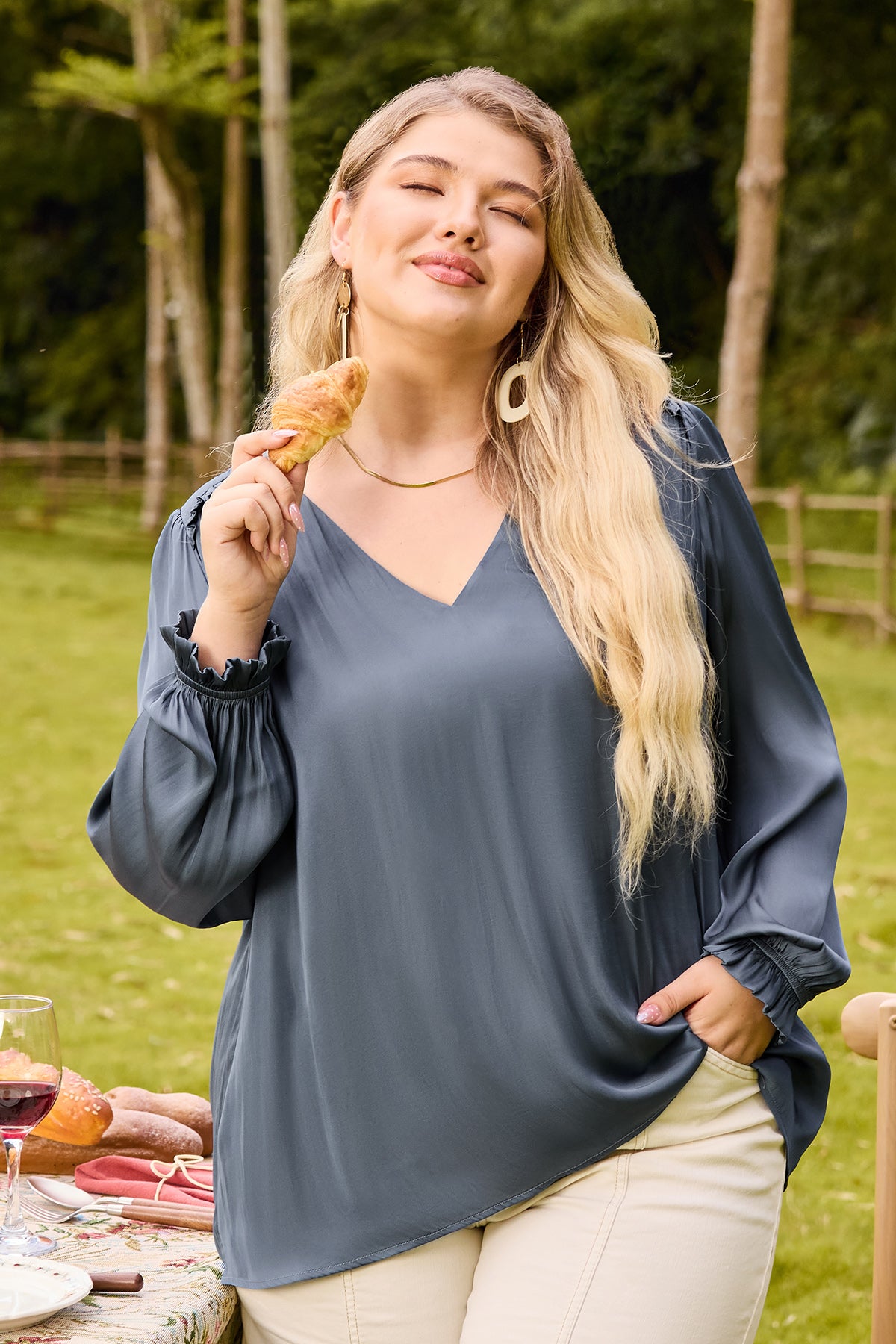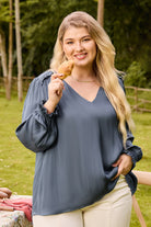 V-Neck Ruffled Long Sleeve Blouse