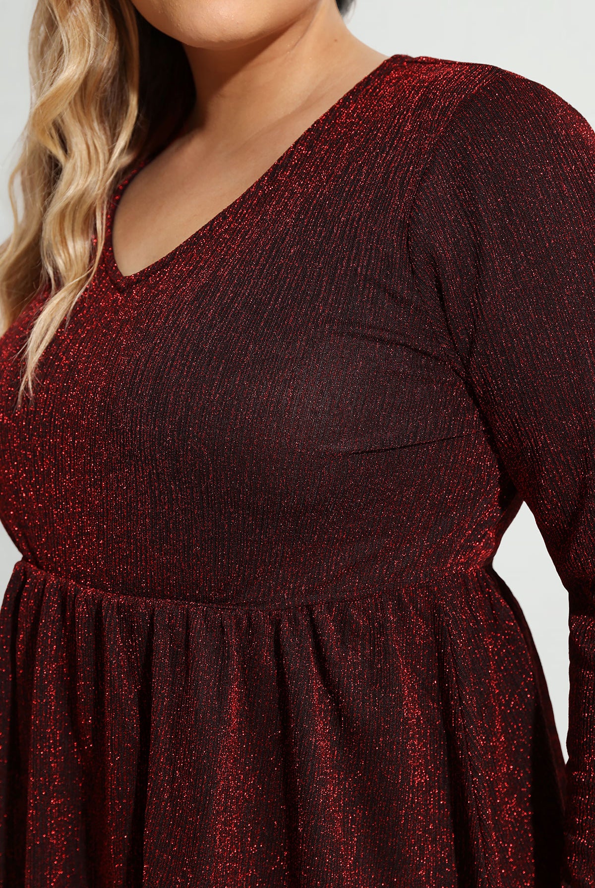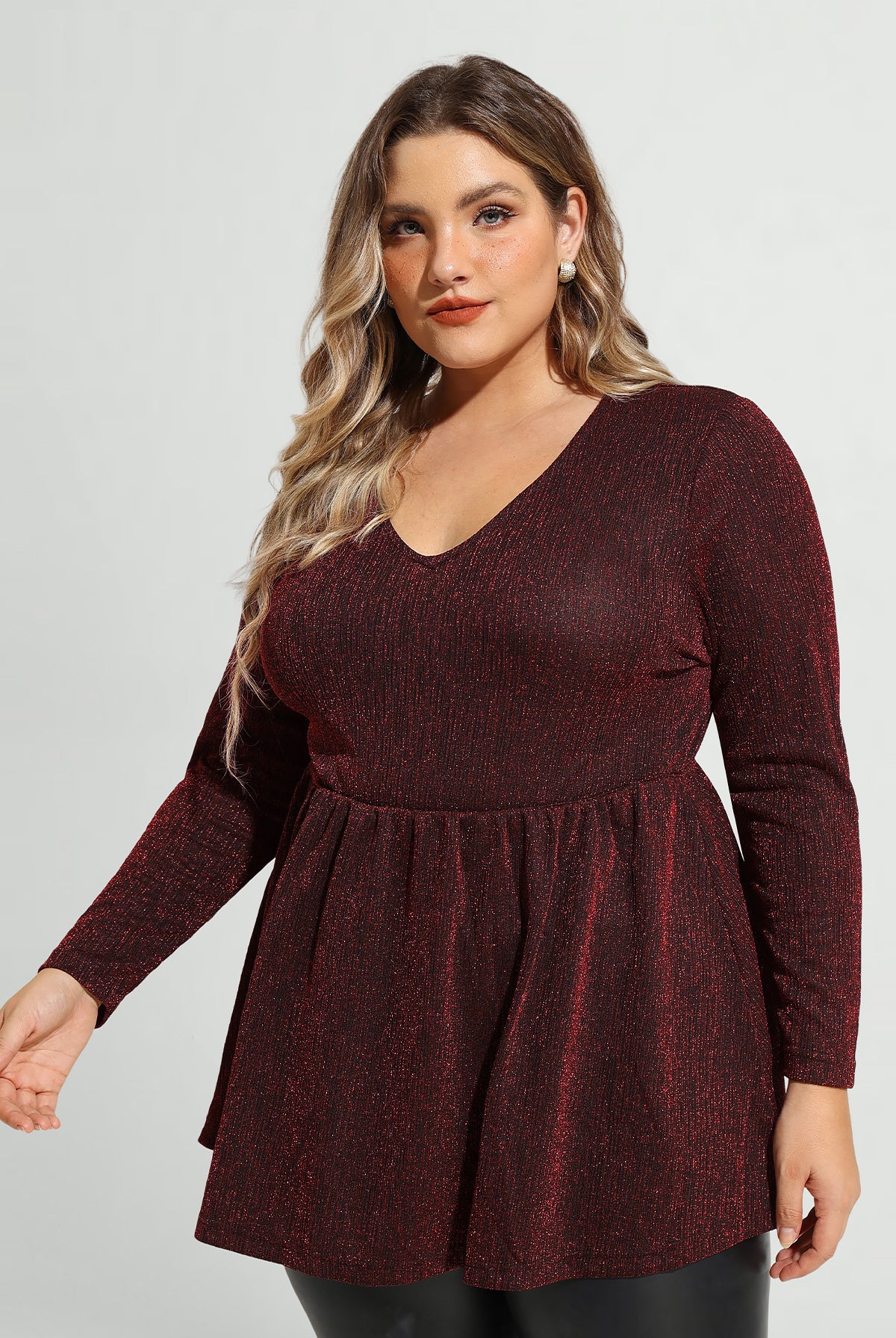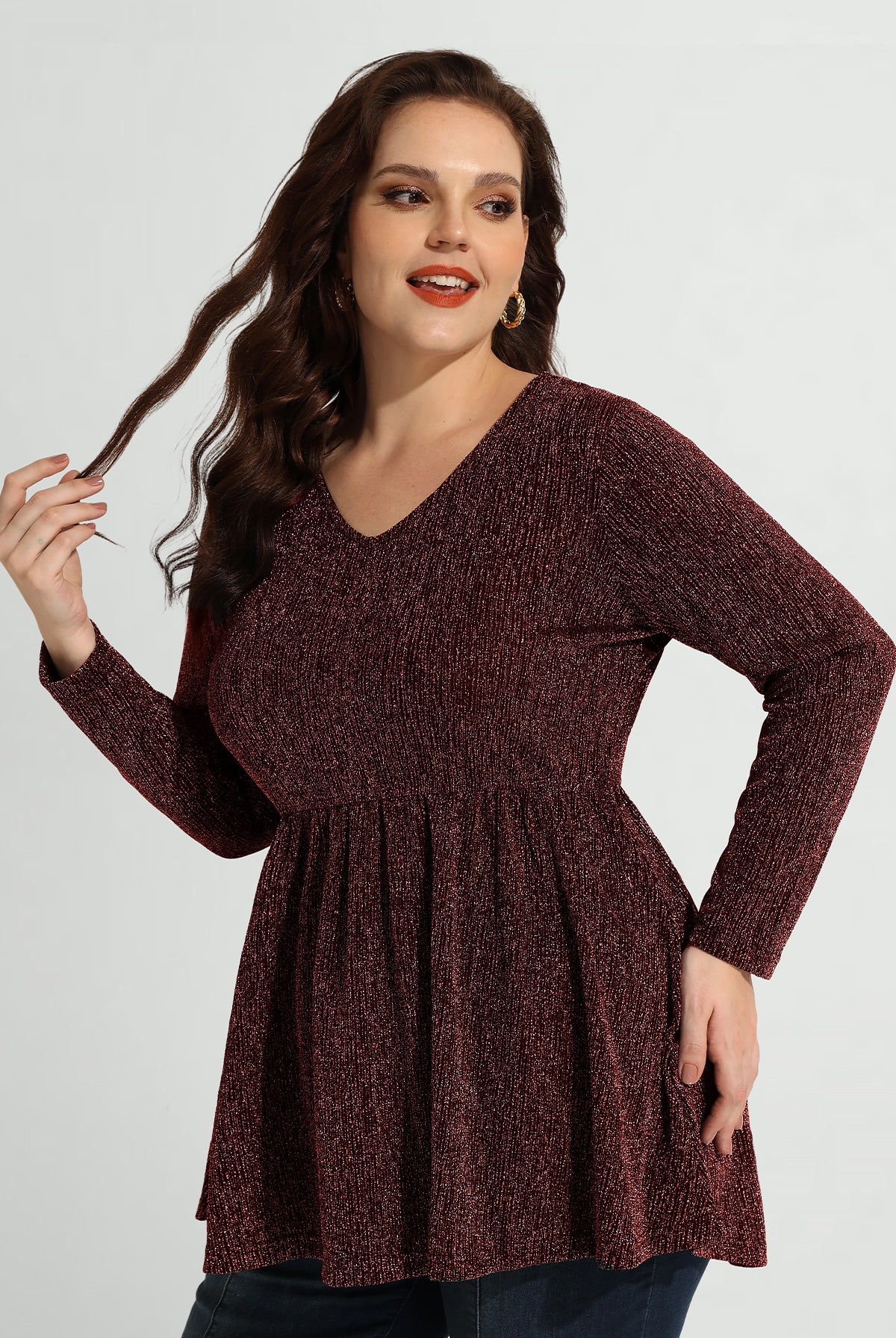 Fließendes, plissiertes Tunika-Langarmhemd mit elastischer Taille