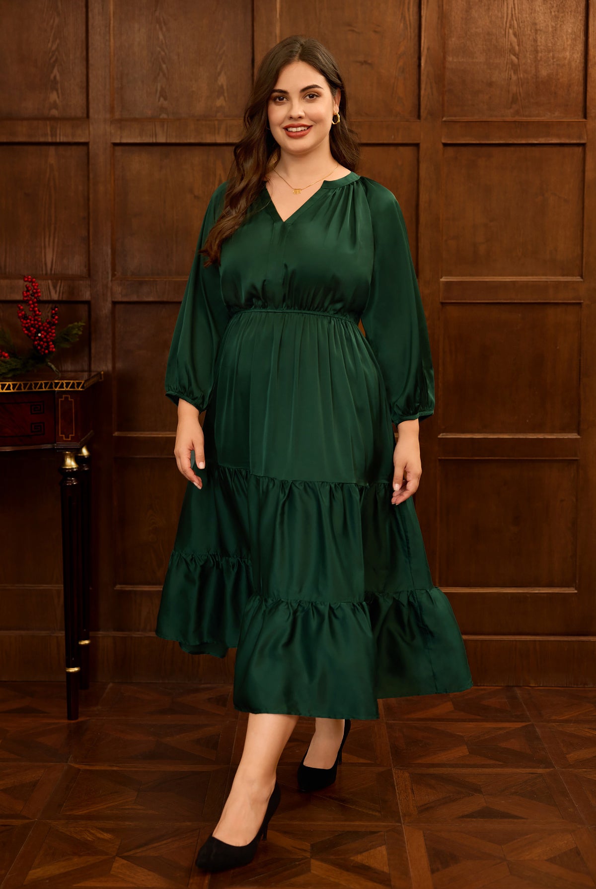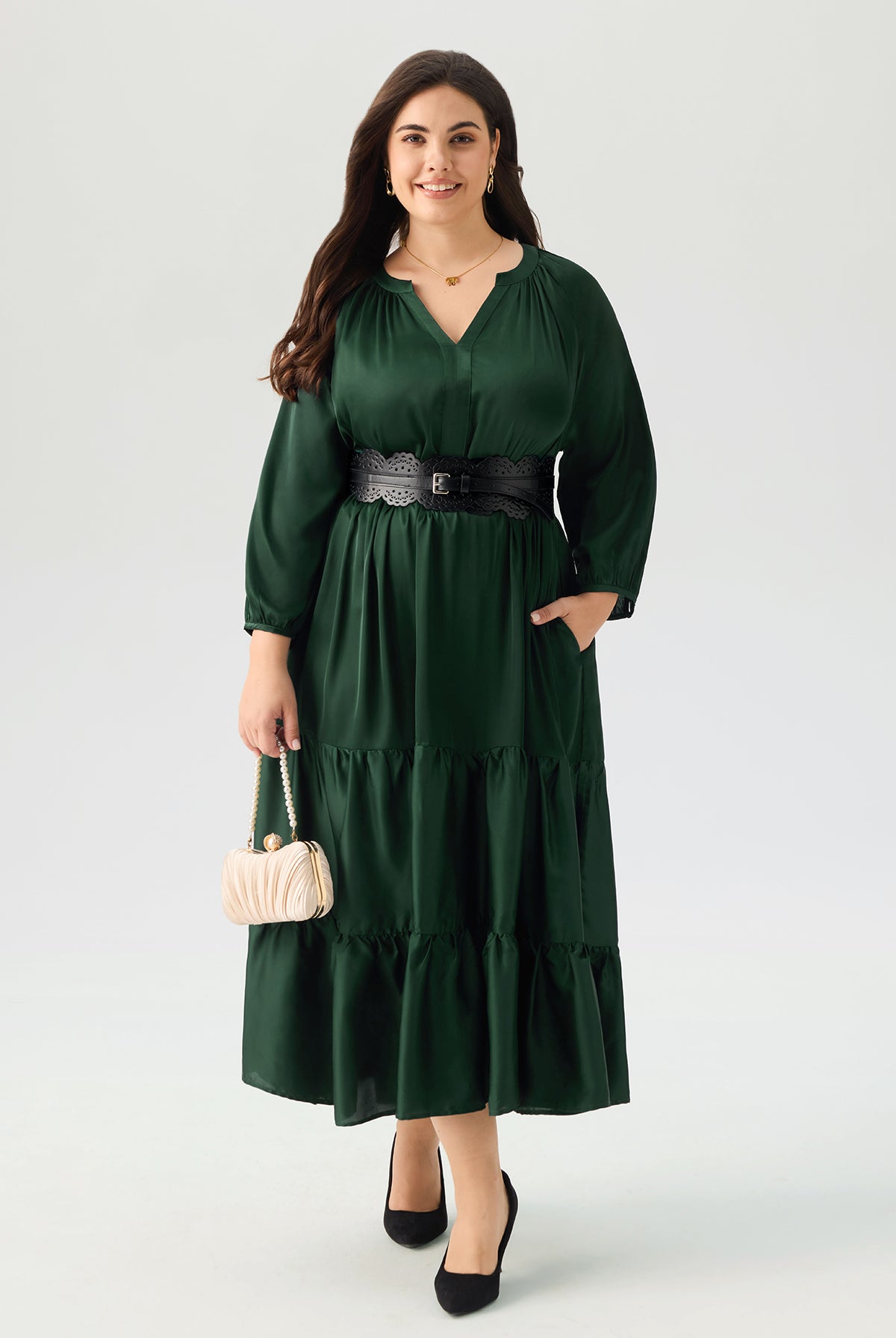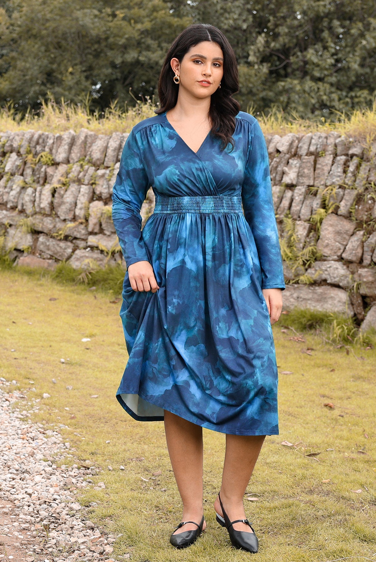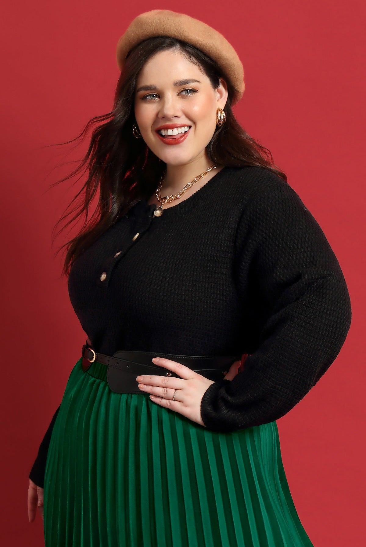 Fließendes, plissiertes Tunika-Langarmhemd mit elastischer Taille