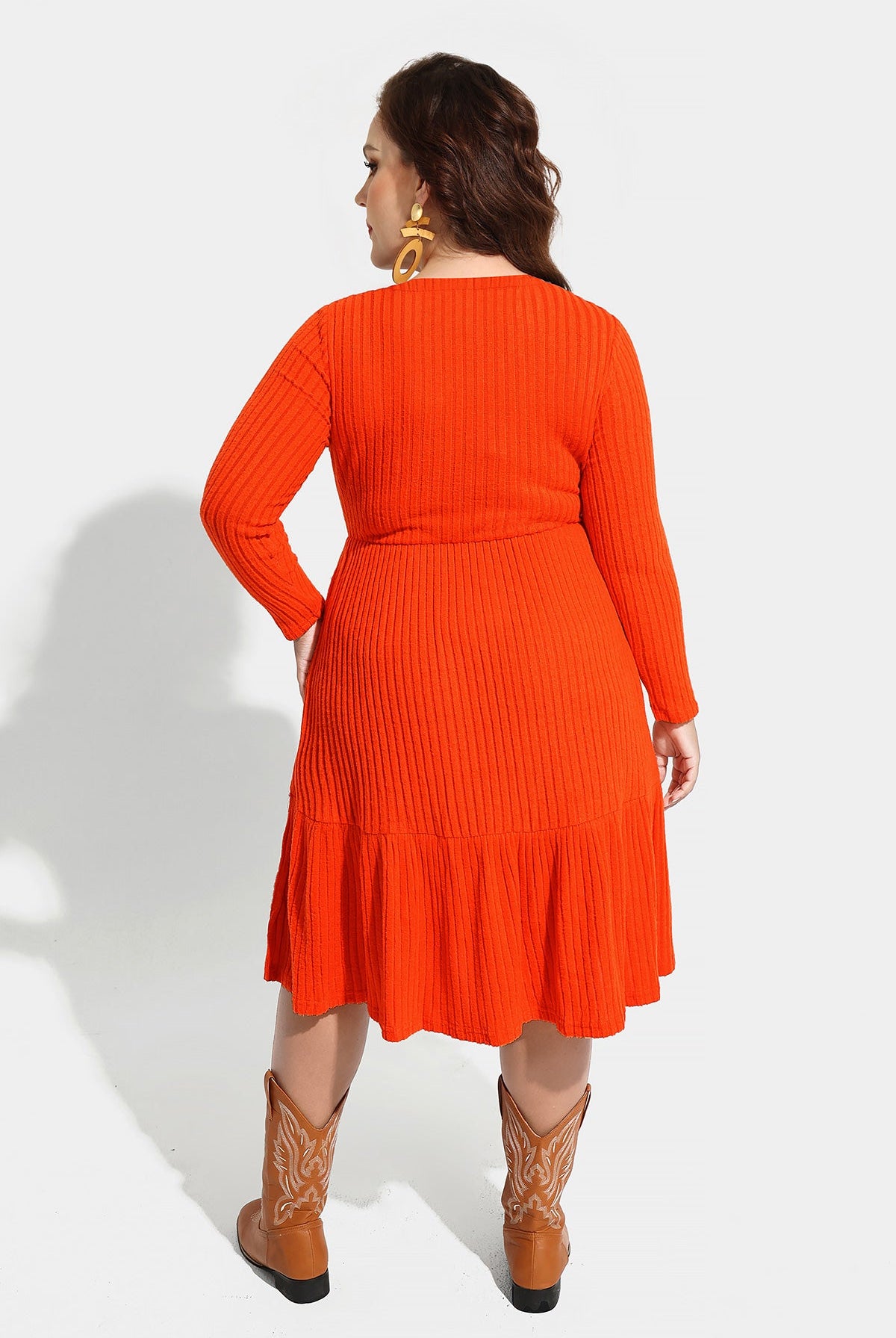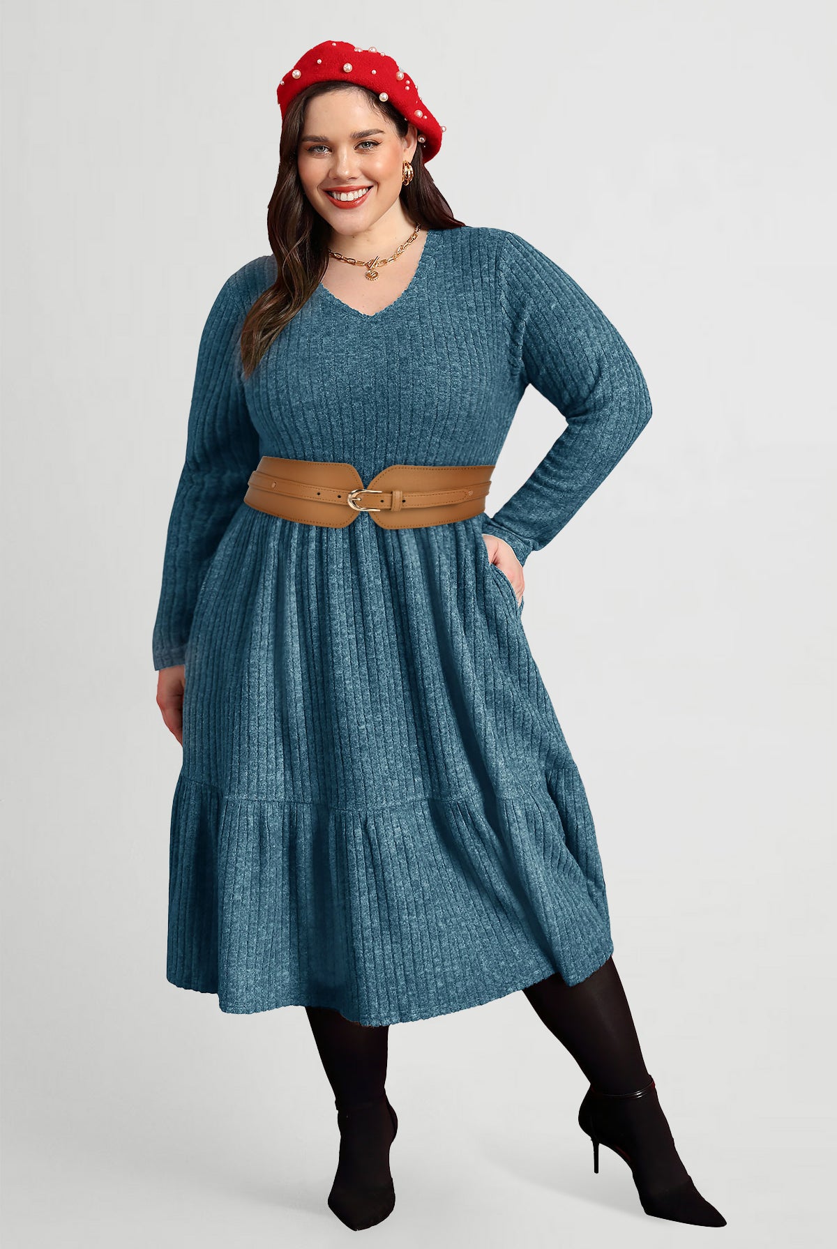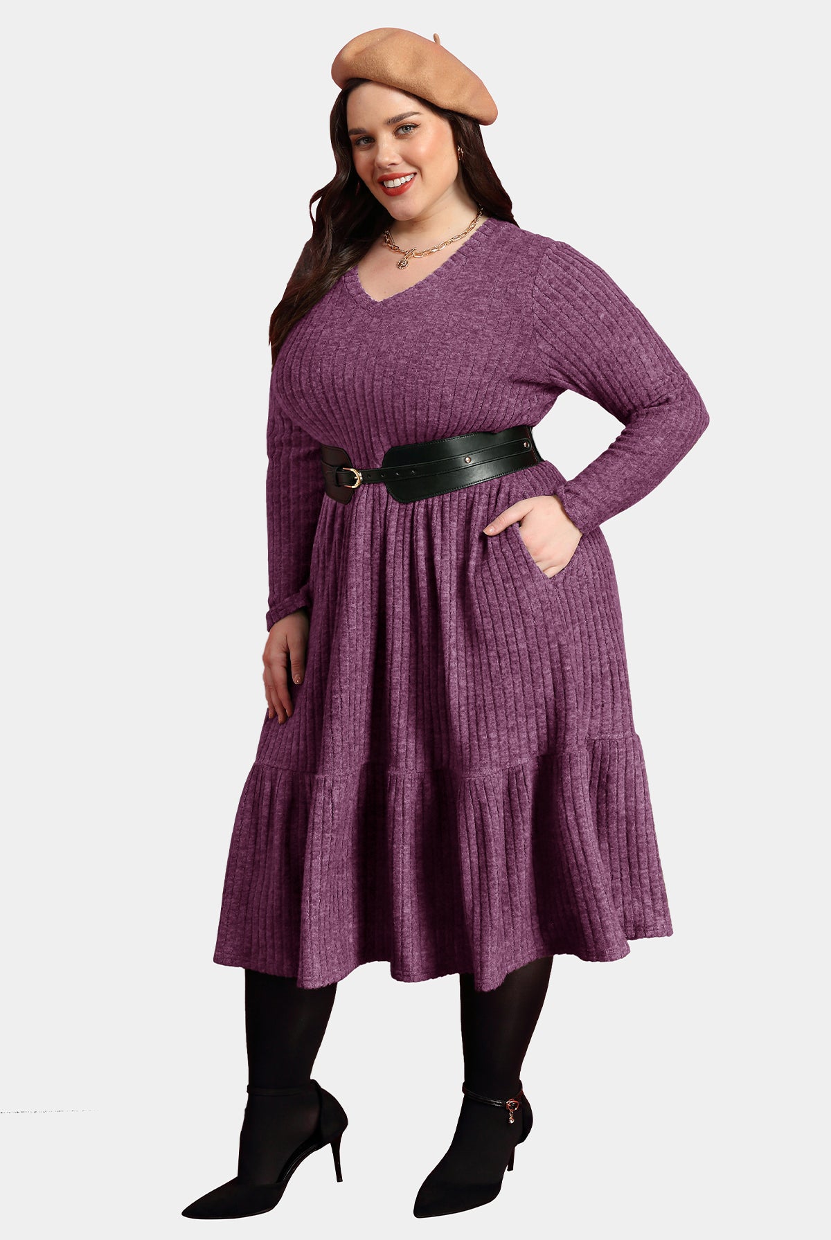 Ritera – Plissiertes Midikleid aus Rippstrick mit Rüschensaum und Taschen
