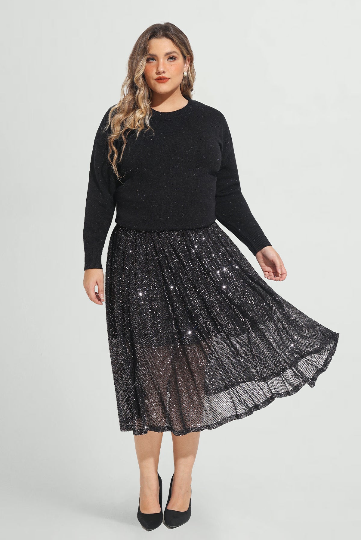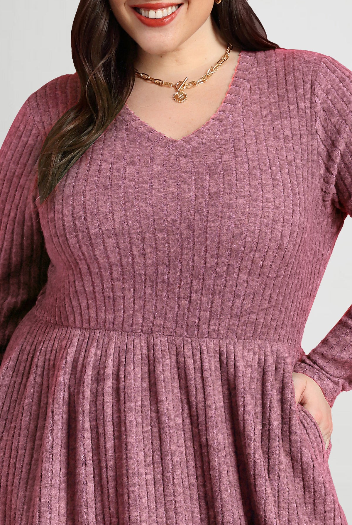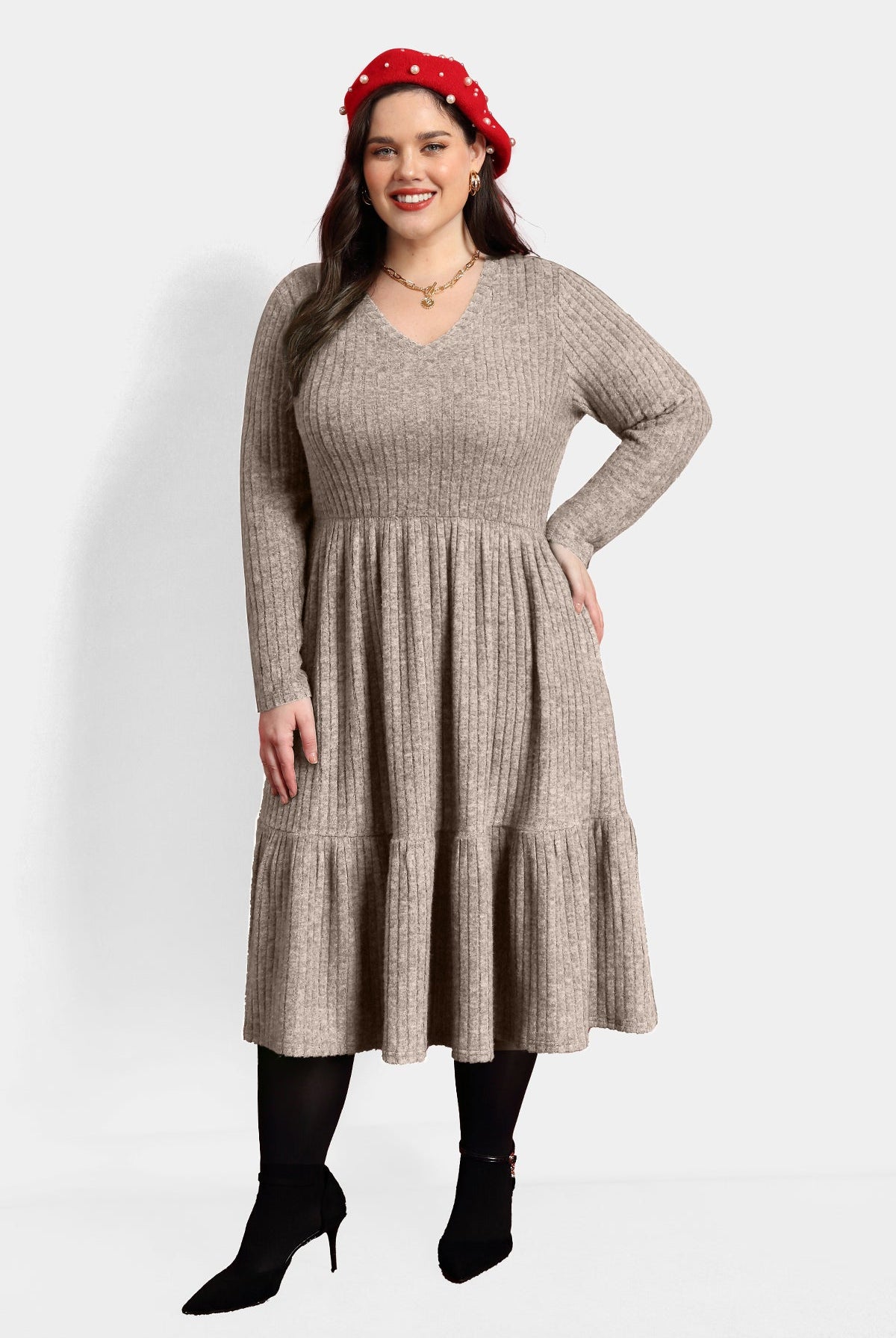 Ritera – Plissiertes Midikleid aus Rippstrick mit Rüschensaum und Taschen