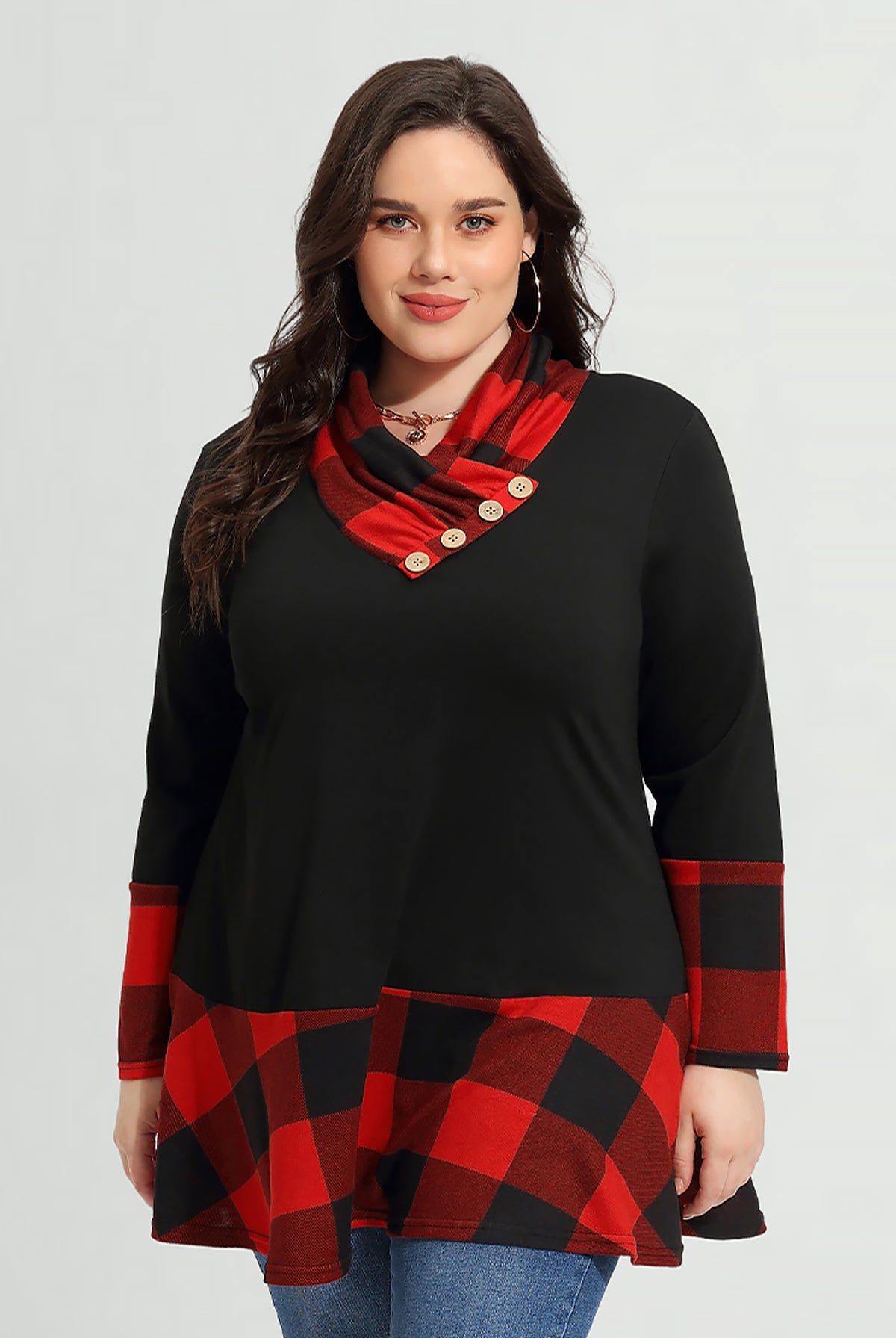 Tunika mit Wasserfallausschnitt, geschlitztem Saum und langen Ärmeln