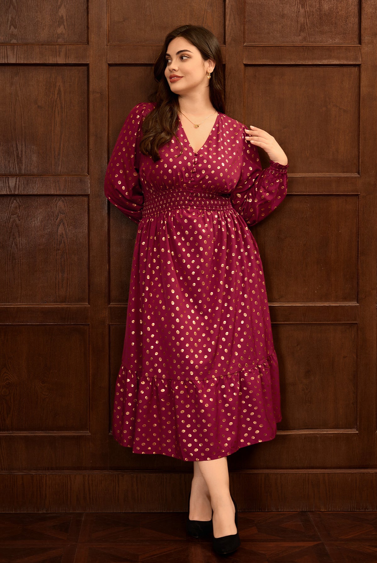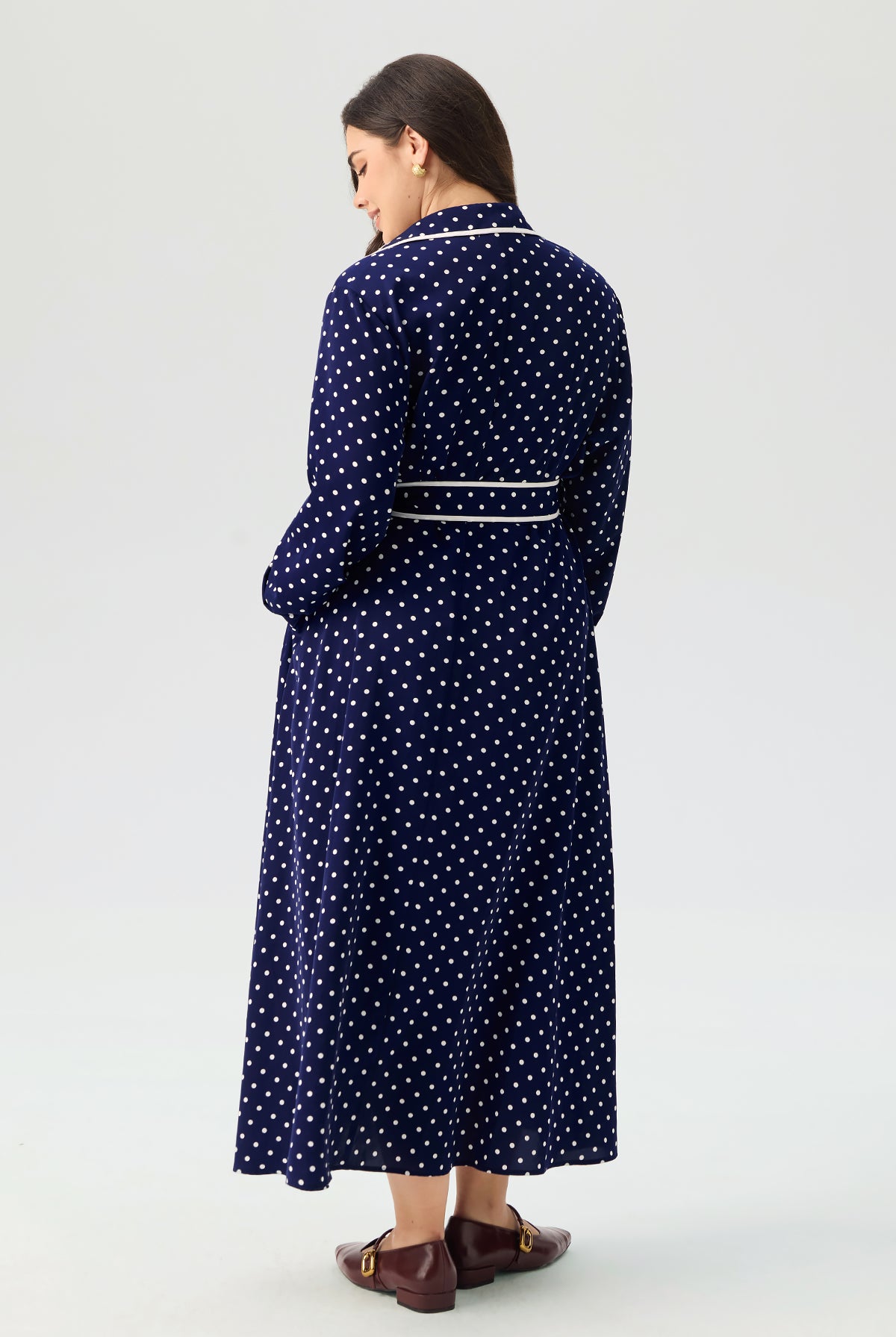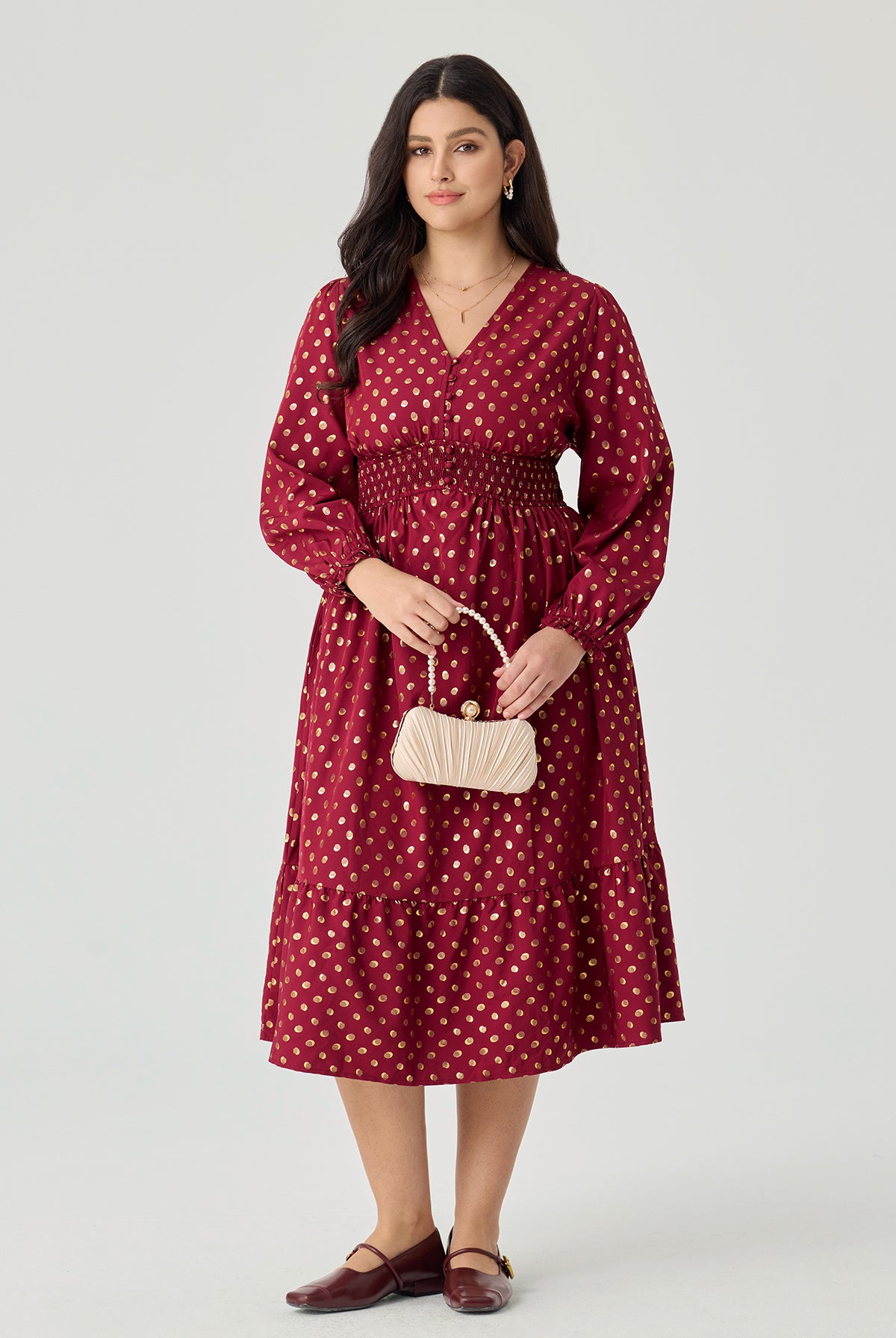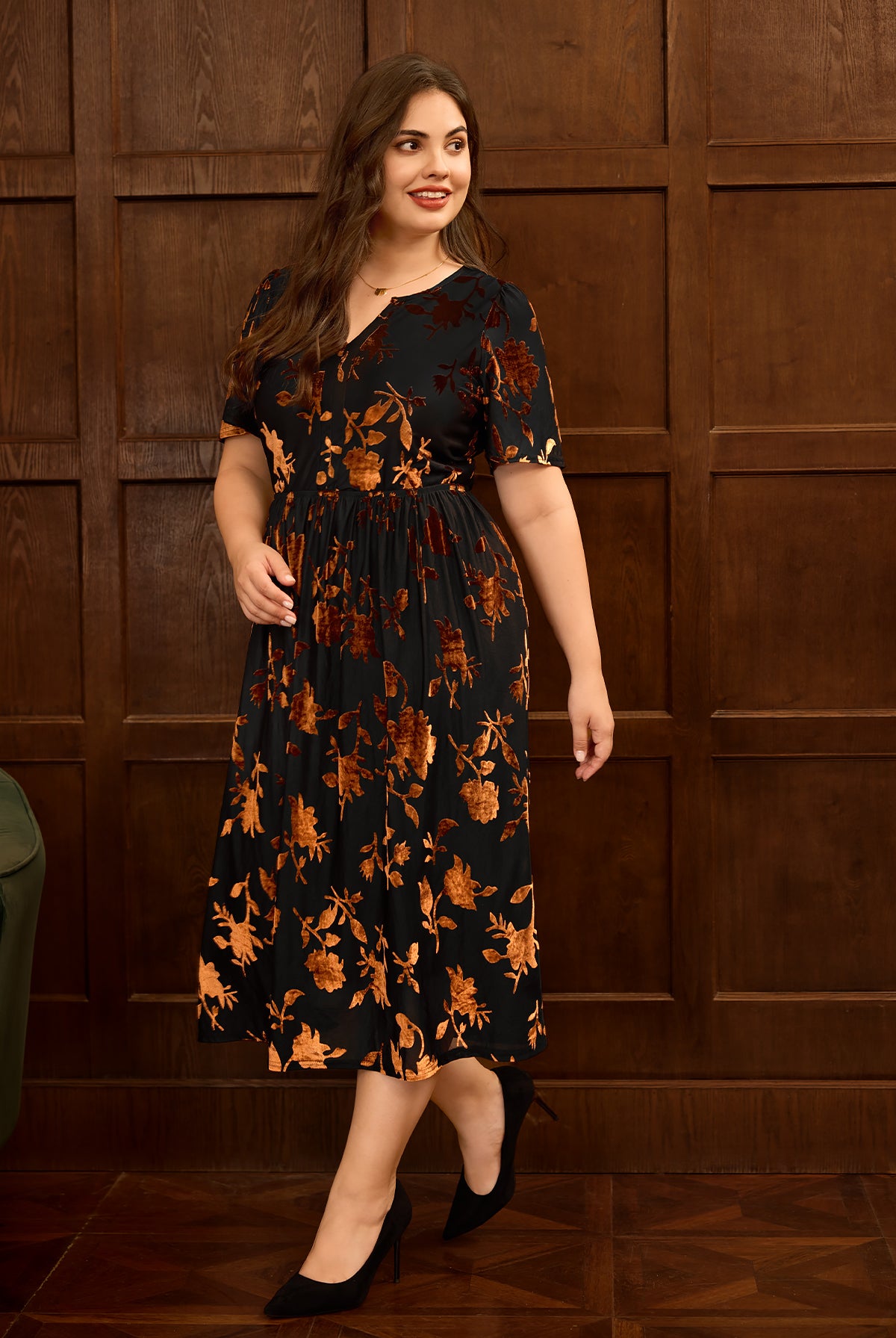 Ritera – Gerafftes Midikleid mit Knopfleiste, Blumenmuster und Polokragen