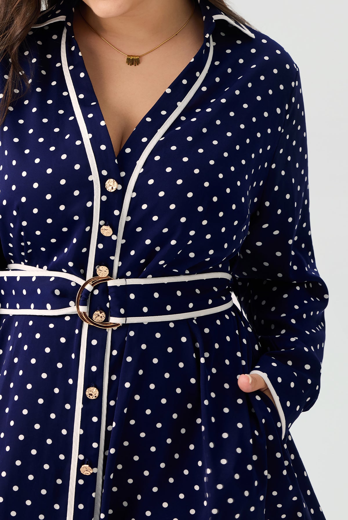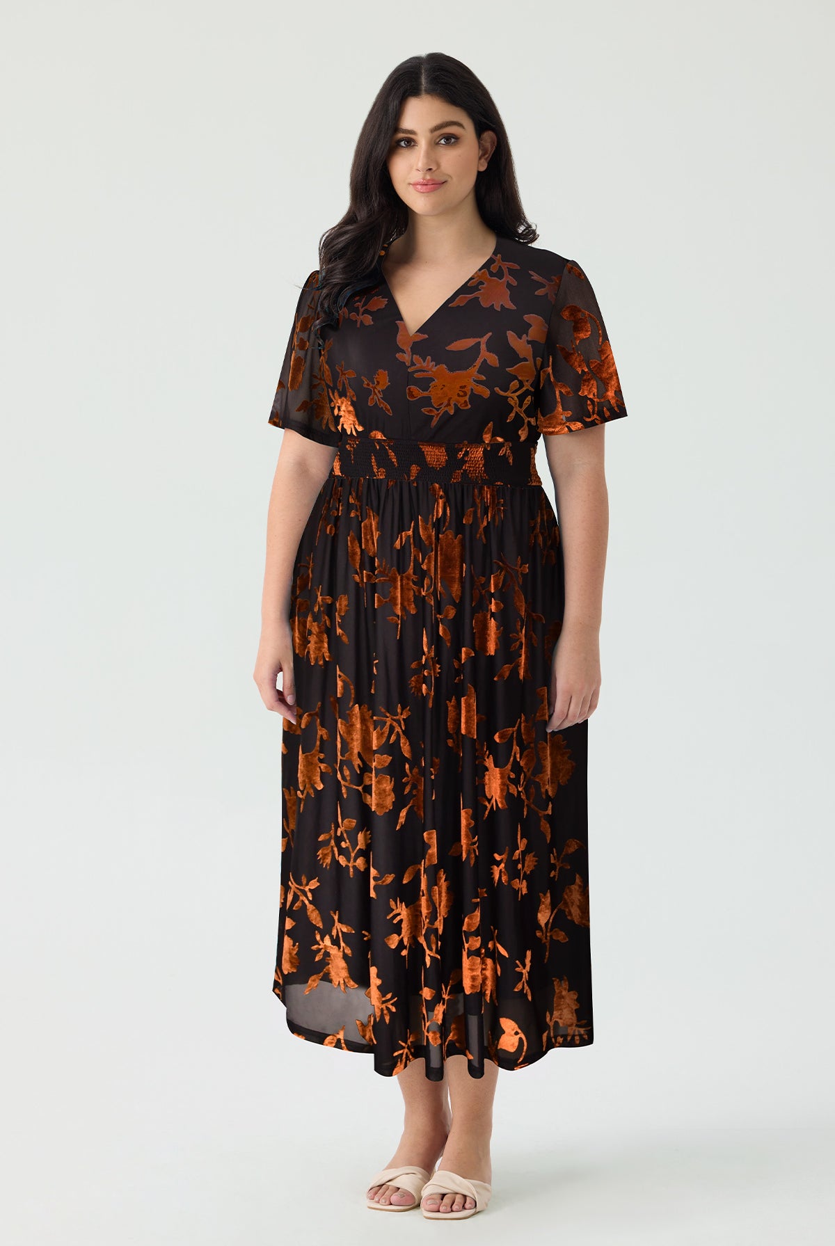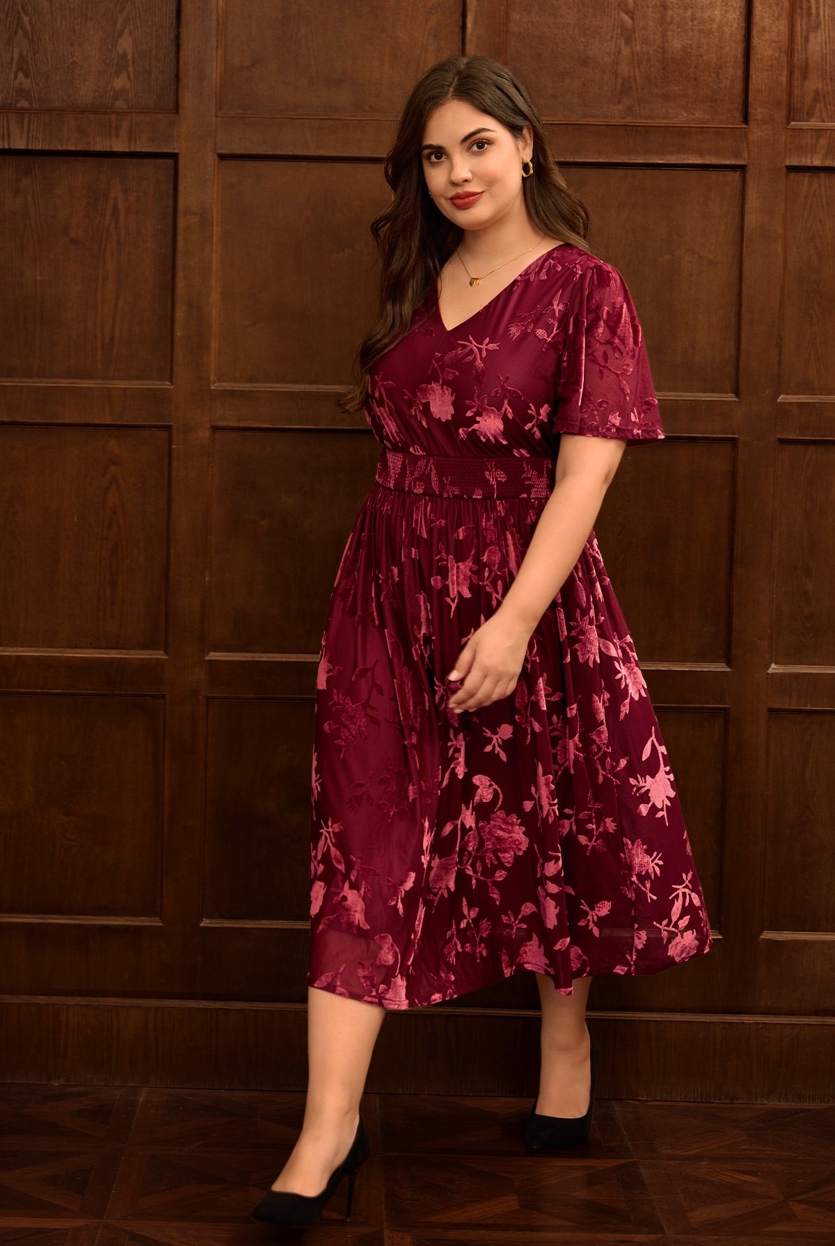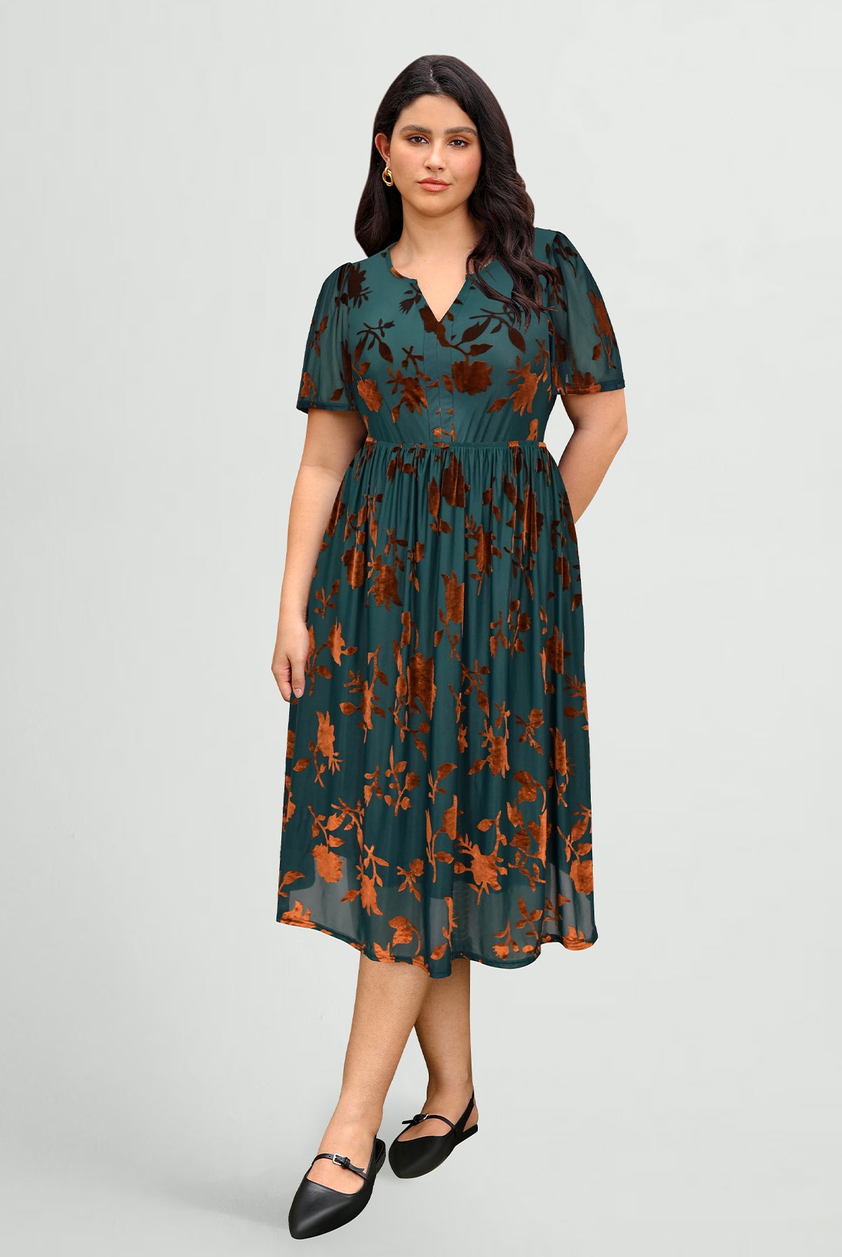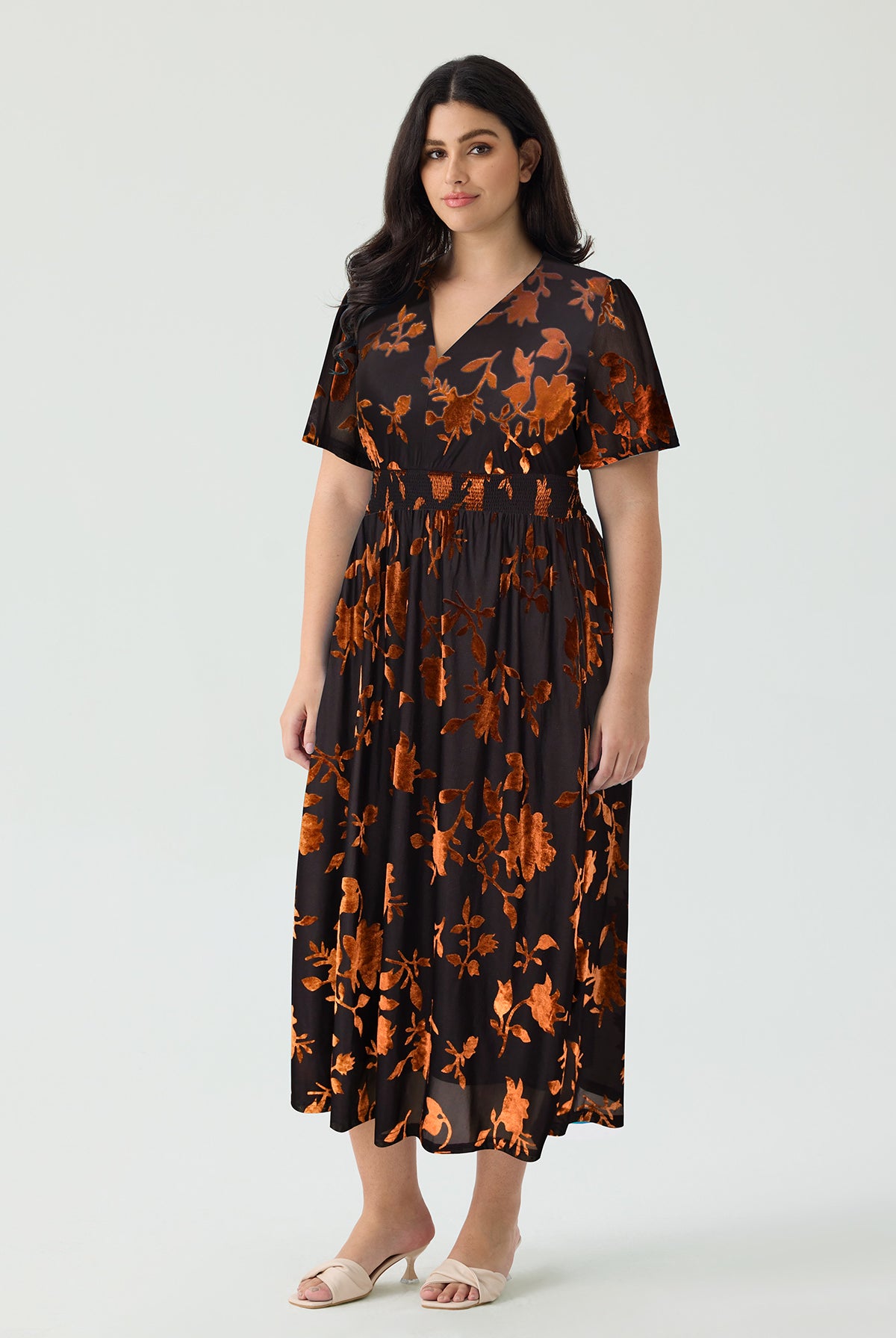 Ritera – Gerafftes Midikleid mit Knopfleiste, Blumenmuster und Polokragen