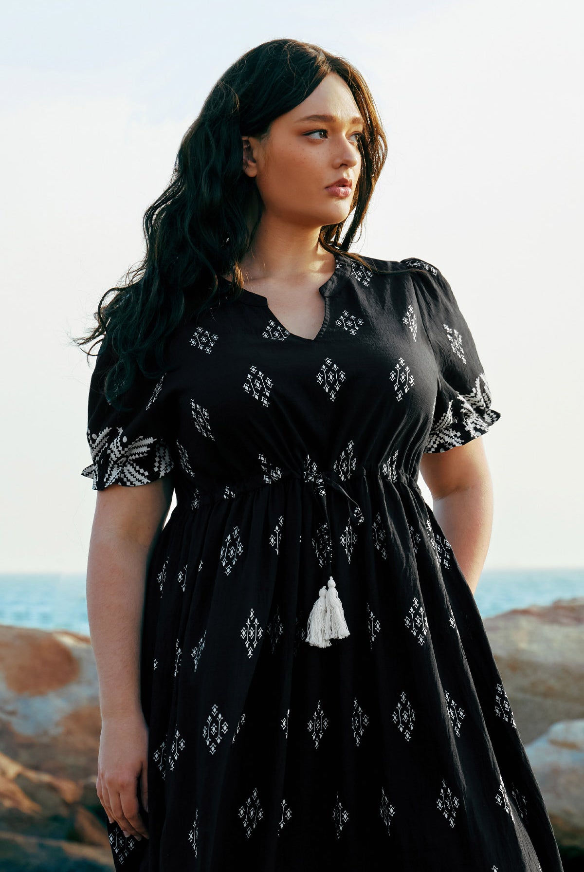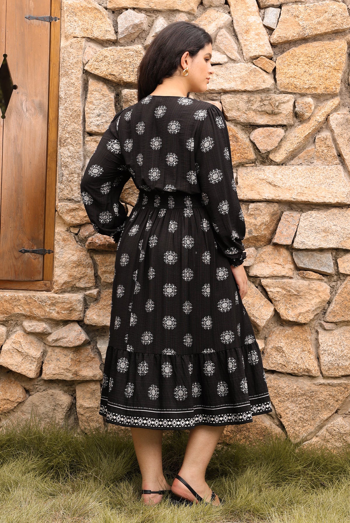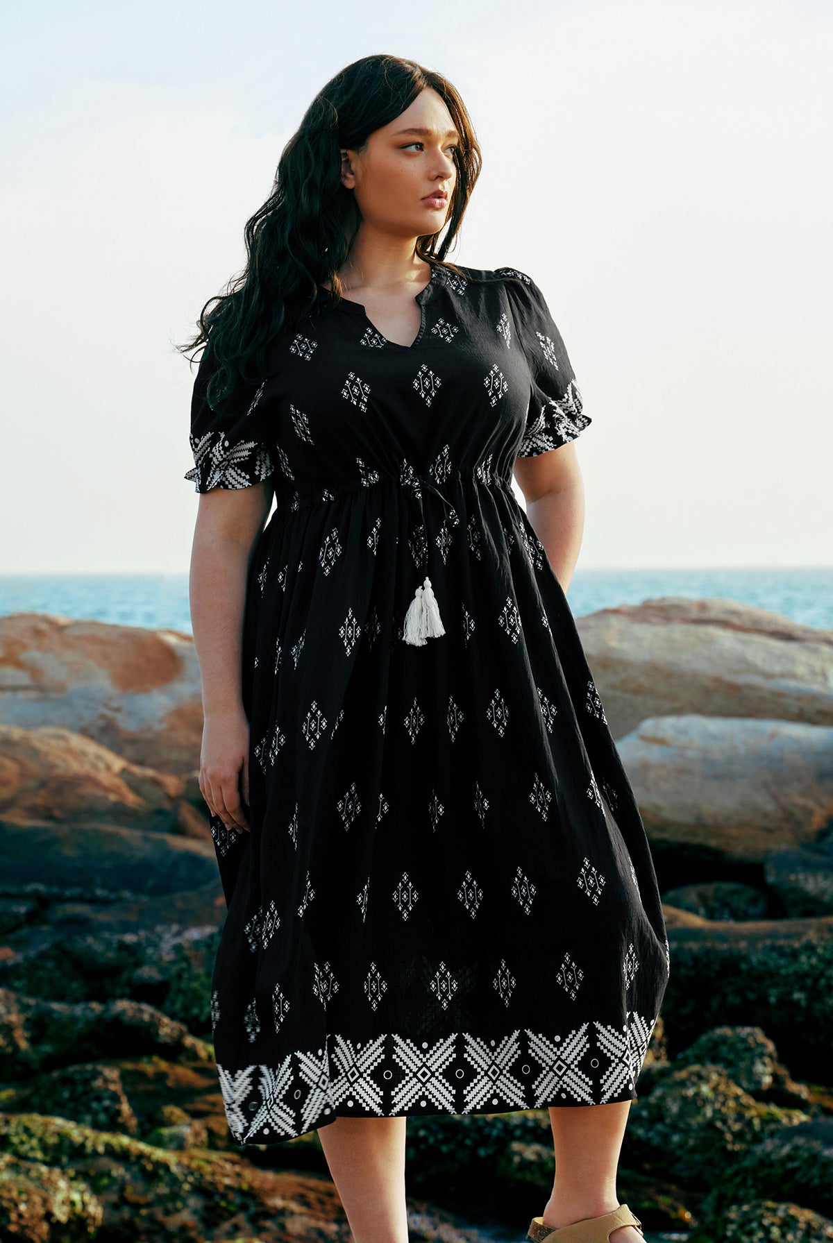 Ritera – Boho-Midikleid in A-Linie mit Kordelzug und Quasten an der Taille