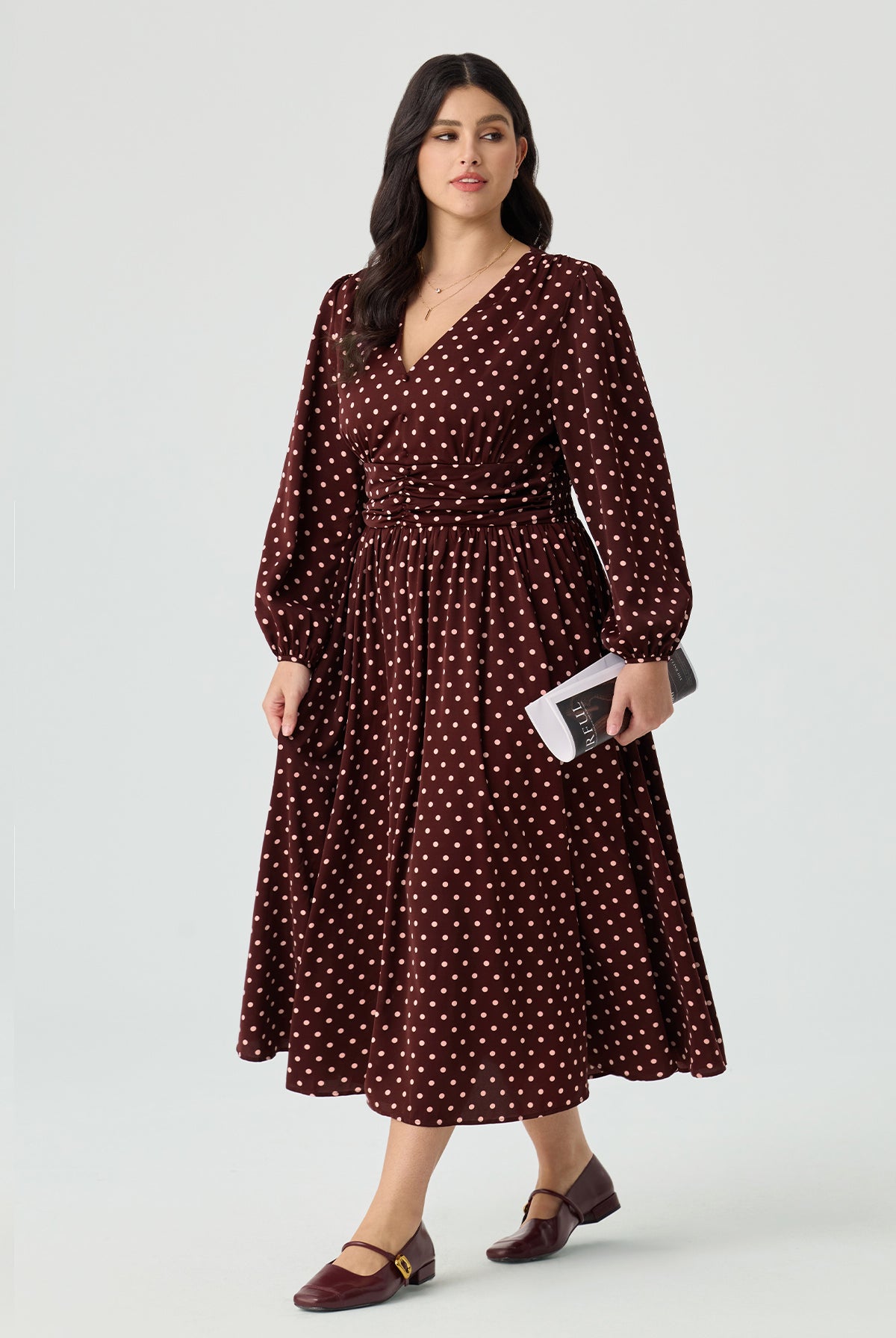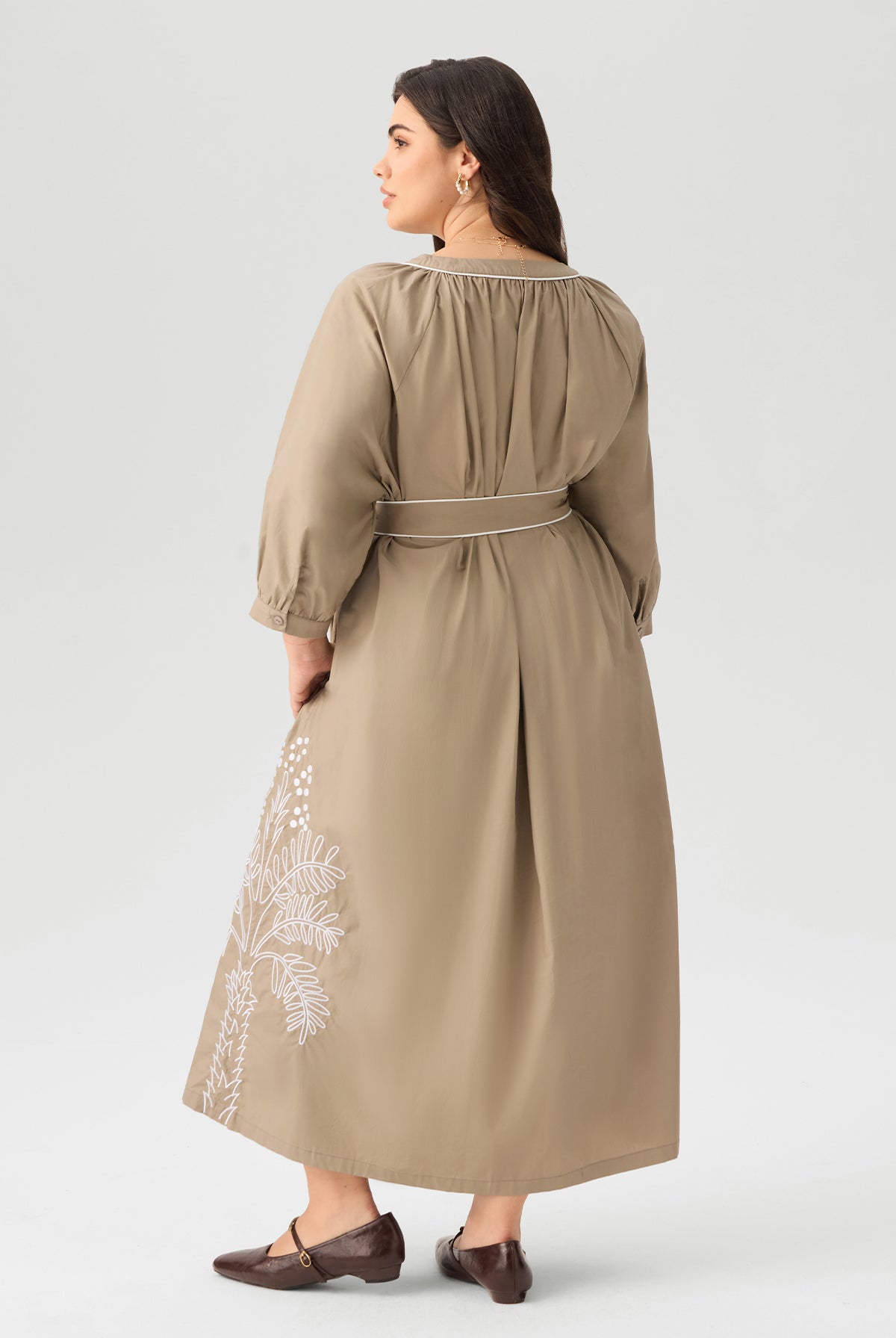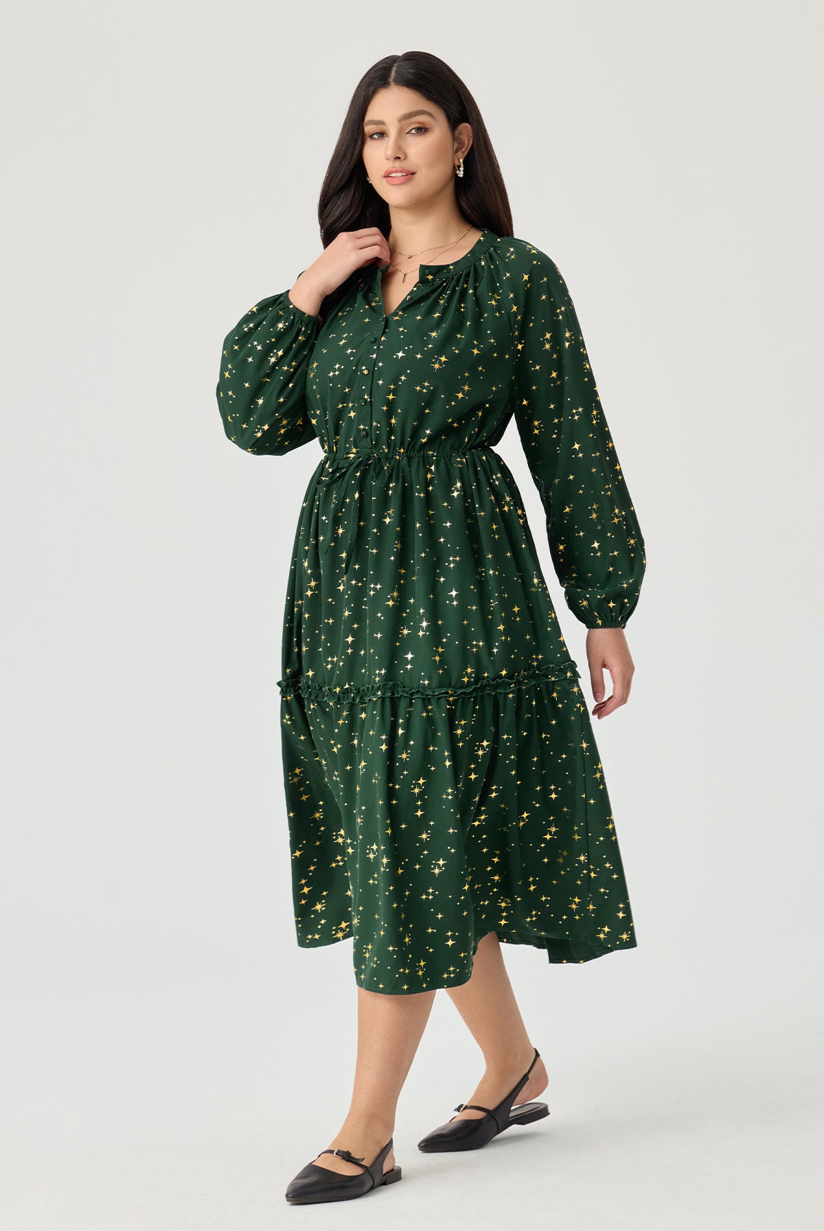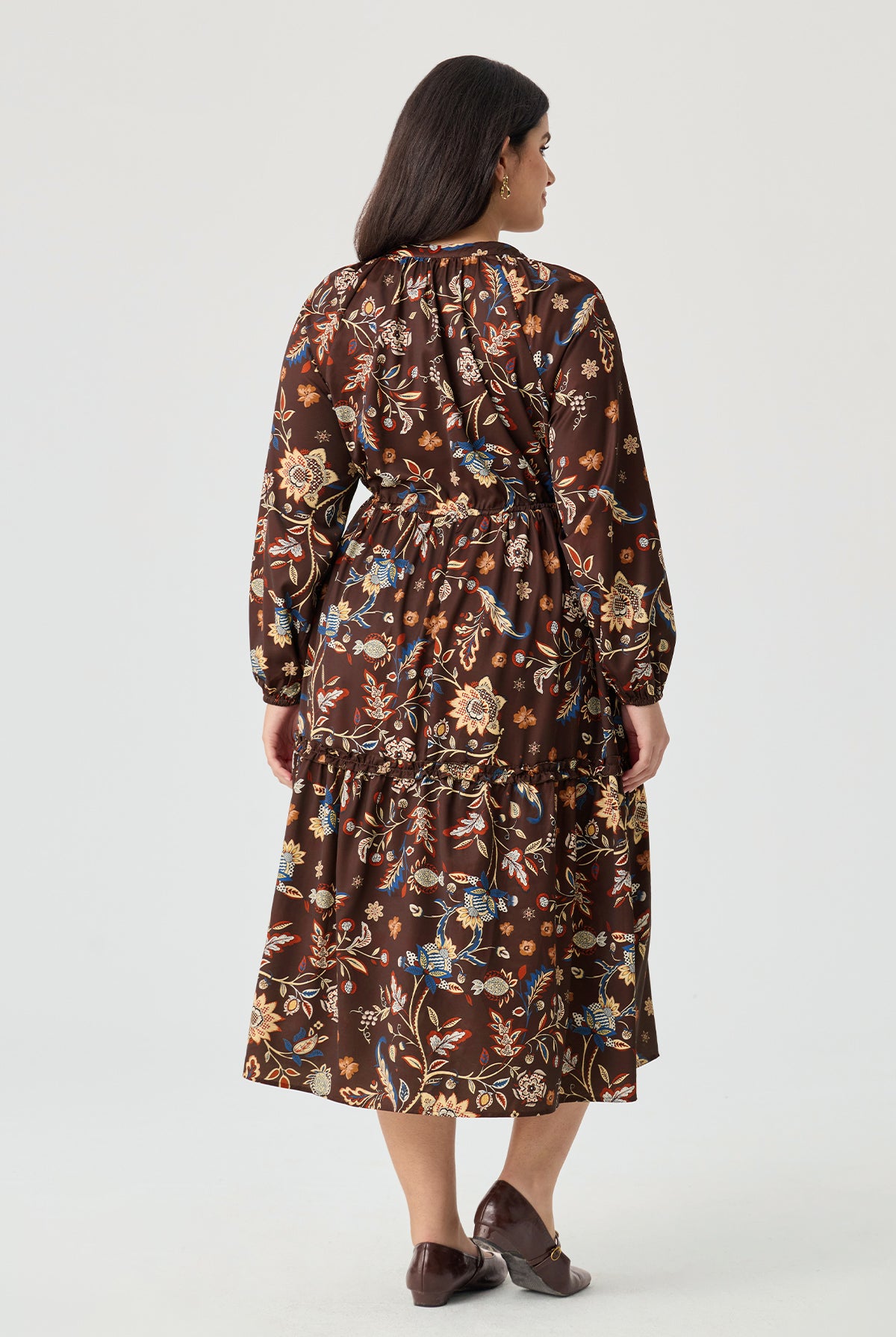 Ritera – Gerafftes Midikleid mit Knopfleiste, Blumenmuster und Polokragen