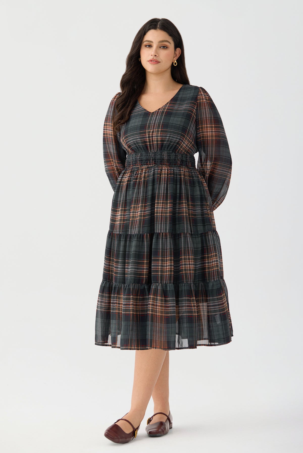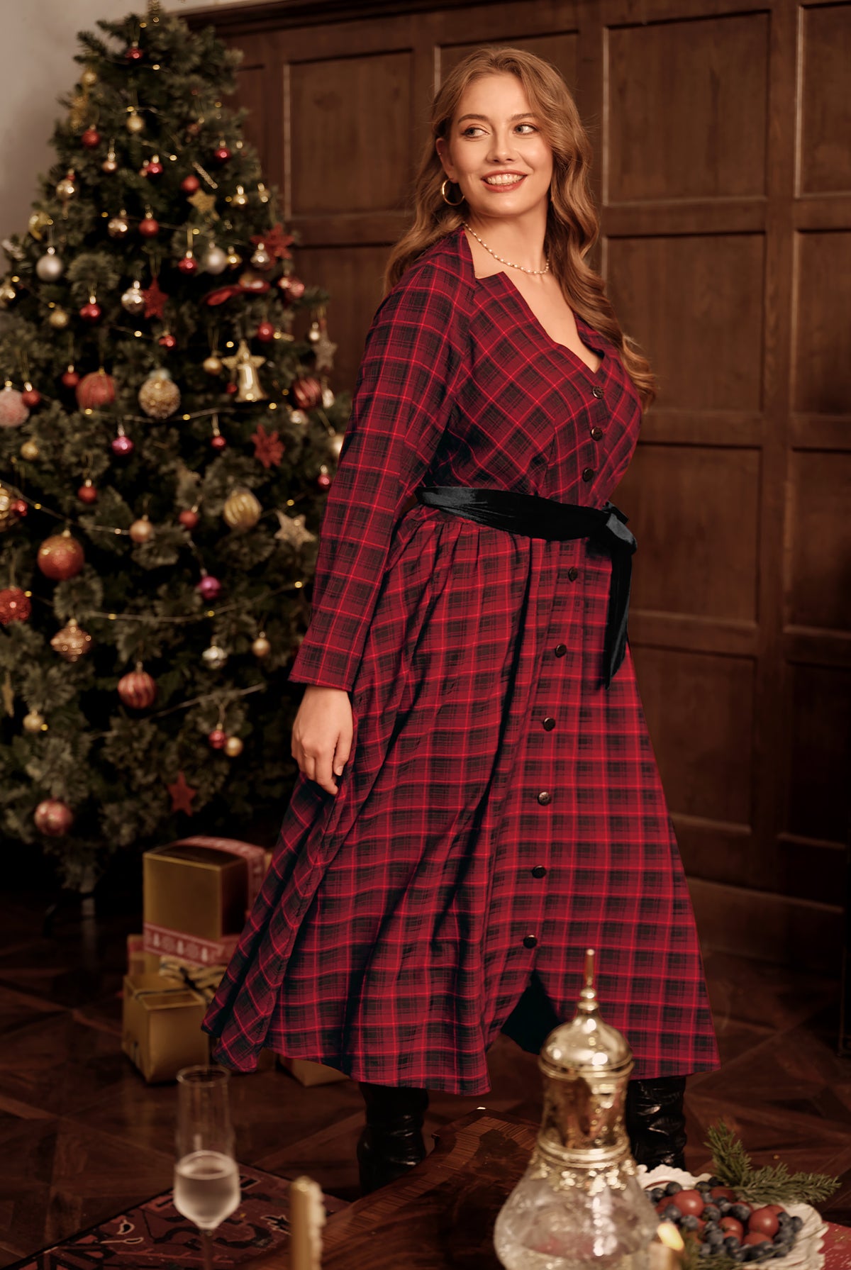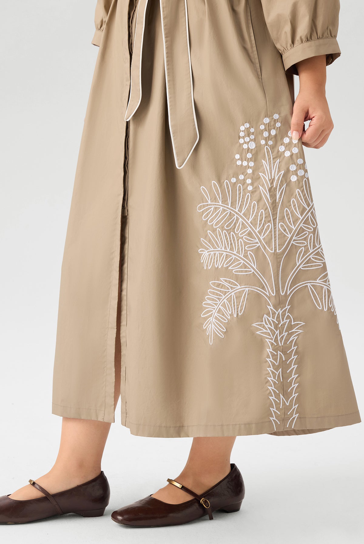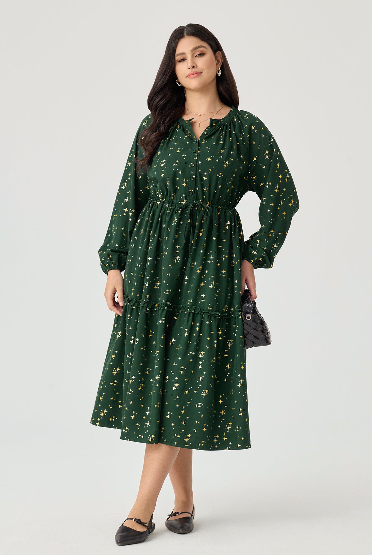Ritera – Gerafftes Midikleid mit Knopfleiste, Blumenmuster und Polokragen
