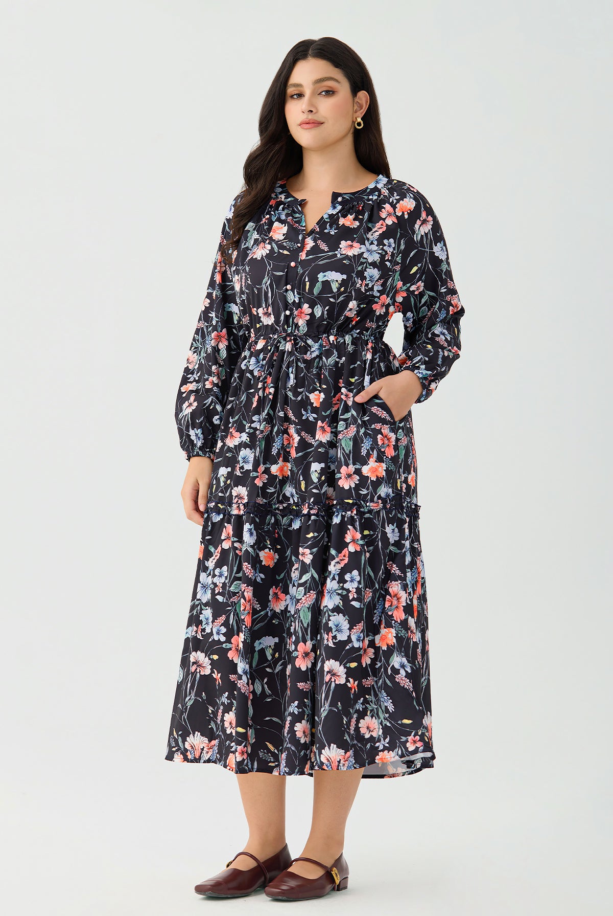 Ritera – A-Linien-Maxikleid mit Blumenmuster und Taschen, elastischer Taille