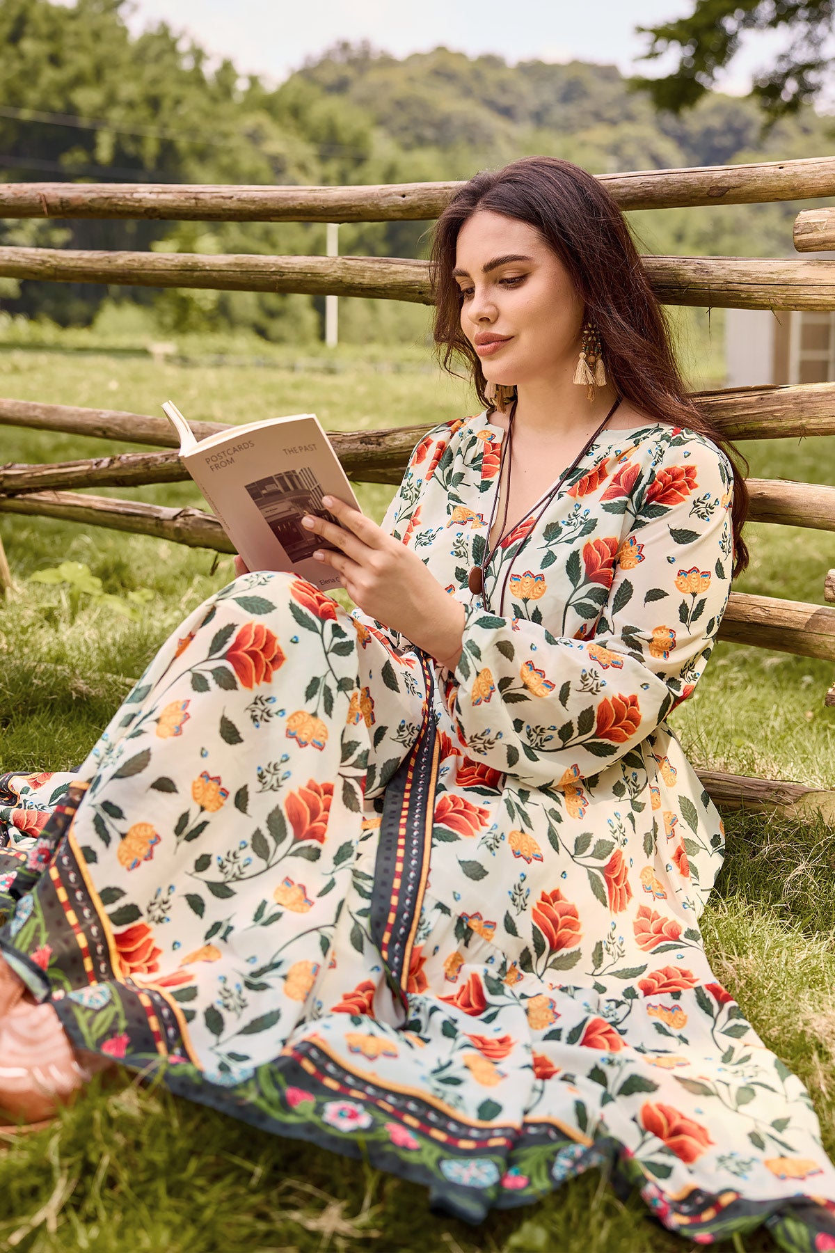 Ritera Pockets Floral Print Beach Summer Vibes Midi Dress
