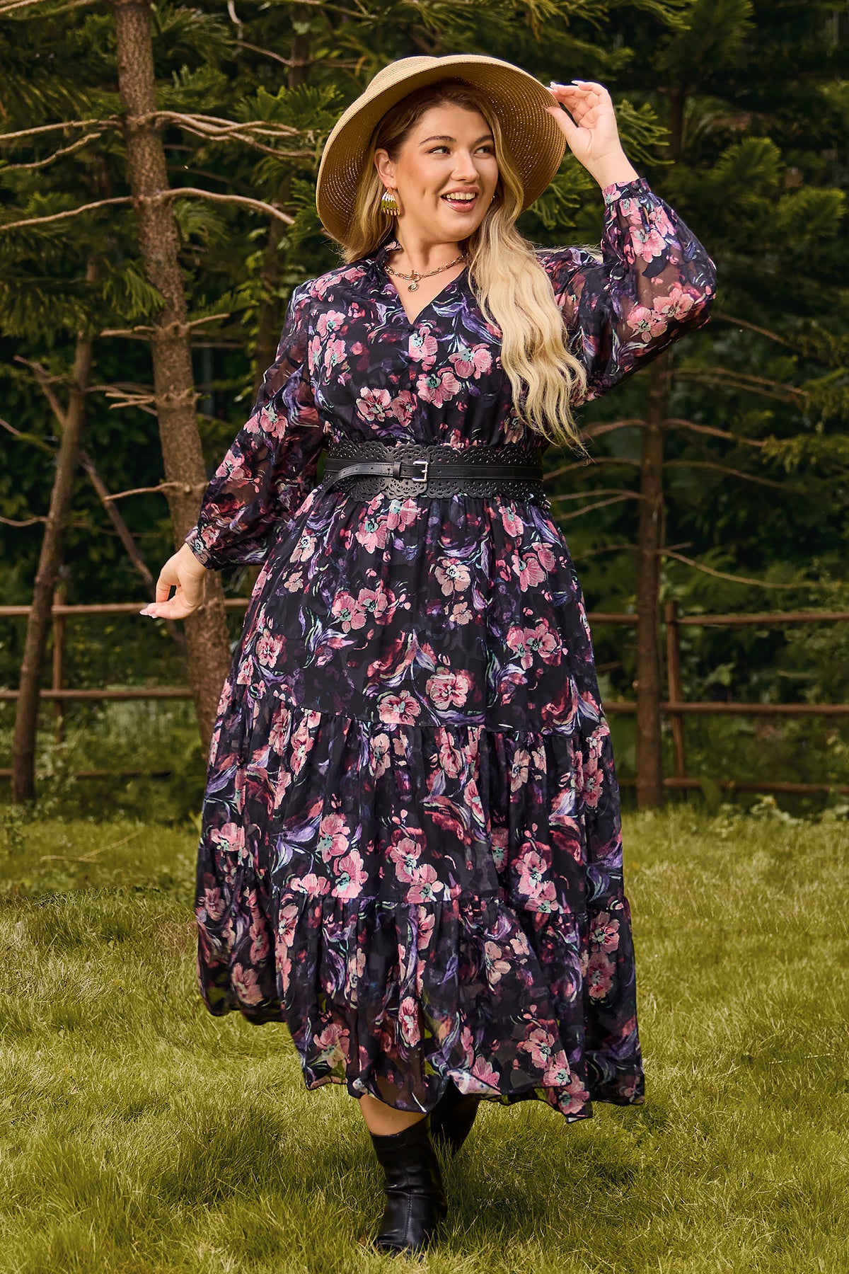 Floral Print Shirt Collar Long Sleeve Maxi Dress