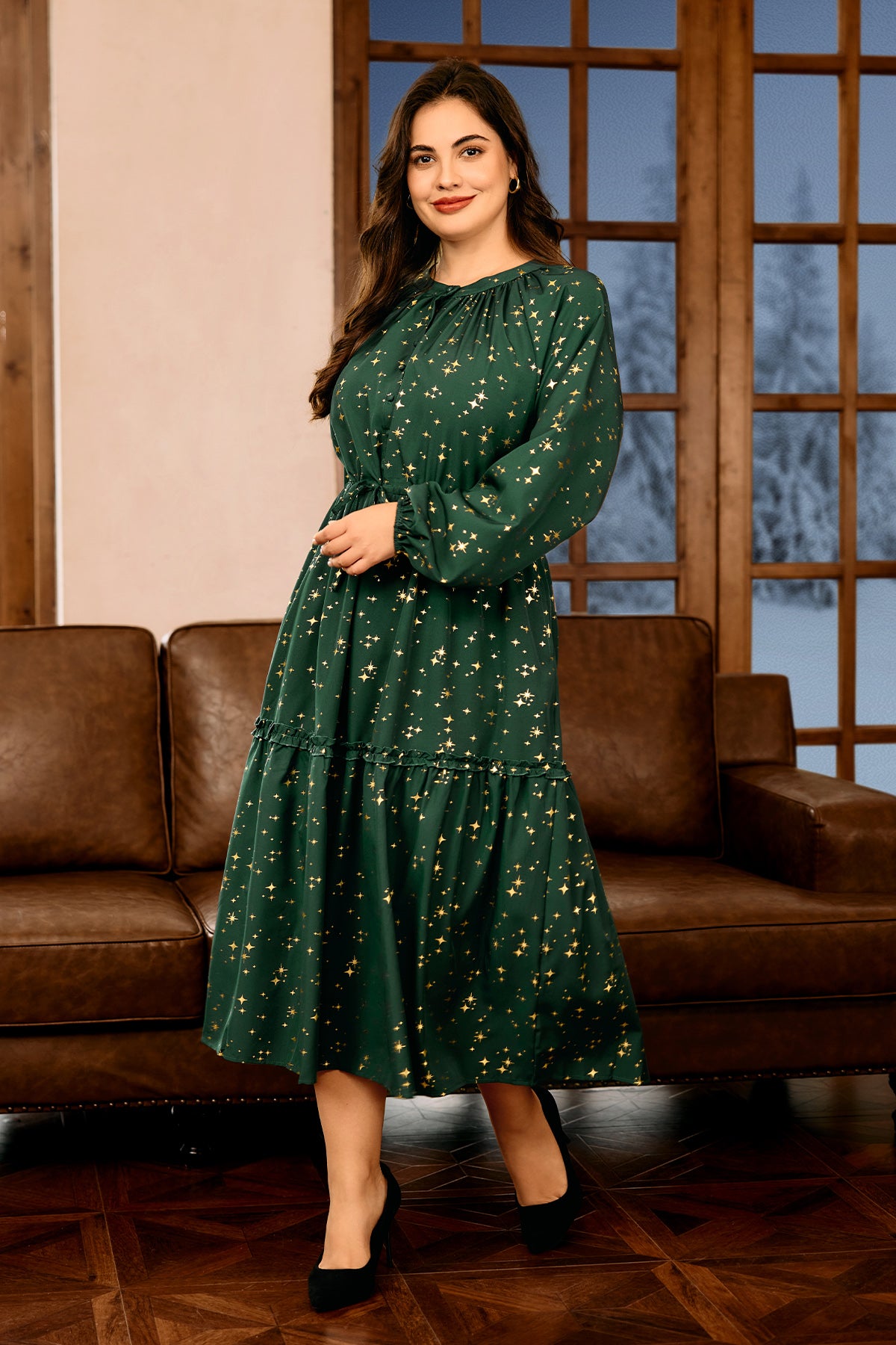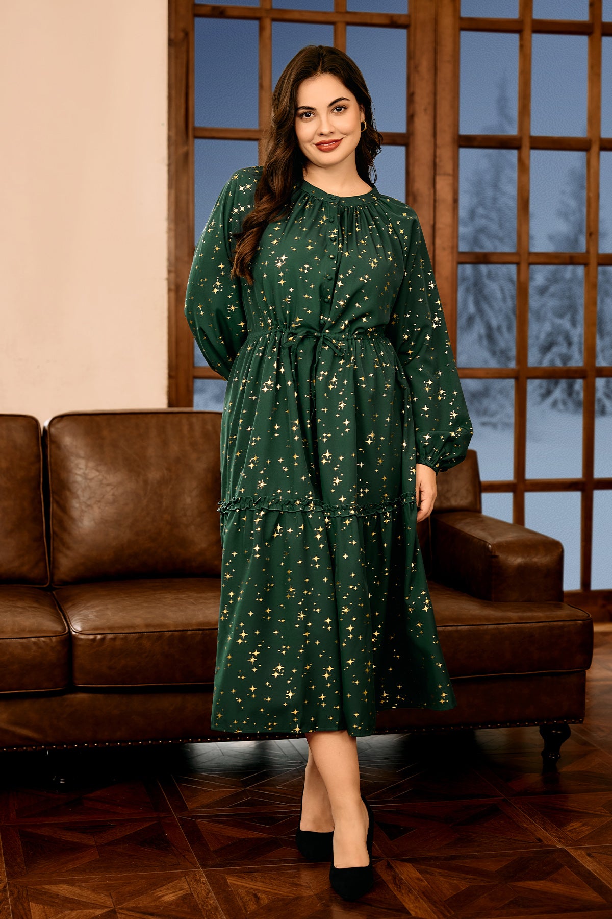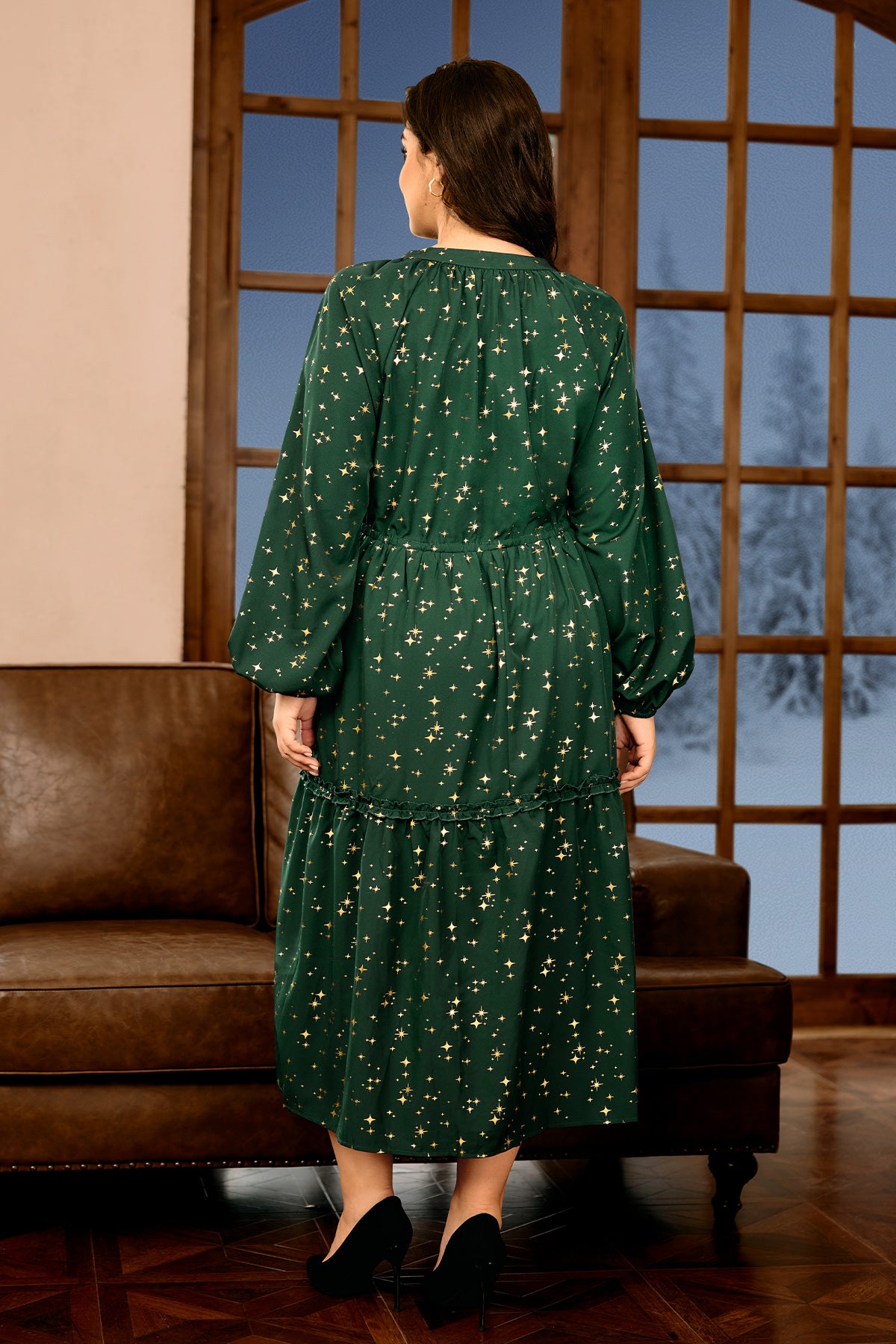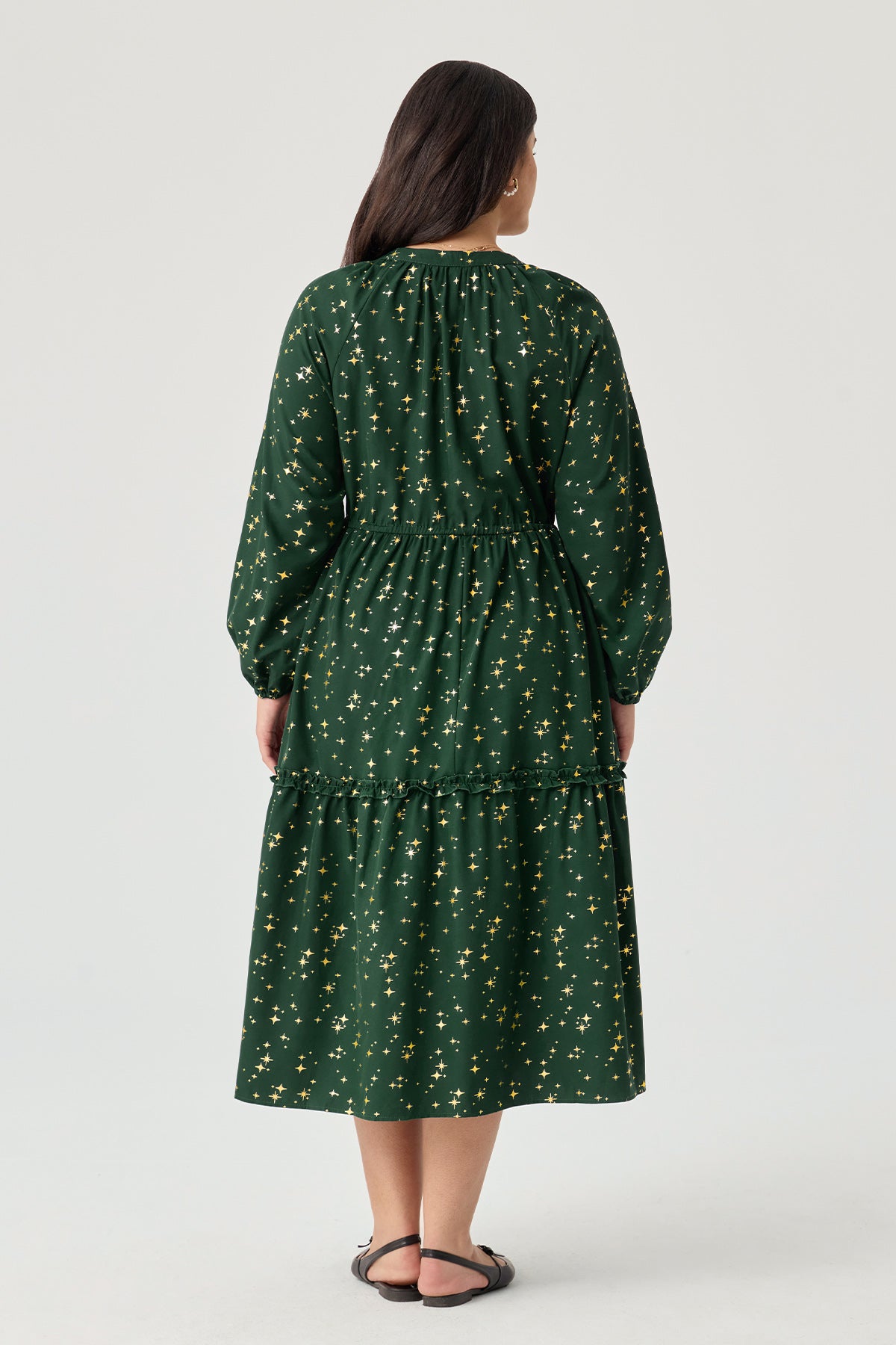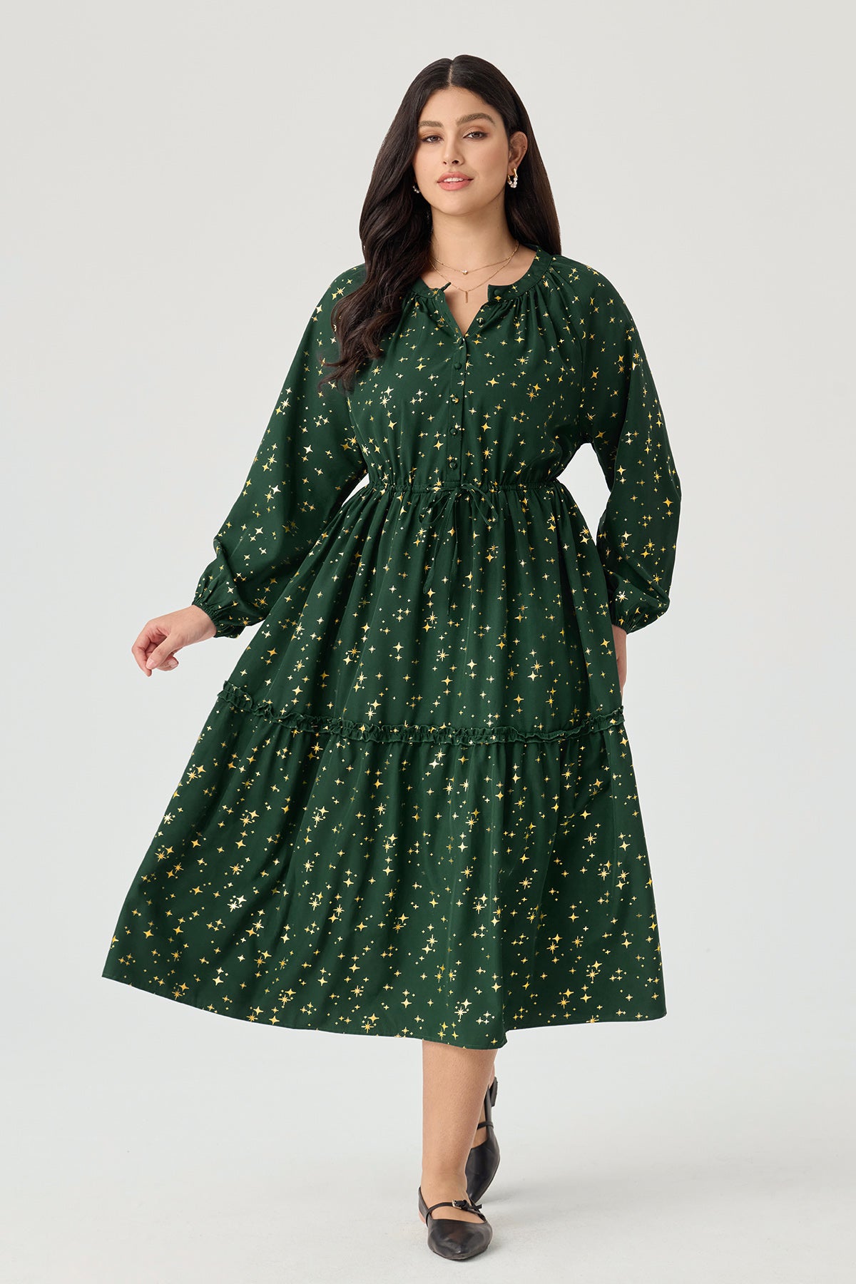 Star Floral Print Drawstring Waist Tiered Midi Dress