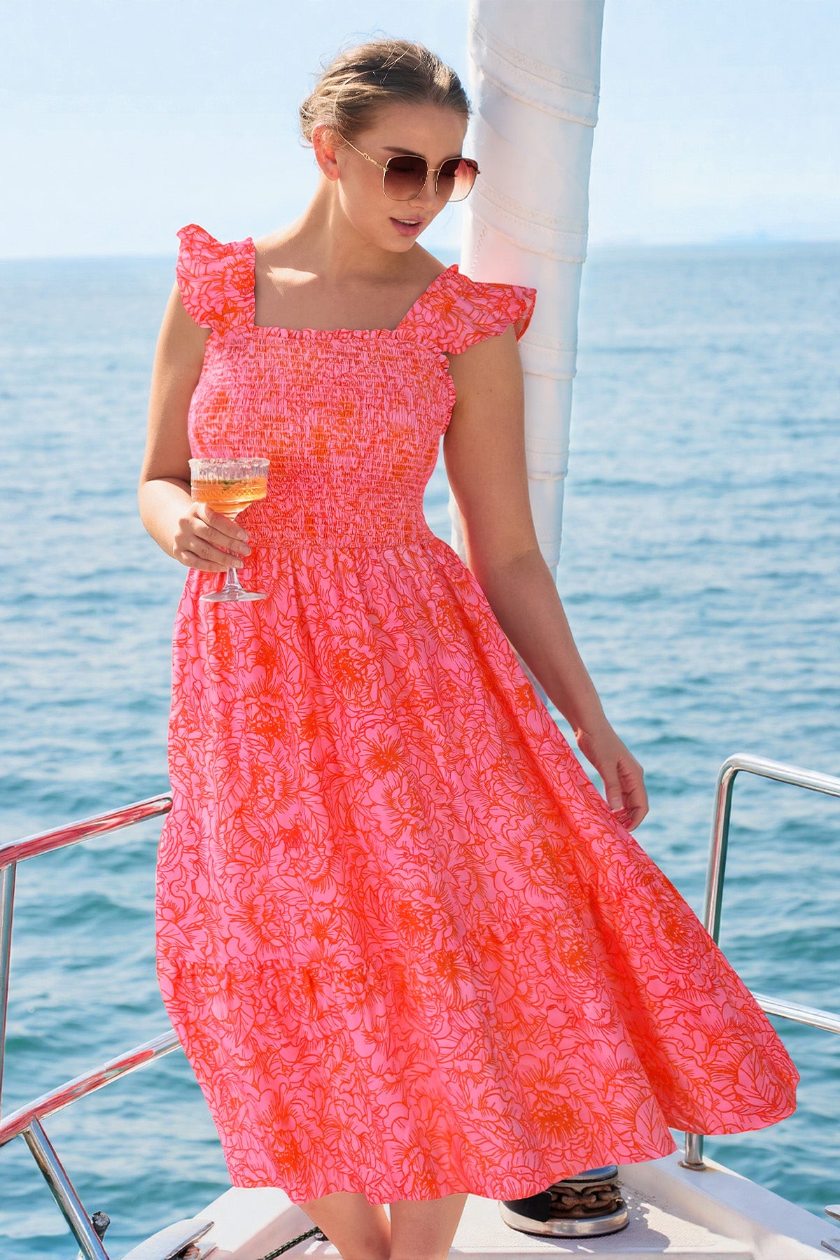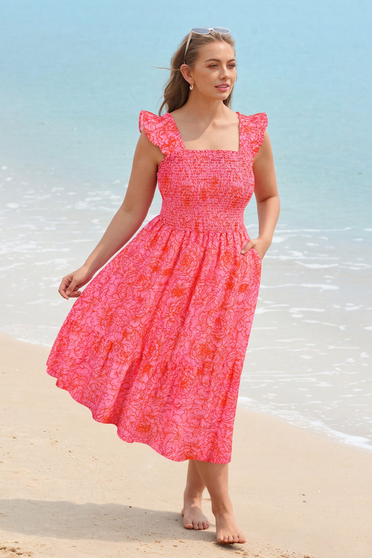 Ritera Pockets Floral Print Beach Summer Vibes Midi Dress