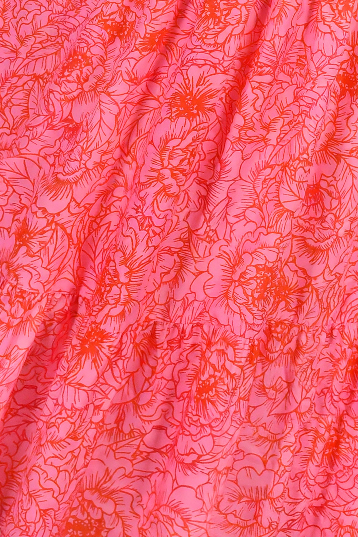 Floral Ruffled Short Sleeve Tiered Midi Dress