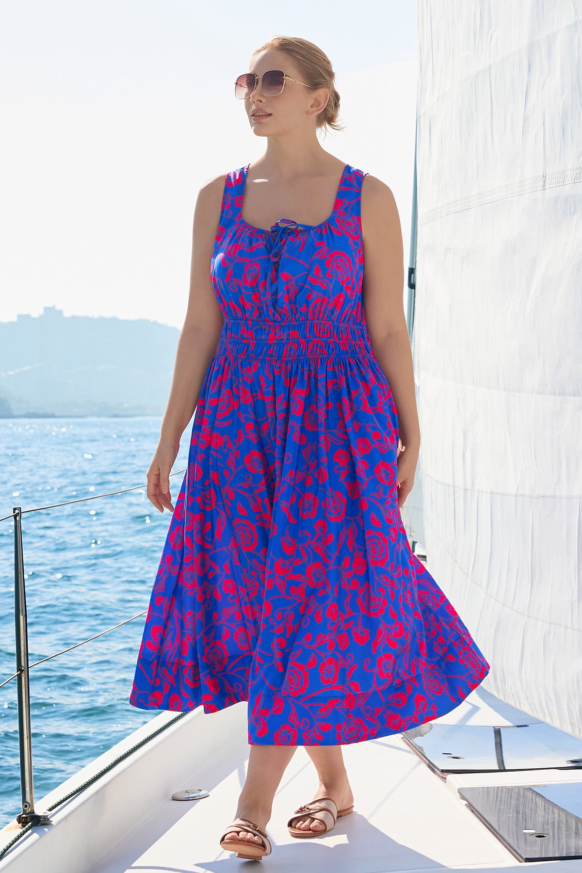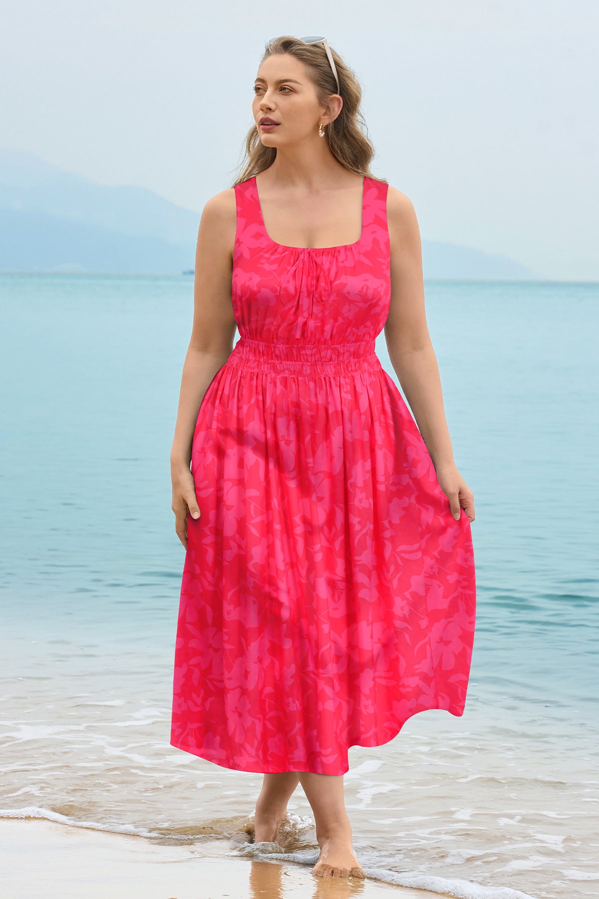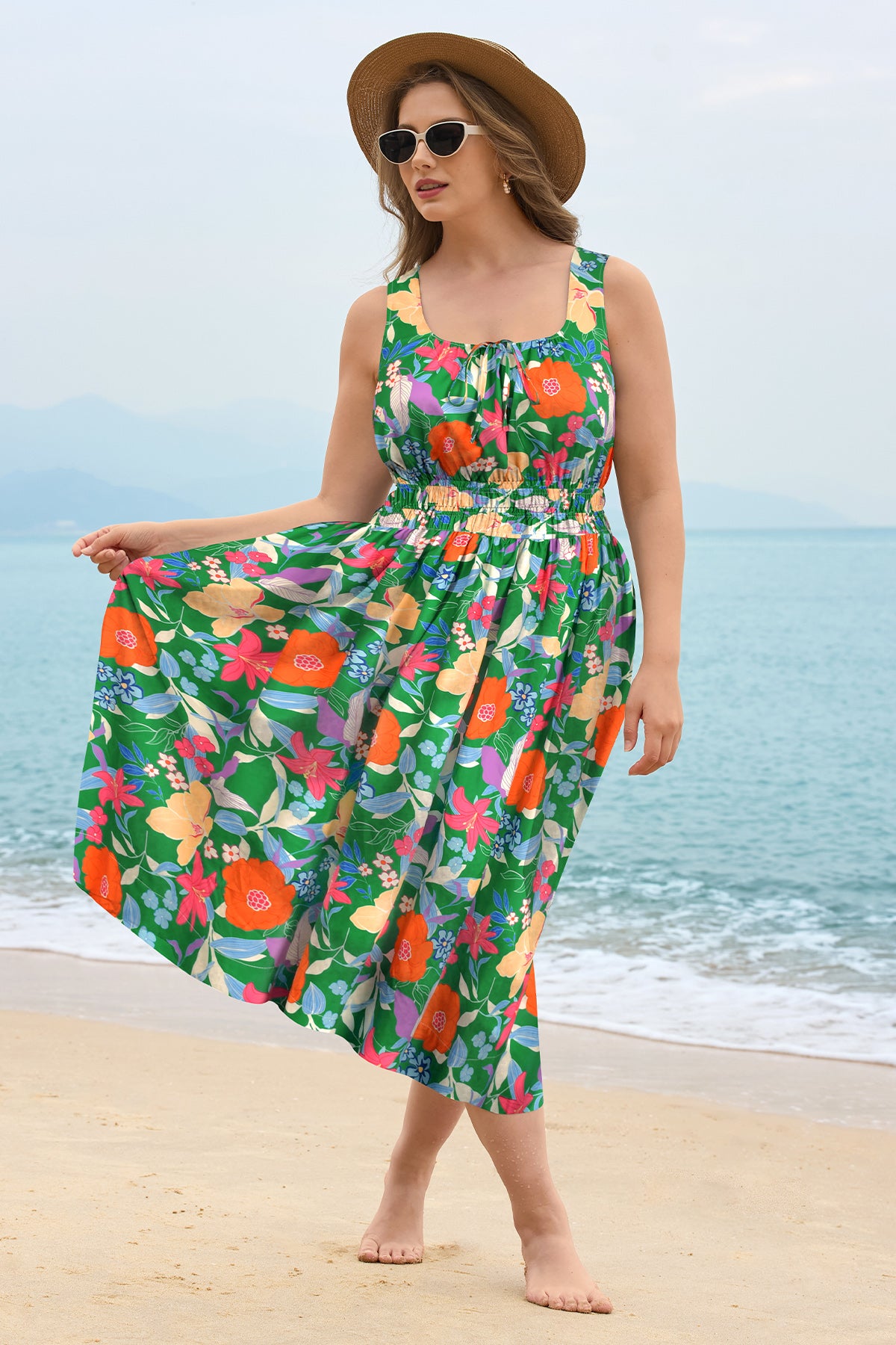 Ritera Pockets Floral Print Beach Summer Vibes Midi Dress