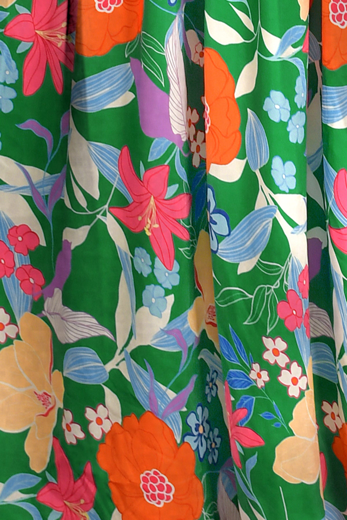Ritera – Gerafftes Midikleid mit tropischem Blumenmuster und Polokragen