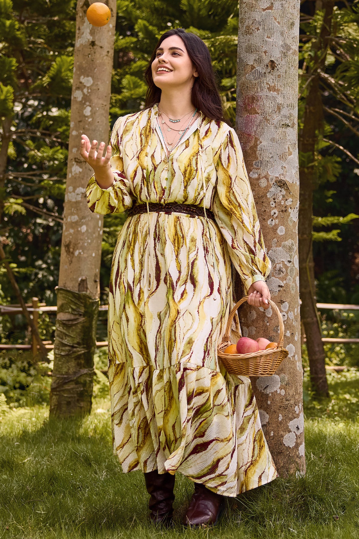 Abstract Stripes Tie V-Neck Tiered A-line Willowy Dress