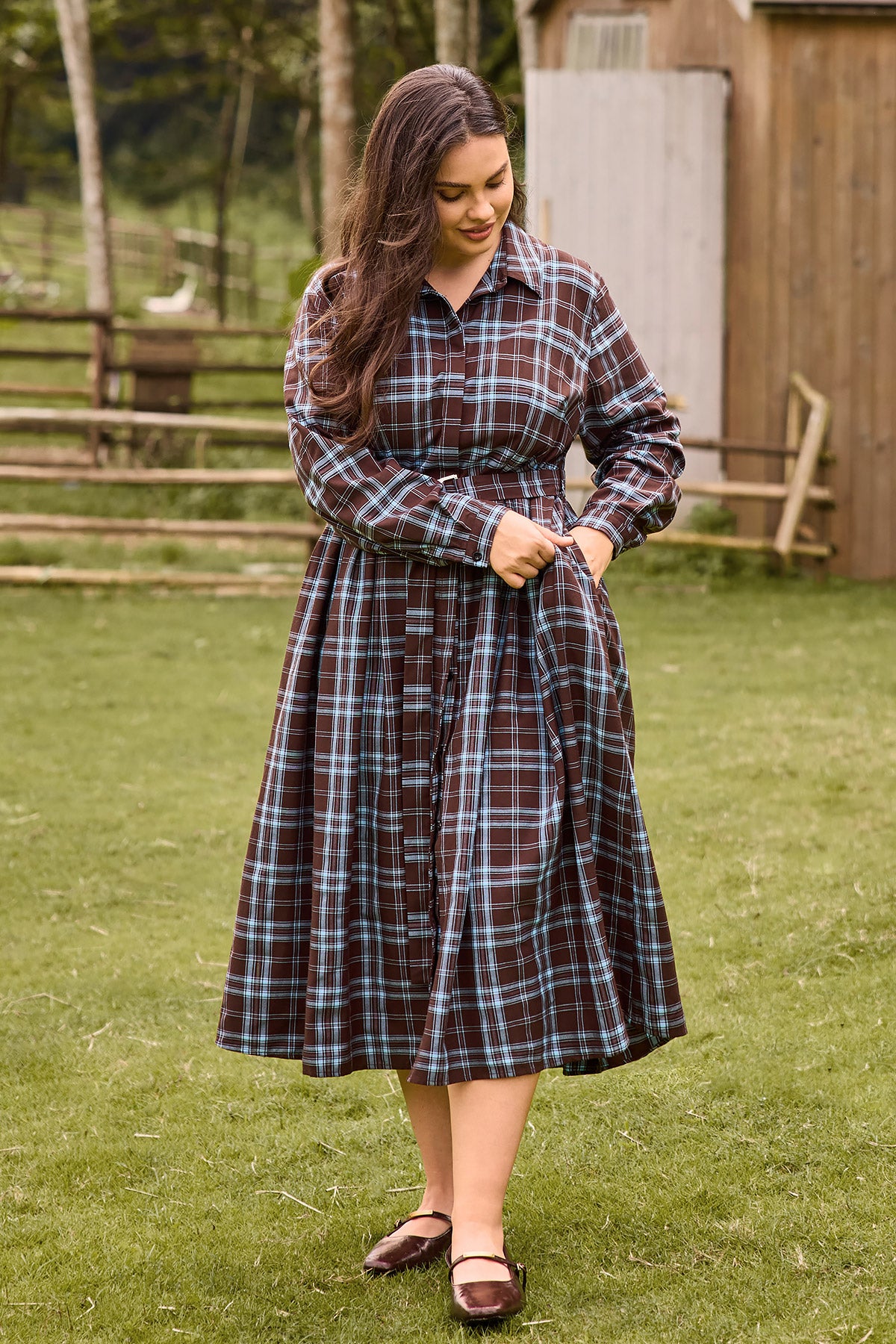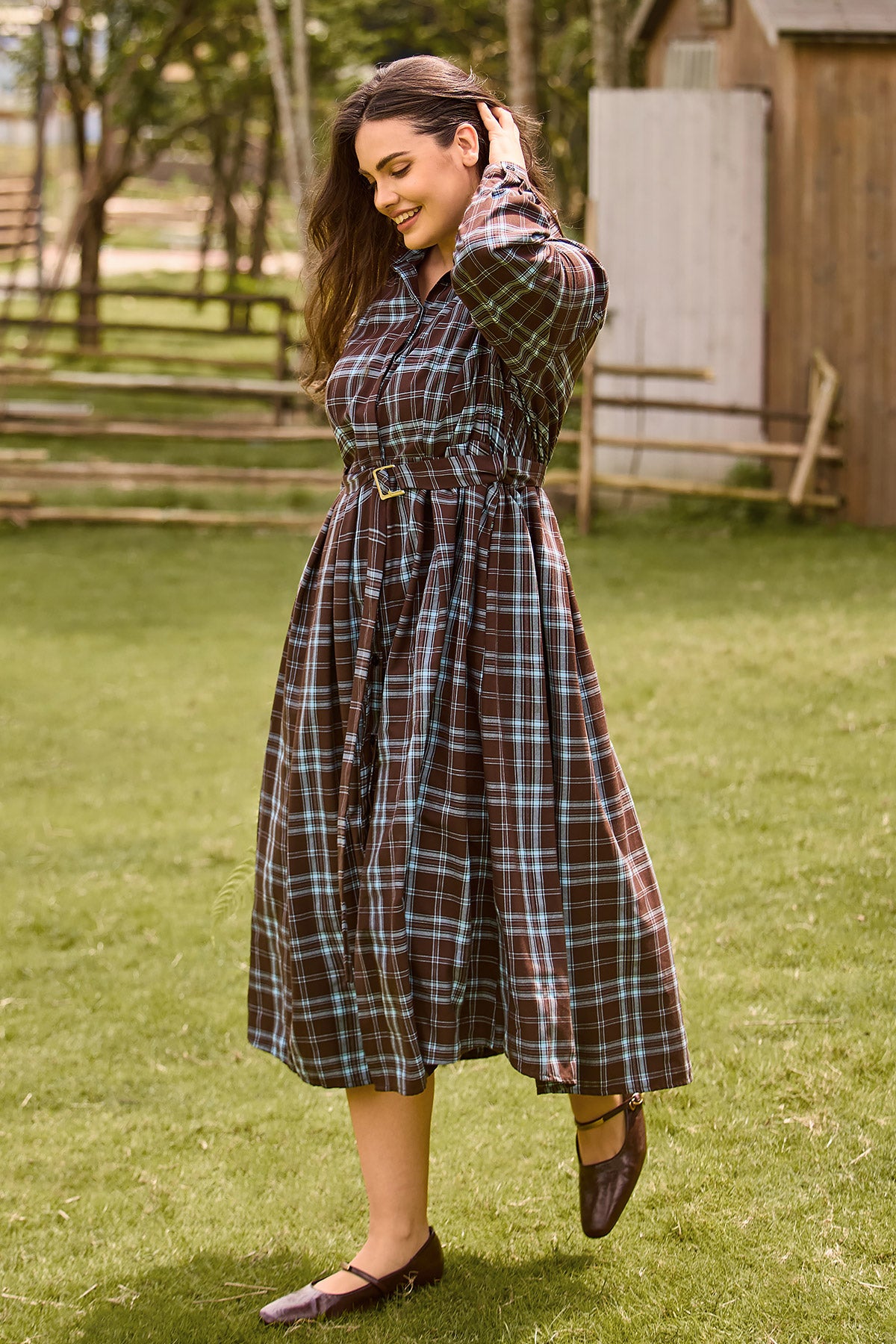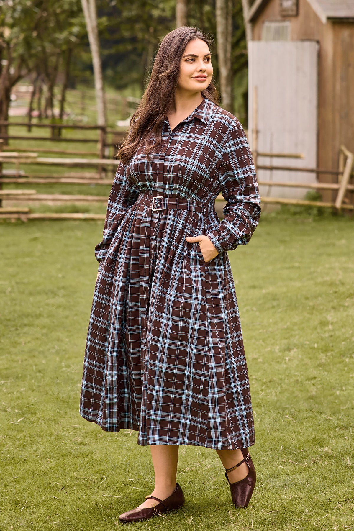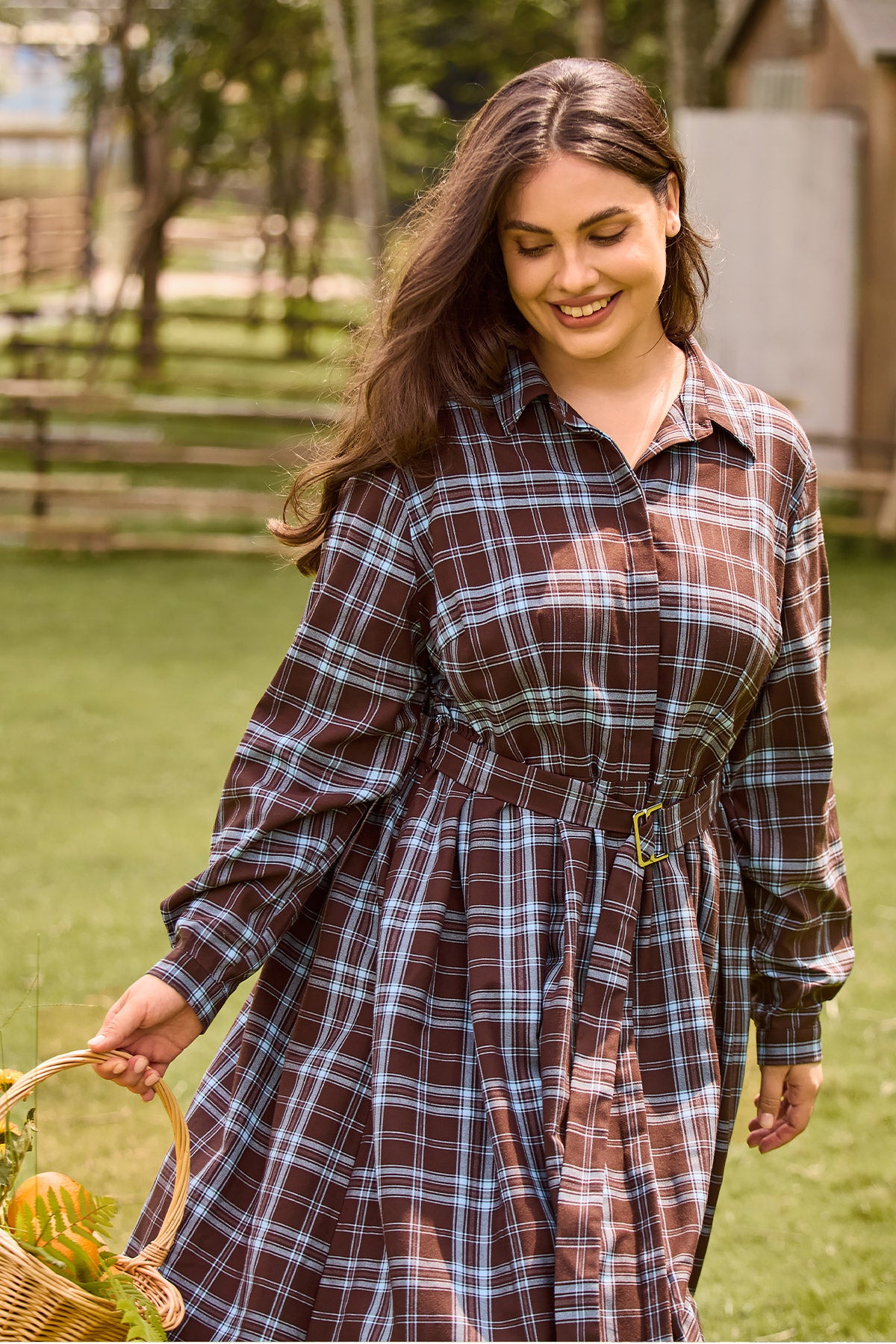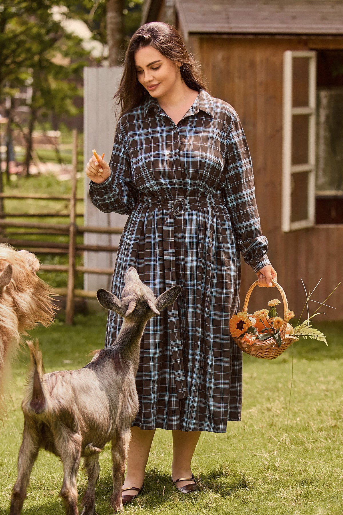 Pockets Ruched Tiered Shirt Collar Midi Dress with Belt