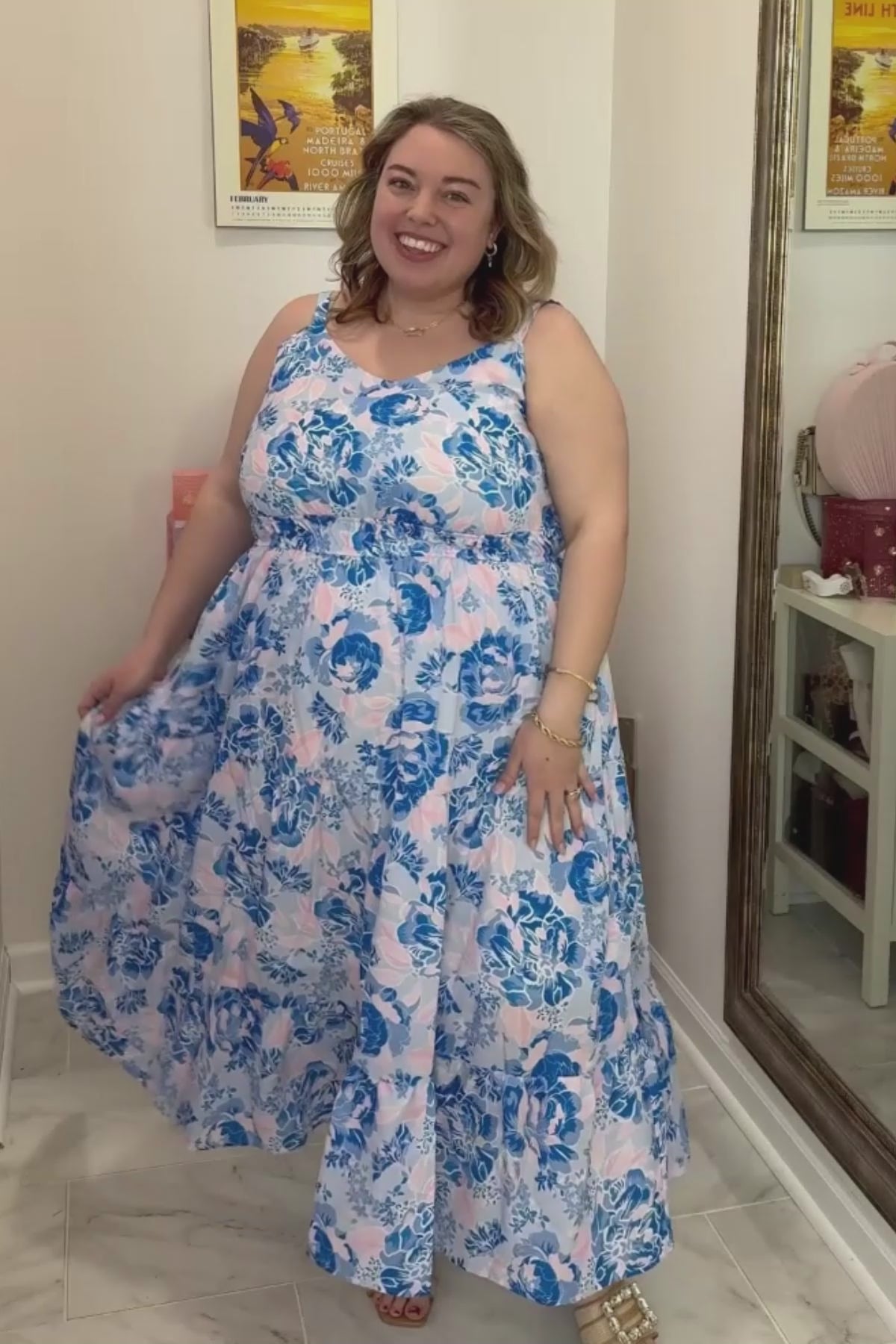 Floral Print Smocked Waist Cami Adjustable Straps Midi Dress