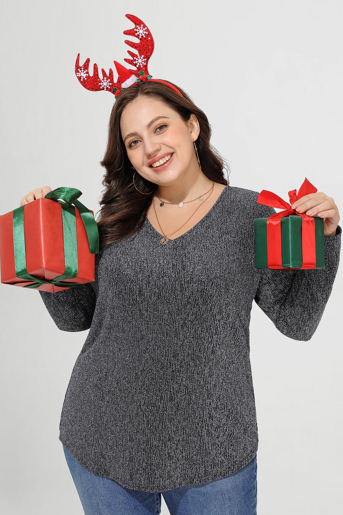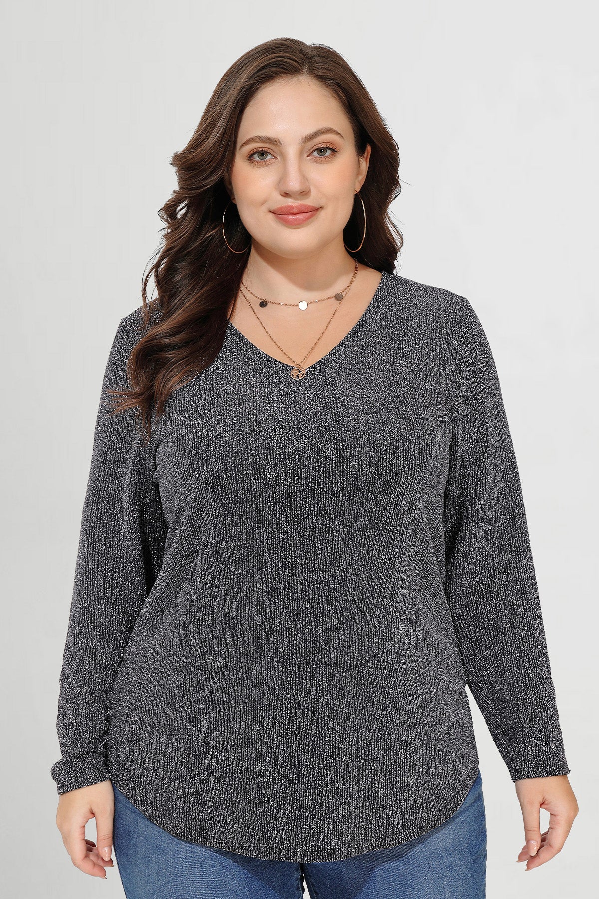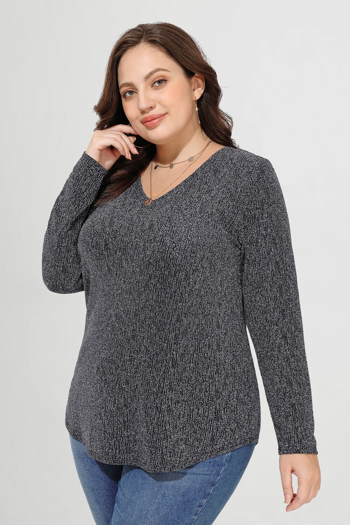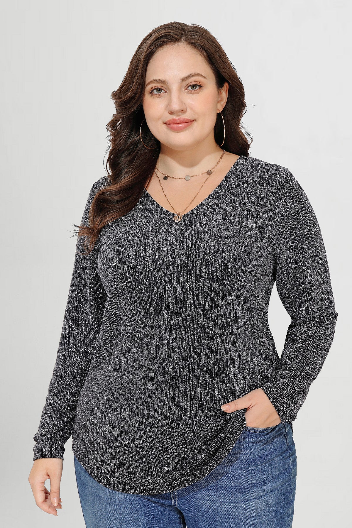 Ritera – Strukturiertes Langarm-T-Shirt mit V-Ausschnitt