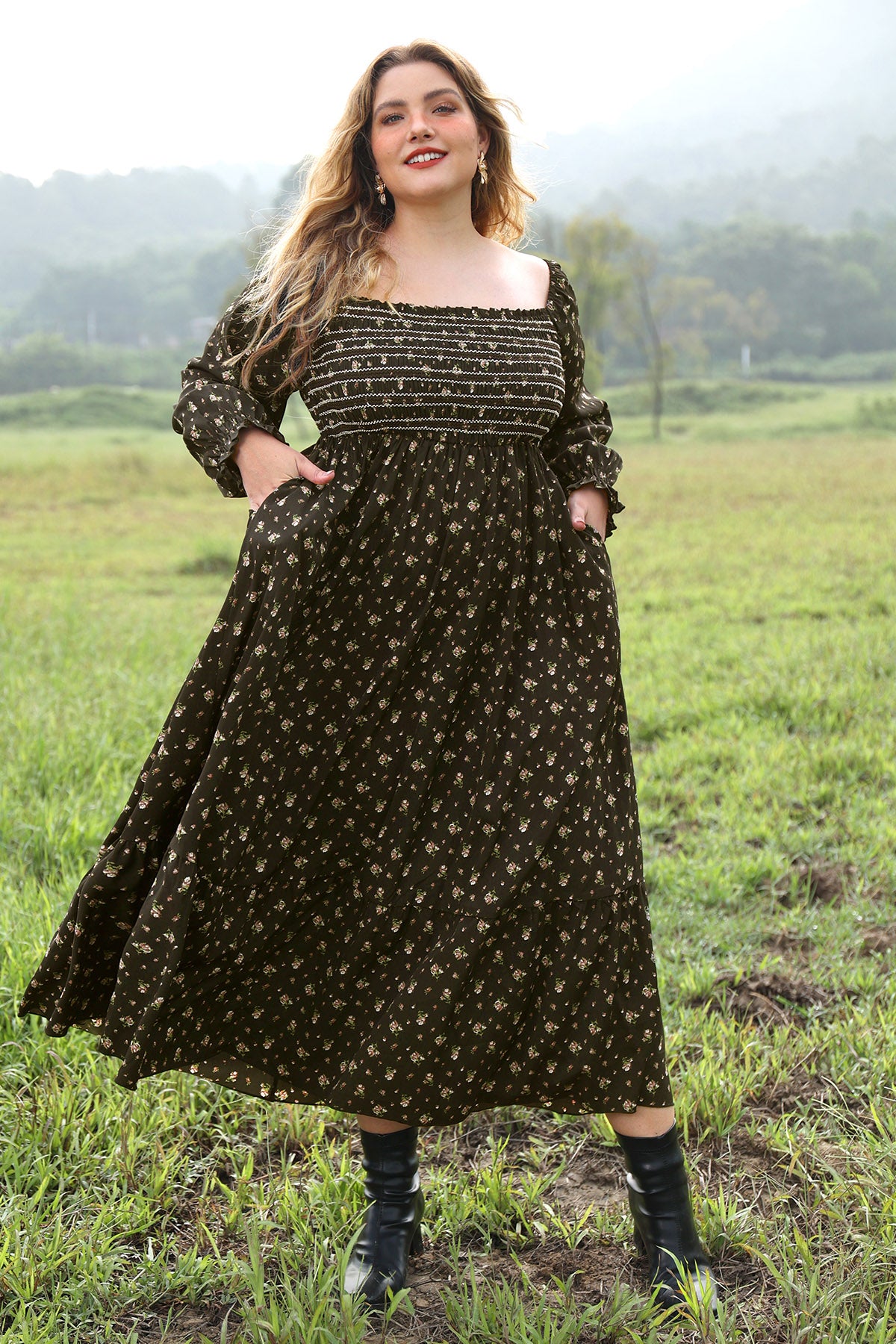 Maxikleid mit gerafftem Saum und Blumenmuster