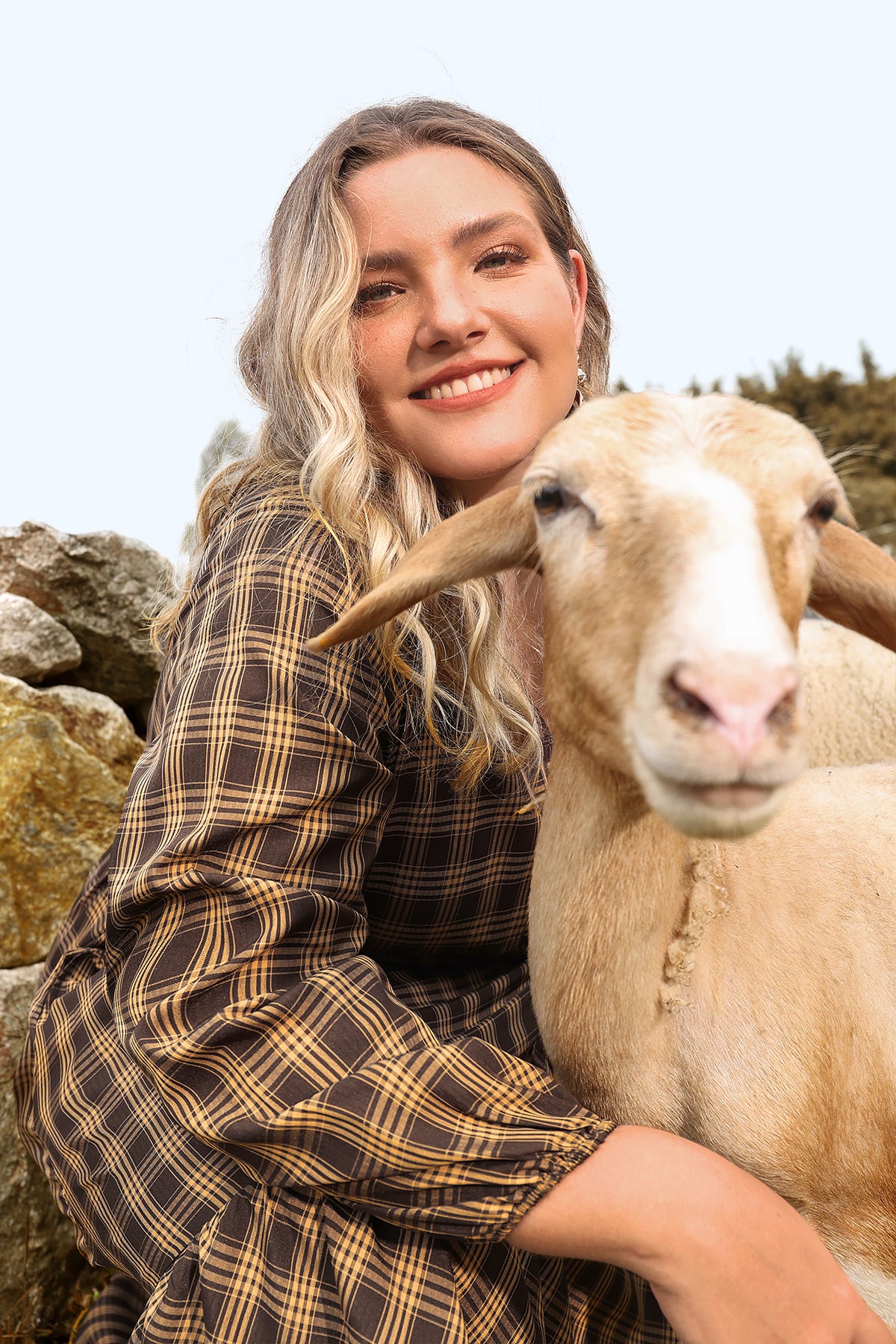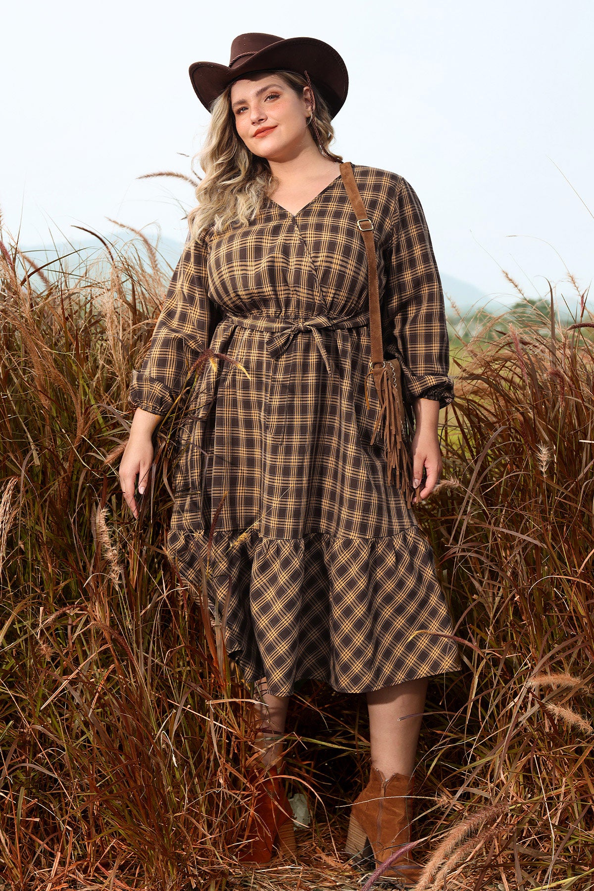 Midikleid mit Taschen, Karomuster, Schnürung und Rüschensaum