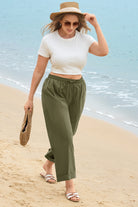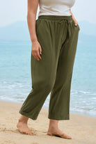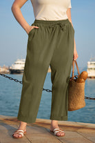 Solid Olive Green Drawstring Waist Cropped Pants