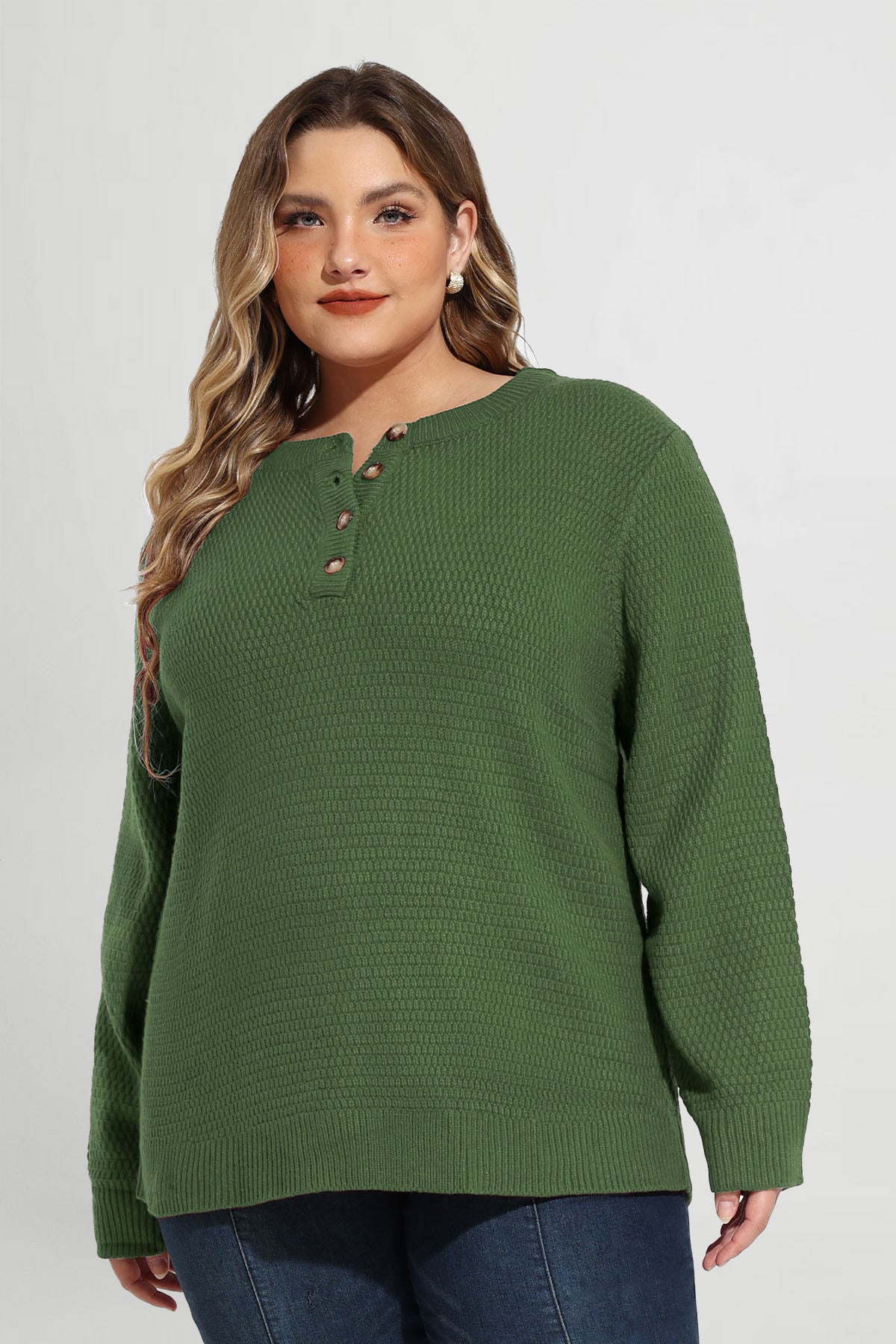Wollpullover mit Knopfleiste und strukturiertem Ausschnitt