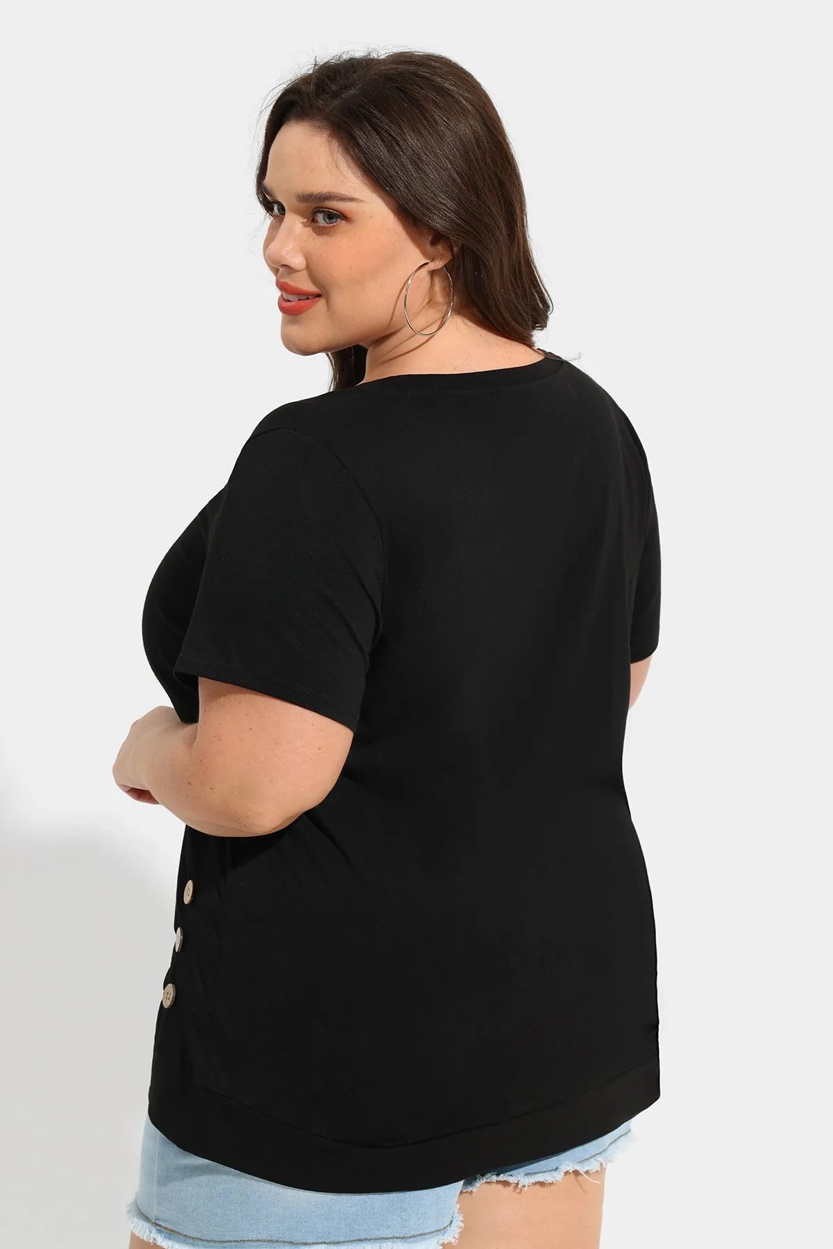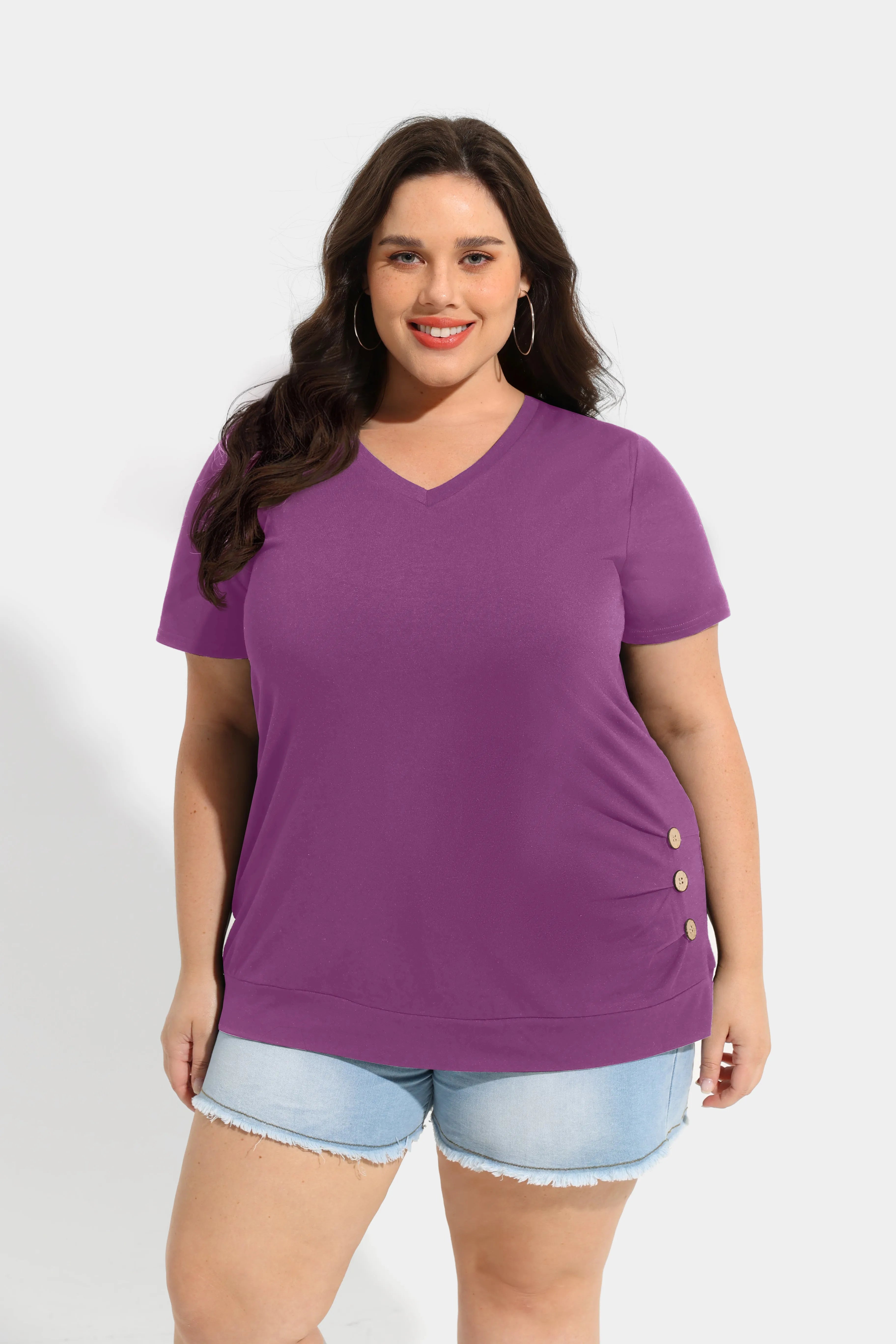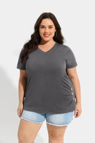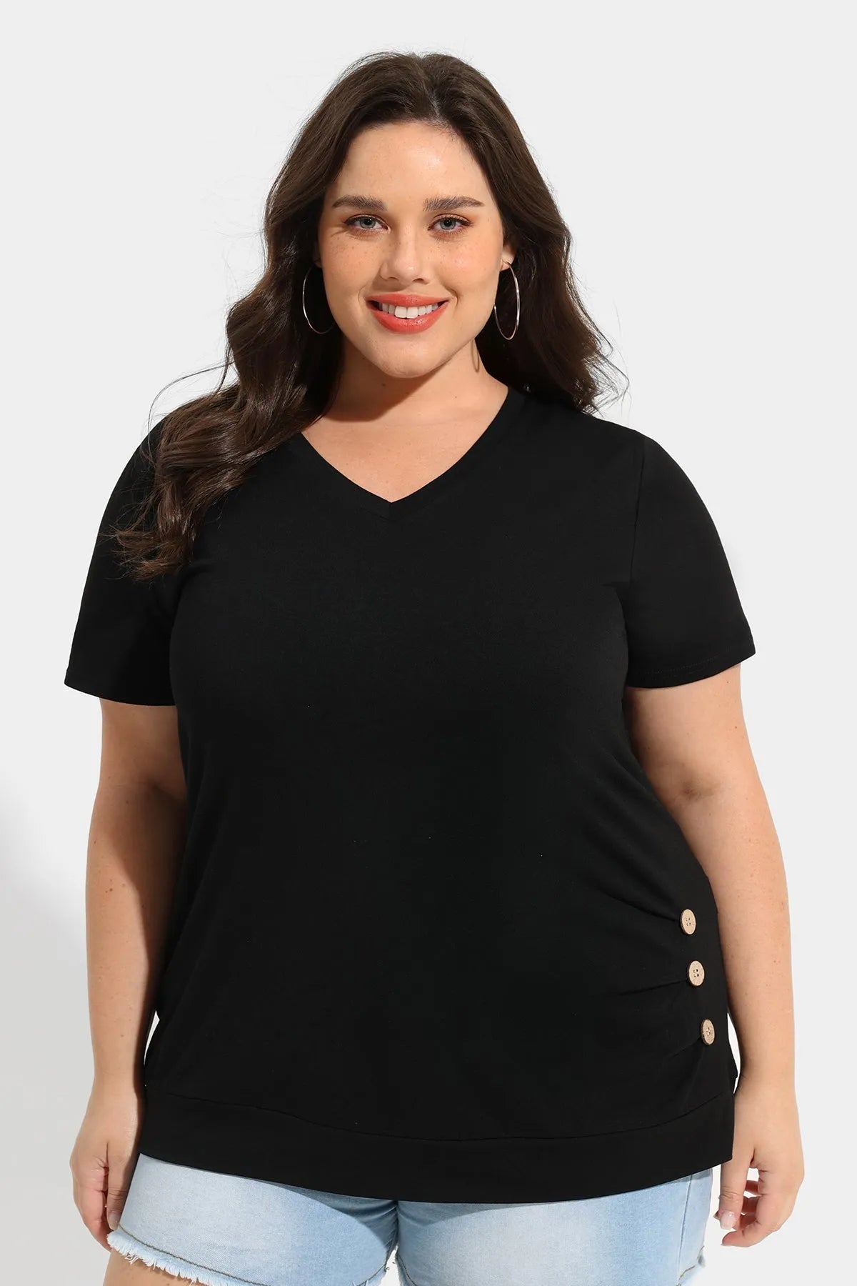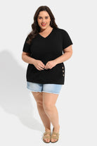 Ritera – Kurzarm-T-Shirt mit V-Ausschnitt und seitlichen Knöpfen
