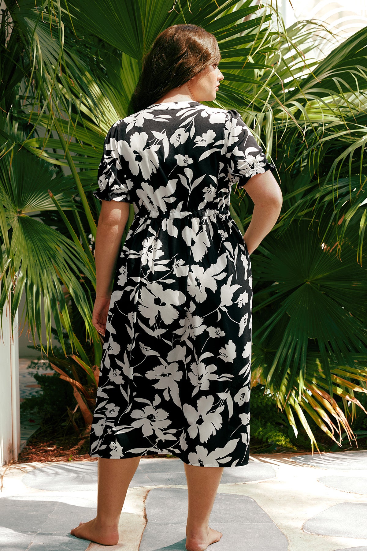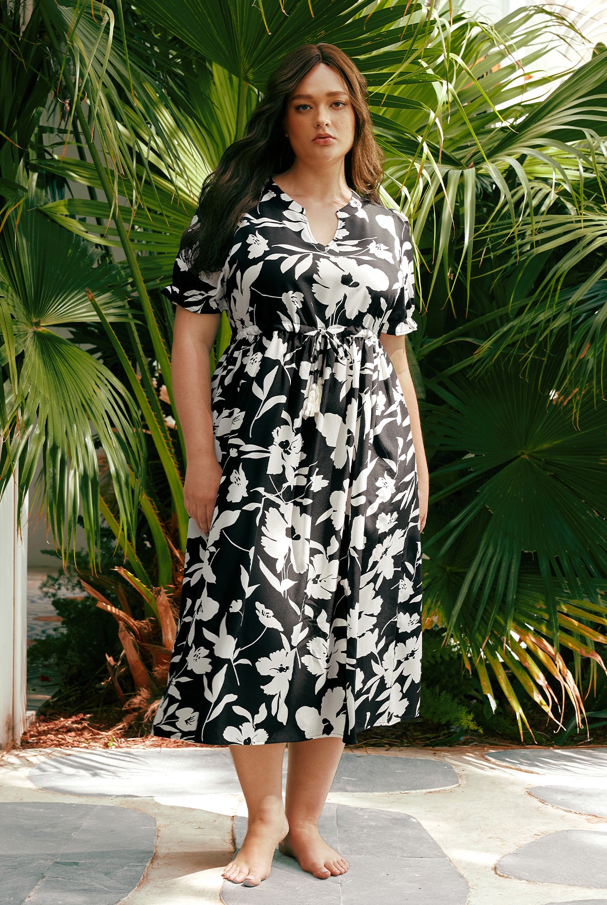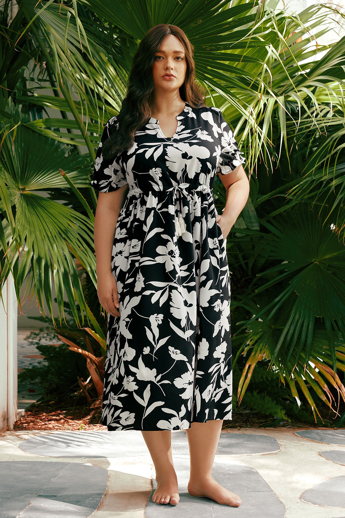 L'élégance estivale avec notre robe longue bohème fleurie. Confectionnée dans un imprimé floral noir et blanc intemporel, cette robe à col V et manches courtes est dotée d'une taille élastique pour une silhouette flatteuse. Sa coupe ample et fluide assure un confort optimal tout au long de la journée. Idéale pour les vacances à la plage, les garden-parties ou les sorties décontractées, elle est confectionnée dans un tissu léger et respirant pour vous garder au frais.