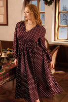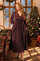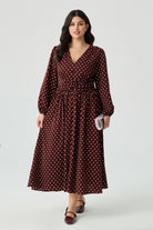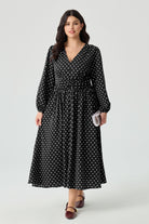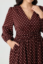 Pockets Polka Dot V-Neck Smocked Waist Midi Dress