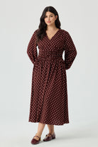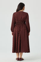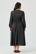 A true classic, this polka dot maxi dress is designed for both style and comfort. The flattering shirred waist cleverly smooths and defines your silhouette, while the elastic shirring at the back offers a flexible and forgiving fit. Made with a soft, flowing fabric, this long dress has a beautiful drape that feels effortlessly elegant. Side pockets complete the look, making it your go-to dress for any occasion.