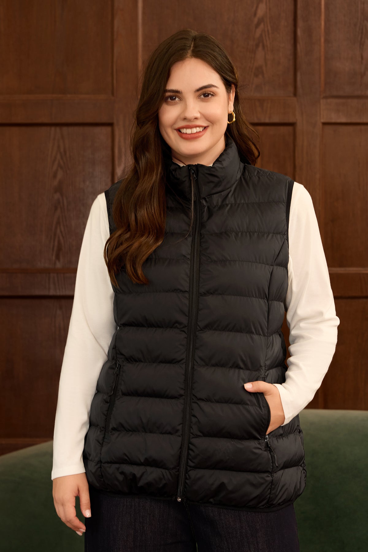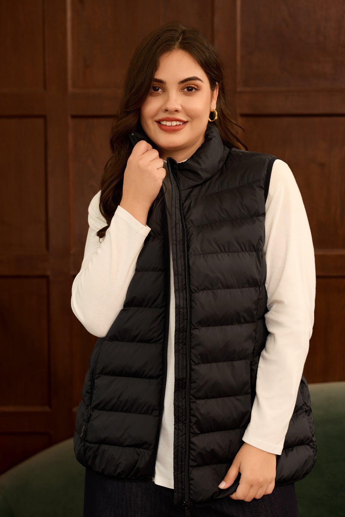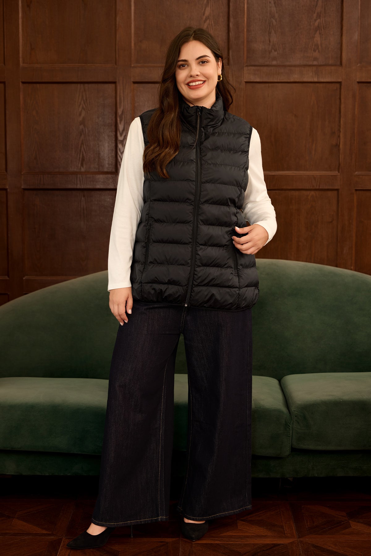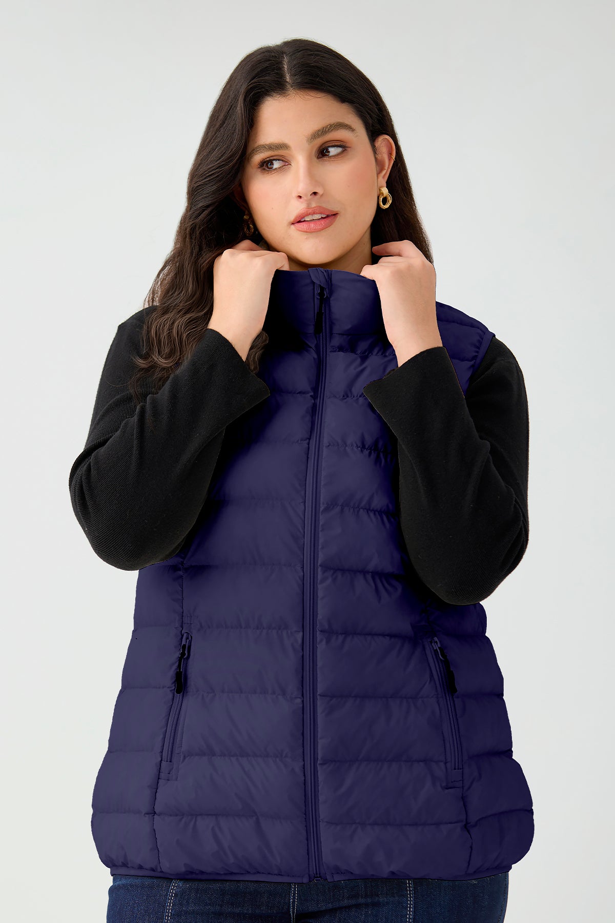 Stay warm without the bulk in our Cozy Puffer Vest. This essential piece of outerwear is designed to provide lightweight warmth and a sleek, modern look. The stylish vertical quilting adds a touch of sophistication, while the stand-up collar and full-zip front offer protection from the wind. Perfect for layering, this puffer vest is a must-have for the transitional seasons and a great addition to your cold-weather wardrobe.